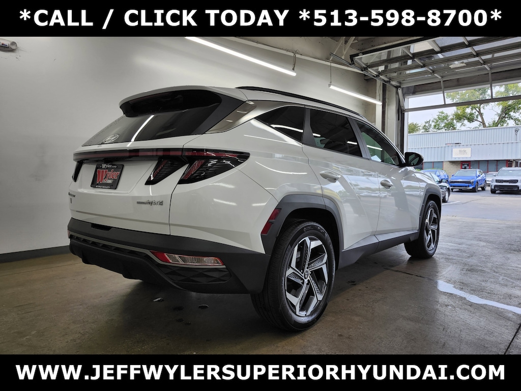 Jeff Wyler Superior Hyundai is pumped up to offer this great 2022 Hyundai Tucson Hybrid SEL Convenience in Quartz White. Well equipped with: Option Group 01, Hyundai Certified Used Vehicles Certified, I4, 3.32 Axle Ratio, 4-Wheel Disc Brakes, 6 Speakers, ABS brakes, Air Conditioning, Alloy wheels, AM/FM radio: SiriusXM, Apple CarPlay & Android Auto, Auto High-beam Headlights, Auto-dimming Rear-View mirror, Automatic temperature control, Brake assist, Bumpers: body-color, Cargo Tray, Carpeted Floor Mats, Delay-off headlights, Driver door bin, Driver vanity mirror, Dual front impact airbags, Dual front side impact airbags, Electronic Stability Control, Emergency communication system: Blue Link Connected Car Service (3-year complimentary subscription), Four wheel independent suspension, Front anti-roll bar, Front Bucket Seats, Front Center Armrest, Front dual zone A/C, Front reading lights, Fully automatic headlights, Garage door transmitter: HomeLink, Heated door mirrors, Heated Front Bucket Seats, Heated front seats, Illuminated entry, Low tire pressure warning, Occupant sensing airbag, Outside temperature display, Overhead airbag, Overhead console, Panic alarm, Passenger door bin, Passenger vanity mirror, Power door mirrors, Power driver seat, Power Liftgate, Power moonroof, Power steering, Power windows, Radio data system, Radio: AM/FM/HD/SiriusXM Audio System, Rear anti-roll bar, Rear reading lights, Rear seat center armrest, Rear window defroster, Rear window wiper, Remote keyless entry, Security system, Speed control, Split folding rear seat, Spoiler, Stain & Odor Resistant Cloth Seat Trim, Steering wheel mounted audio controls, Tachometer, Telescoping steering wheel, Tilt steering wheel, Traction control, Trip computer, Turn signal indicator mirrors, Variably intermittent wipers, and Wheels: 19" x 7.5" J Machine-Face Finish Alloy. CARFAX One-Owner. This sales price excludes tax, title, and dealer fees. While every reasonable effort is made to ensure the accuracy of this information, we are not responsible for any errors or omissions contained on these pages. Used vehicles 10 years of age or newer with less than 100,000 miles are eligible for the Wyler Assurance Program, but eligible vehicles must pass our reconditioning process and multi-point inspection. Provided the vehicle passes inspection, vehicles will be eligible for the 6 month/6,000 mile limited warranty. The 6 month/6,000 mile limited warranty is NOT available on AS-IS vehicles, wholesale vehicles, lease buyback/pass-thru vehicles or un-inspected vehicles. Note that this program can also apply to vehicles where the remaining factory coverage is less than 6 months or 6,000 miles. Please check the Federal Trade Commission (FTC) Buyers guide on the vehicle for full details as to whether or not warranty coverage may apply. Contact Dealer for additional details. The Wyler Assurance 6 month/6,000 Mile limited warranty ends 6 months from the date of the Retail Purchase Agreement (BUYERS ORDER) or when the vehicle's odometer registers 6,000 additional miles to the mileage listed on the BUYERS ORDER, whichever comes first.Your Deductible - The warranty holder on your contract pays the first $100 of each covered repair.