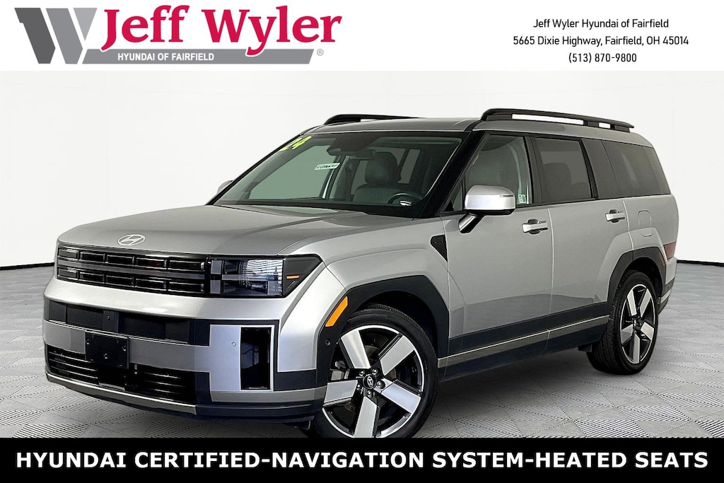 CARFAX One-Owner. Jeff Wyler Hyundai of Fairfield is very proud to offer this great 2024 Hyundai Santa Fe Limited in Shimmering Silver Pearl. Well equipped with: Option Group 01, Hyundai Certified Used Vehicles Certified, AWD, Black Leather, Android Auto, Apple CarPlay, CALL NOW FOR YOUR VIP APPOINTMENT 513-870-9800, FULLY SERVICED w/RECORDS, GUARANTEED FINANCING!! NO MATTER YOUR SITUATION WE CAN GET AN APPROVAL!!, THE #1 Volume dealer in the region! Come see why for yourself Today!!, WE PAY MORE FOR YOUR TRADE!!, 12 Speakers, 3rd row seats: bench, 4-Wheel Disc Brakes, ABS brakes, Air Conditioning, Alloy wheels, AM/FM radio: SiriusXM, Apple CarPlay & Android Auto, Auto High-beam Headlights, Auto-dimming Rear-View mirror, Automatic temperature control, Axle Ratio: 3.316, Brake assist, Bumpers: body-color, Delay-off headlights, Driver door bin, Driver vanity mirror, Dual front impact airbags, Dual front side impact airbags, Electronic Stability Control, Emergency communication system, Exterior Parking Camera Rear, Four wheel independent suspension, Front anti-roll bar, Front Bucket Seats, Front Center Armrest, Front dual zone A/C, Front reading lights, Fully automatic headlights, Garage door transmitter: HomeLink, Heated & Ventilated Front Bucket Seats, Heated door mirrors, Heated front seats, Heated rear seats, Heated steering wheel, Illuminated entry, Knee airbag, Leather Seat Trim, Leather steering wheel, Low tire pressure warning, Memory seat, Navigation System, Occupant sensing airbag, Outside temperature display, Overhead airbag, Overhead console, Panic alarm, Passenger door bin, Passenger vanity mirror, Power door mirrors, Power driver seat, Power Liftgate, Power moonroof, Power passenger seat, Power steering, Power windows, Radio: AM/FM/HD Bose Premium Audio System, Rain sensing wipers, Rear anti-roll bar, Rear seat center armrest, Rear side impact airbag, Rear window defroster, Rear window wiper, Remote keyless entry, Security system, Speed control, Speed-sensing steering, Split folding rear seat, Spoiler, Steering wheel mounted audio controls, Tachometer, Telescoping steering wheel, Tilt steering wheel, Traction control, Trip computer, Turn signal indicator mirrors, Variably intermittent wipers, Ventilated front seats, and Wheels: 20" x 8.5J Alloy. Certified. Hyundai Certified Used Vehicles Details: * Includes 10-year/Unlimited Mileage Roadside Assistance with Rental Car and Trip Interruption Reimbursement; Please See Dealers for Specific Vehicle Eligibility Requirements. 10-Year/100,000 Mile Hybrid/EV Battery Warranty. 3-Months SiriusXM Trial Subscription. Complimentary 1 Year (Connected Care & Remote Pkgs). * Vehicle History * 173+ Point Inspection * Powertrain Limited Warranty: 120 Month/100,000 Mile (whichever comes first) from original in-service date * Limited Warranty: 60 Month/60,000 Mile (whichever comes first) from original in-service date * Roadside Assistance * Warranty Deductible: $50TO CHECK ON THE AVAILABILITY OF THIS VEHICLE REACH OUT TO ONE OF OUR TEAM MEMBERS!! ALSO SHOP ONLINE AT https://www.jeffwylerhyundaioffairfield.com/ Proudly Serving: Cincinnati, Dayton, Columbus, Louisville, Lexington, Indianapolis, Hamilton, Florence, Alexandria, Beavercreek, Springdale, West Chester, Monroe, Fairfield, Kenwood, Newport and all of greater Cincinnati Ohio, Indiana, and Northern Kentucky. New Price!