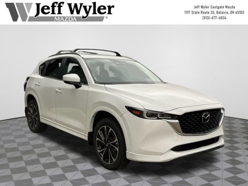 Rhodium White Metallic 2025 Mazda CX-5 2.5 S Preferred Package SKYACTIV® 2.5L 4-Cylinder DOHC 16V AWD 6-Speed Automatic 26/30 City/Highway MPG Jeff Wyler Eastgate Auto Mall is excited to offer this great 2025 Mazda CX-5 2.5 S Preferred Package in Rhodium White Metallic. Well equipped with: Roof Rails & Cross Bars Package, 4-Wheel Disc Brakes, 6 Speakers, ABS brakes, Air Conditioning, Alloy wheels, AM/FM radio, AppLink/Apple CarPlay and Android Auto, Auto High-beam Headlights, Auto-dimming Rear-View mirror, Automatic temperature control, Brake assist, Bumpers: body-color, Delay-off headlights, Driver door bin, Driver vanity mirror, Dual front impact airbags, Dual front side impact airbags, E911 Automatic Emergency Notification, Electronic Stability Control, Emergency communication system: MAZDA CONNECT, Exterior Parking Camera Rear, Four wheel independent suspension, Front & Rear Splash Guards, Front anti-roll bar, Front Bucket Seats, Front Center Armrest w/Storage, Front dual zone A/C, Front reading lights, Fully automatic headlights, Garage door transmitter: HomeLink, Heated Front Bucket Seats, Heated front seats, Illuminated entry, Infotainment System Voice Command, Leather Seat Trim, Leather Shift Knob, Leather steering wheel, Low tire pressure warning, Memory seat, Multifunction Commander Control, Occupant sensing airbag, Outside temperature display, Overhead airbag, Overhead console, Pandora, Panic alarm, Passenger door bin, Passenger vanity mirror, Power door mirrors, Power driver seat, Power Liftgate, Power moonroof, Power passenger seat, Power steering, Power windows, Radio Broadcast Data System Program Information, Radio data system, Radio: AM/FM/HD Audio System, Rain sensing wipers, Rear anti-roll bar, Rear reading lights, Rear seat center armrest, Rear window defroster, Rear window wiper, Remote keyless entry, Rhodium White Metallic Paint, SMS Text Msg Audio Delivery & Reply, Speed control, Speed-sensing steering, Split folding rear seat, Spoiler, Steering wheel mounted audio controls, Tachometer, Telescoping steering wheel, Tilt steering wheel, Traction control, Trip computer, Turn signal indicator mirrors, Variably intermittent wipers, and Wheels: 17 x 7J Aluminum Alloy. 26/30 City/Highway MPG Price includes: $2000 - Customer Cash. Exp. 03/31/2026