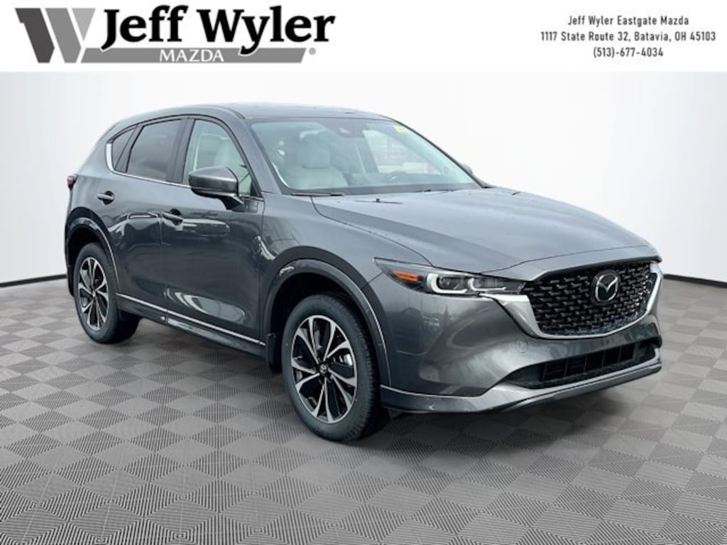 Machine Gray Metallic 2025 Mazda CX-5 2.5 S Preferred Package SKYACTIV® 2.5L 4-Cylinder DOHC 16V AWD 6-Speed Automatic 26/30 City/Highway MPG Jeff Wyler Eastgate Auto Mall is honored to offer this terrific 2025 Mazda CX-5 2.5 S Preferred Package in Machine Gray Metallic. Well equipped with: 4-Wheel Disc Brakes, 6 Speakers, ABS brakes, Air Conditioning, All-Weather Floor Mats, Alloy wheels, AM/FM radio, AppLink/Apple CarPlay and Android Auto, Auto High-beam Headlights, Auto-dimming Rear-View mirror, Automatic temperature control, Brake assist, Bumpers: body-color, Cargo Tray, Delay-off headlights, Driver door bin, Driver vanity mirror, Dual front impact airbags, Dual front side impact airbags, E911 Automatic Emergency Notification, Electronic Stability Control, Emergency communication system: MAZDA CONNECT, Exterior Parking Camera Rear, Four wheel independent suspension, Front & Rear Splash Guards, Front anti-roll bar, Front Bucket Seats, Front Center Armrest w/Storage, Front dual zone A/C, Front reading lights, Fully automatic headlights, Garage door transmitter: HomeLink, Heated Front Bucket Seats, Heated front seats, Illuminated entry, Infotainment System Voice Command, Leather Seat Trim, Leather Shift Knob, Leather steering wheel, Low tire pressure warning, Machine Gray Metallic Paint, Memory seat, Multifunction Commander Control, Occupant sensing airbag, Outside temperature display, Overhead airbag, Overhead console, Pandora, Panic alarm, Passenger door bin, Passenger vanity mirror, Power door mirrors, Power driver seat, Power Liftgate, Power moonroof, Power passenger seat, Power steering, Power windows, Radio Broadcast Data System Program Information, Radio data system, Radio: AM/FM/HD Audio System, Rain sensing wipers, Rear anti-roll bar, Rear reading lights, Rear seat center armrest, Rear window defroster, Rear window wiper, Remote keyless entry, SMS Text Msg Audio Delivery & Reply, Speed control, Speed-sensing steering, Split folding rear seat, Spoiler, Steering wheel mounted audio controls, Tachometer, Telescoping steering wheel, Tilt steering wheel, Traction control, Trip computer, Turn signal indicator mirrors, Variably intermittent wipers, and Wheels: 17 x 7J Aluminum Alloy. 26/30 City/Highway MPG Price includes: $2000 - Customer Cash. Exp. 03/31/2026