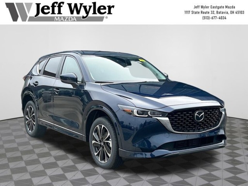 Deep Crystal Blue Mica 2025 Mazda CX-5 2.5 S Preferred Package SKYACTIV® 2.5L 4-Cylinder DOHC 16V AWD 6-Speed Automatic 26/30 City/Highway MPG Jeff Wyler Eastgate Auto Mall is honored to offer this fantastic-looking 2025 Mazda CX-5 2.5 S Preferred Package in Deep Crystal Blue Mica. Well equipped with: 4-Wheel Disc Brakes, 6 Speakers, ABS brakes, Air Conditioning, All-Weather Floor Mats, Alloy wheels, AM/FM radio, AppLink/Apple CarPlay and Android Auto, Auto High-beam Headlights, Auto-dimming Rear-View mirror, Automatic temperature control, Brake assist, Bumpers: body-color, Cargo Net, Cargo Tray, Delay-off headlights, Driver door bin, Driver vanity mirror, Dual front impact airbags, Dual front side impact airbags, E911 Automatic Emergency Notification, Electronic Stability Control, Emergency communication system: MAZDA CONNECT, Exterior Parking Camera Rear, Four wheel independent suspension, Front anti-roll bar, Front Bucket Seats, Front Center Armrest w/Storage, Front dual zone A/C, Front reading lights, Fully automatic headlights, Garage door transmitter: HomeLink, Heated Front Bucket Seats, Heated front seats, Illuminated entry, Infotainment System Voice Command, Leather Seat Trim, Leather Shift Knob, Leather steering wheel, Low tire pressure warning, Memory seat, Multifunction Commander Control, Occupant sensing airbag, Outside temperature display, Overhead airbag, Overhead console, Pandora, Panic alarm, Passenger door bin, Passenger vanity mirror, Power door mirrors, Power driver seat, Power Liftgate, Power moonroof, Power passenger seat, Power steering, Power windows, Radio Broadcast Data System Program Information, Radio data system, Radio: AM/FM/HD Audio System, Rain sensing wipers, Rear anti-roll bar, Rear reading lights, Rear seat center armrest, Rear window defroster, Rear window wiper, Remote keyless entry, Retractable Cargo Cover, SMS Text Msg Audio Delivery & Reply, Speed control, Speed-sensing steering, Split folding rear seat, Spoiler, Steering wheel mounted audio controls, Tachometer, Telescoping steering wheel, Tilt steering wheel, Traction control, Trip computer, Turn signal indicator mirrors, Variably intermittent wipers, and Wheels: 17 x 7J Aluminum Alloy. 26/30 City/Highway MPG Price includes: $2000 - Customer Cash. Exp. 03/31/2026