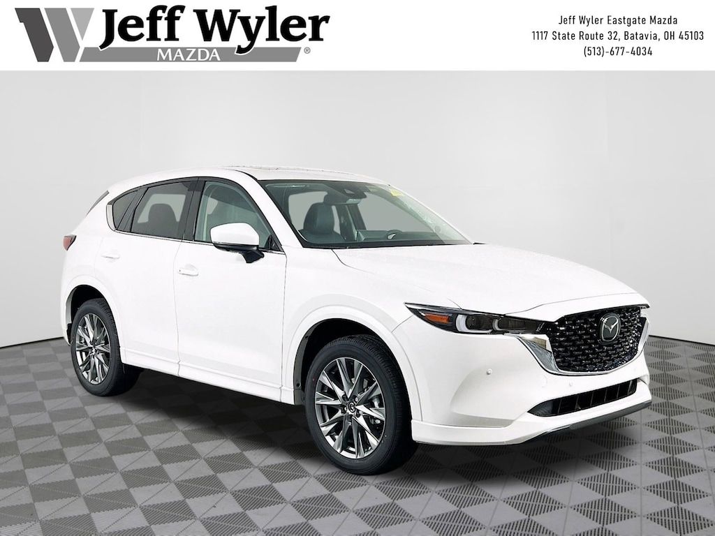 Priced below KBB Fair Purchase Price! Rhodium White Metallic 2025 Mazda CX-5 2.5 S Premium Plus Package SKYACTIV® 2.5L 4-Cylinder DOHC 16V AWD 6-Speed Automatic 26/30 City/Highway MPG Jeff Wyler Eastgate Auto Mall is excited to offer this superb-looking 2025 Mazda CX-5 2.5 S Premium Plus Package in Rhodium White Metallic. Well equipped with: 10 Speakers, 4-Wheel Disc Brakes, ABS brakes, Air Conditioning, All-Weather Floor Mats, Alloy wheels, AM/FM radio: SiriusXM, AppLink/Apple CarPlay and Android Auto, Auto High-beam Headlights, Auto-dimming Rear-View mirror, Automatic temperature control, Brake assist, Bumpers: body-color, Cargo Tray, Delay-off headlights, Driver door bin, Driver vanity mirror, Dual front impact airbags, Dual front side impact airbags, E911 Automatic Emergency Notification, Electronic Stability Control, Emergency communication system: MAZDA CONNECT, First Aid Kit, Four wheel independent suspension, Front anti-roll bar, Front Bucket Seats, Front Center Armrest w/Storage, Front dual zone A/C, Front reading lights, Fully automatic headlights, Garage door transmitter: HomeLink, Heads-Up Display, Heated door mirrors, Heated front seats, Heated rear seats, Heated steering wheel, Heated/Ventilated Front Bucket Seats, Illuminated entry, Infotainment System Voice Command, Leather Seat Trim, Leather Shift Knob, Leather steering wheel, Low tire pressure warning, Memory seat, Multifunction Commander Control, Occupant sensing airbag, Outside temperature display, Overhead airbag, Overhead console, Pandora, Panic alarm, Passenger door bin, Passenger vanity mirror, Power door mirrors, Power driver seat, Power Liftgate, Power moonroof, Power passenger seat, Power steering, Power windows, Radio Broadcast Data System Program Information, Radio data system, Radio: AM/FM/HD Audio System, Rain sensing wipers, Rear anti-roll bar, Rear Bumper Guard, Rear reading lights, Rear seat center armrest, Rear window defroster, Rear window wiper, Remote keyless entry, Rhodium White Metallic Paint, SMS Text Msg Audio Delivery & Reply, Speed control, Speed-sensing steering, Split folding rear seat, Spoiler, Steering wheel mounted audio controls, Tachometer, Telescoping steering wheel, Tilt steering wheel, Traction control, Trip computer, Turn signal indicator mirrors, Variably intermittent wipers, Ventilated front seats, Wheel Locks, and Wheels: 19" x 7J Aluminum Alloy. 26/30 City/Highway MPG Price includes: $2000 - Customer Cash. Exp. 01/02/2026