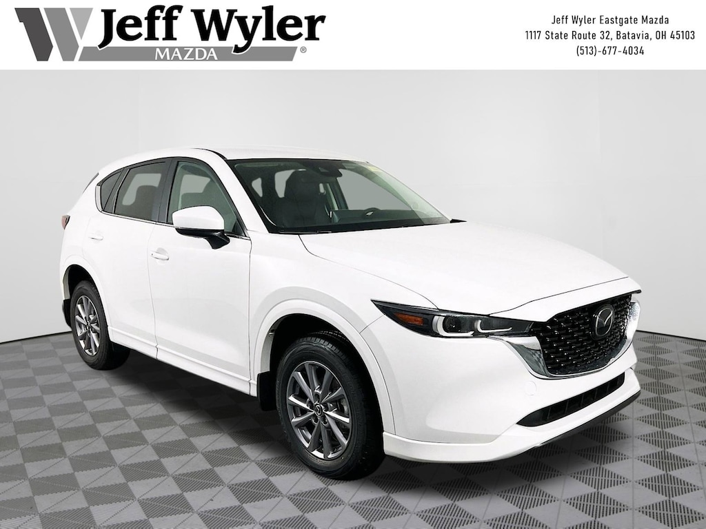 Priced below KBB Fair Purchase Price! Rhodium White Metallic 2025 Mazda CX-5 2.5 S Select Package SKYACTIV® 2.5L 4-Cylinder DOHC 16V AWD 6-Speed Automatic 23/29 City/Highway MPG Jeff Wyler Eastgate Auto Mall is excited to offer this outstanding-looking 2025 Mazda CX-5 2.5 S Select Package in Rhodium White Metallic. Well equipped with: 4-Wheel Disc Brakes, 6 Speakers, ABS brakes, Air Conditioning, All-Weather Floor Mats, Alloy wheels, AM/FM radio, AppLink/Apple CarPlay and Android Auto, Auto High-beam Headlights, Automatic temperature control, Brake assist, Bumpers: body-color, Cargo Tray, Delay-off headlights, Driver door bin, Driver vanity mirror, Dual front impact airbags, Dual front side impact airbags, E911 Automatic Emergency Notification, Electronic Stability Control, Emergency communication system: MAZDA CONNECT, Exterior Parking Camera Rear, Four wheel independent suspension, Front & Rear Splash Guards, Front anti-roll bar, Front Bucket Seats, Front Center Armrest w/Storage, Front dual zone A/C, Front reading lights, Fully automatic headlights, Heated Front Bucket Seats, Heated front seats, Illuminated entry, Infotainment System Voice Command, Leather Shift Knob, Leather steering wheel, Leatherette Seat Trim, Low tire pressure warning, Multifunction Commander Control, Occupant sensing airbag, Outside temperature display, Overhead airbag, Overhead console, Pandora, Panic alarm, Passenger door bin, Passenger vanity mirror, Power door mirrors, Power driver seat, Power steering, Power windows, Radio Broadcast Data System Program Information, Radio data system, Radio: AM/FM/HD Audio System, Rain sensing wipers, Rear anti-roll bar, Rear reading lights, Rear seat center armrest, Rear window defroster, Rear window wiper, Remote keyless entry, Rhodium White Metallic Paint, SMS Text Msg Audio Delivery & Reply, Speed control, Speed-sensing steering, Split folding rear seat, Spoiler, Steering wheel mounted audio controls, Tachometer, Telescoping steering wheel, Tilt steering wheel, Traction control, Trip computer, Turn signal indicator mirrors, Variably intermittent wipers, Wheel Locks, and Wheels: 17" x 7J Aluminum Alloy. 23/29 City/Highway MPG Price includes: $2000 - Customer Cash. Exp. 01/02/2026