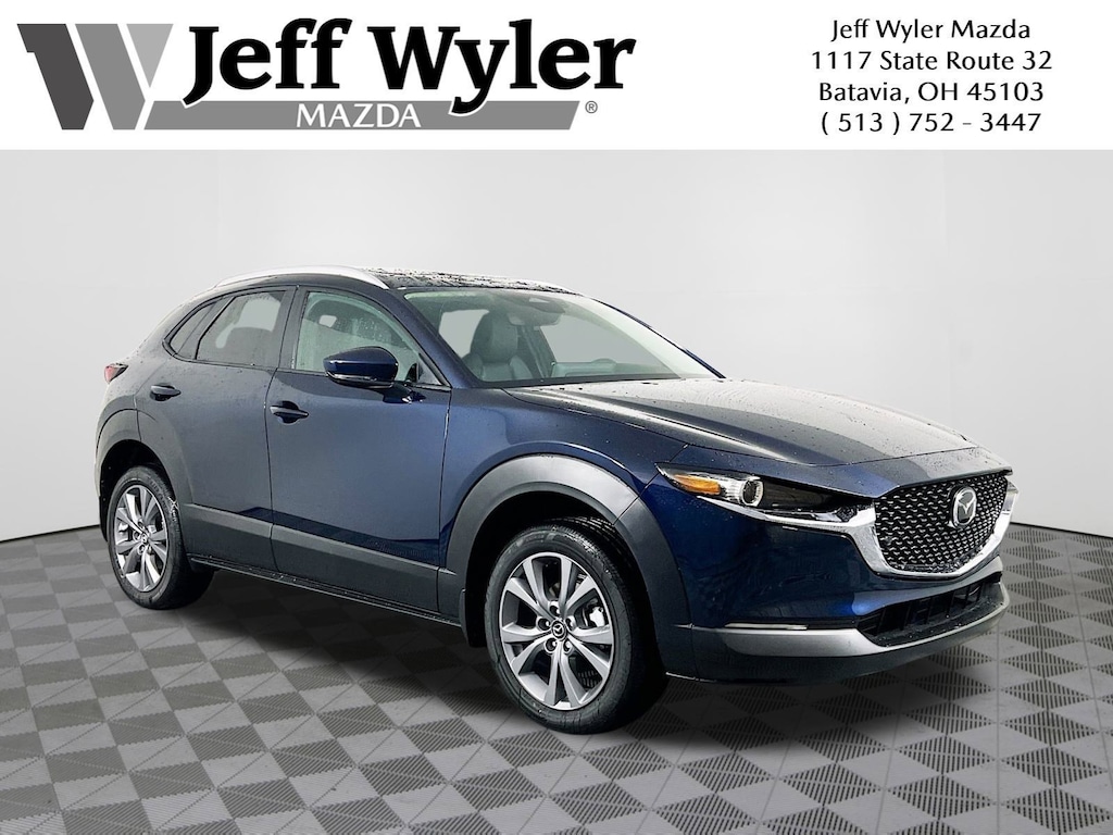 Deep Crystal Blue Mica 2026 Mazda CX-30 2.5 S SKYACTIV® 2.5L 4-Cylinder DOHC 16V AWD 6-Speed Automatic 24/31 City/Highway MPG Jeff Wyler Eastgate Auto Mall is proud to offer this good-looking 2026 Mazda CX-30 2.5 S in Deep Crystal Blue Mica. Well equipped with: 4-Wheel Disc Brakes, 8 Speakers, ABS brakes, Air Conditioning, Alloy wheels, AM/FM radio, AppLink/Apple CarPlay and Android Auto, Auto High-beam Headlights, Automatic temperature control, Brake assist, Bumpers: body-color, Cargo Blocks, Compass, Delay-off headlights, Driver door bin, Driver vanity mirror, Dual front impact airbags, Dual front side impact airbags, Electronic Stability Control, Emergency communication system: MAZDA CONNECT, Exterior Parking Camera Rear, Front & Rear Splash Guards, Front anti-roll bar, Front Bucket Seats, Front Center Armrest, Front dual zone A/C, Front reading lights, Front wheel independent suspension, Fully automatic headlights, Heated door mirrors, Heated Front Bucket Seats, Heated front seats, High Wall All-Weather Floor Mats, Illuminated entry, Knee airbag, Leather Shift Knob, Leather steering wheel, Leatherette Seat Trim, Low tire pressure warning, MAZDA CONNECT Infotainment System, Memory seat, Occupant sensing airbag, Outside temperature display, Overhead airbag, Overhead console, Panic alarm, Passenger door bin, Passenger vanity mirror, Power door mirrors, Power driver seat, Power moonroof, Power steering, Power windows, Radio data system, Radio: AM/FM Audio System, Rain sensing wipers, Rear seat center armrest, Rear side impact airbag, Rear window defroster, Rear window wiper, Remote keyless entry, Speed control, Speed-sensing steering, Split folding rear seat, Spoiler, Stainless Steel Rear Bumper Guard, Steering wheel mounted audio controls, Tachometer, Telescoping steering wheel, Tilt steering wheel, Traction control, Trip computer, Turn signal indicator mirrors, Variably intermittent wipers, Wheel Locks, and Wheels: 18" x 7J Aluminum Alloy. 24/31 City/Highway MPG
