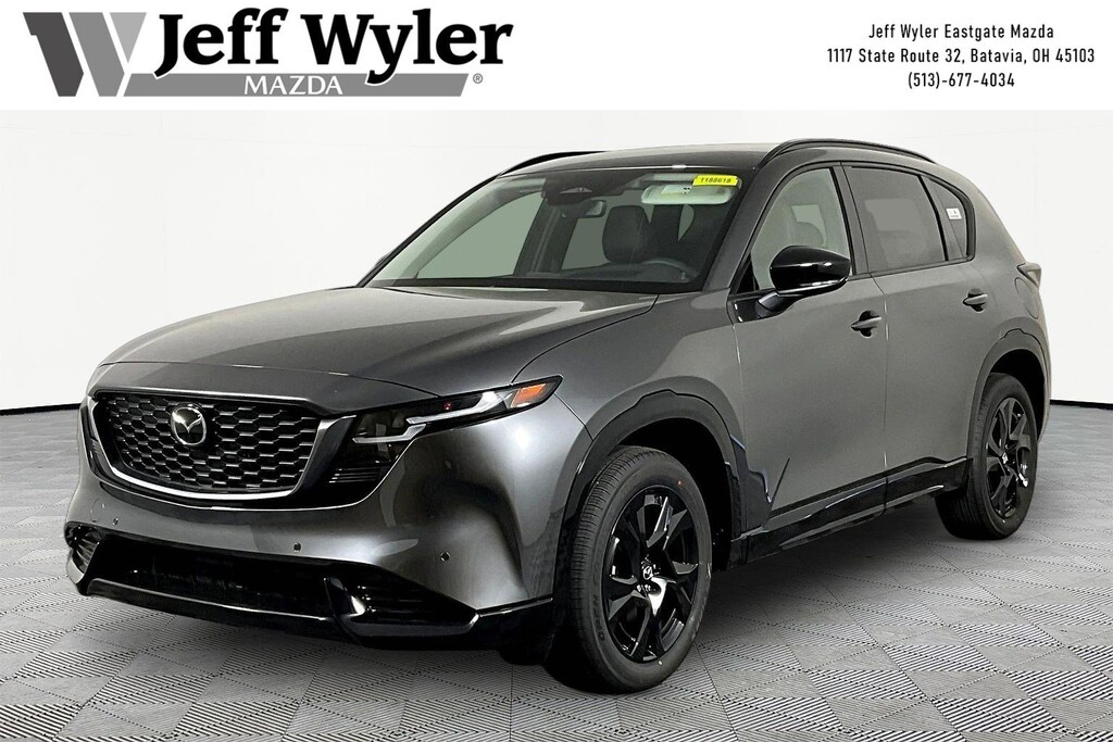 Machine Gray Metallic 2026 Mazda CX-5 2.5 S Premium SKYACTIV®-G 2.5L 4-Cylinder DOHC 16V AWD 6-Speed Automatic Jeff Wyler Eastgate Auto Mall is honored to offer this stunning-looking 2026 Mazda CX-5 2.5 S Premium in Machine Gray Metallic. Well equipped with: 12 Speakers, 4-Wheel Disc Brakes, ABS brakes, Air Conditioning, Alloy wheels, AM/FM radio: SiriusXM 360L, AppLink/Apple CarPlay and Android Auto, Auto High-beam Headlights, Auto-dimming Rear-View mirror, Automatic temperature control, Brake assist, Bumpers: body-color, Cargo Tray, Compass, Delay-off headlights, Driver door bin, Driver vanity mirror, Dual front impact airbags, Dual front side impact airbags, Electronic Stability Control, Emergency communication system: 911 Emergency Notification, Exterior Parking Camera Rear, Four wheel independent suspension, Front anti-roll bar, Front Bucket Seats, Front Center Armrest w/Storage, Front dual zone A/C, Front reading lights, Fully automatic headlights, Garage door transmitter: HomeLink, Heads-Up Display, Heated and Ventilated Front Bucket Seats, Heated door mirrors, Heated front seats, Heated rear seats, Heated steering wheel, Illuminated entry, Knee airbag, Leather Seat Trim, Leather Shift Knob, Leather steering wheel, Low tire pressure warning, Machine Gray Metallic Paint Charge, Memory seat, Navigation system: Google built-in, Occupant sensing airbag, Outside temperature display, Overhead airbag, Overhead console, Panic alarm, Passenger door bin, Passenger vanity mirror, Power door mirrors, Power driver seat, Power Liftgate, Power moonroof, Power passenger seat, Power steering, Power windows, Radio data system, Radio: AM/FM/HD Audio System, Rain sensing wipers, Rear anti-roll bar, Rear reading lights, Rear seat center armrest, Rear window defroster, Rear window wiper, Remote keyless entry, SiriusXM 3 Year Traffic and Travel Link Subscription, Speed control, Speed-sensing steering, Split folding rear seat, Spoiler, Steering wheel mounted audio controls, Tachometer, Telescoping steering wheel, Tilt steering wheel, Traction control, Trip computer, Turn signal indicator mirrors, Variably intermittent wipers, Ventilated front seats, and Wheels: 19" x 7J Aluminum Alloy.