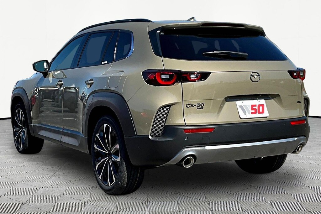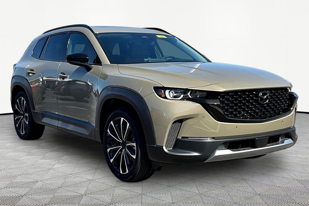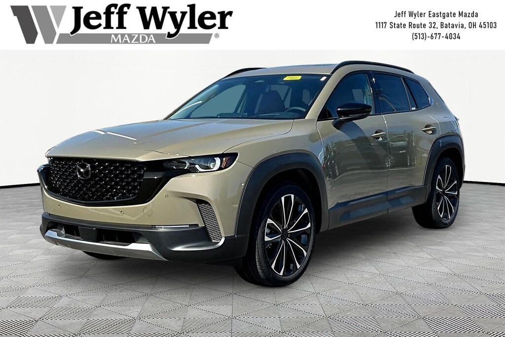Zircon Sand Metallic 2026 Mazda CX-50 2.5 Turbo 2.5L I4 Turbocharged DOHC 16V LEV3-ULEV70 227hp AWD 6-Speed Automatic 23/29 City/Highway MPG Jeff Wyler Eastgate Auto Mall is honored to offer this outstanding 2026 Mazda CX-50 2.5 Turbo in Zircon Sand Metallic. Well equipped with: Weather Package, 12 Speakers, 4-Wheel Disc Brakes, ABS brakes, Air Conditioning, Alloy wheels, AM/FM radio: SiriusXM, AppLink/Apple CarPlay and Android Auto, Auto High-beam Headlights, Auto-dimming Rear-View mirror, Automatic temperature control, Black Lug Nuts and Black Wheel Locks, Brake assist, Bumpers: body-color, Delay-off headlights, Driver door bin, Driver vanity mirror, Dual front impact airbags, Dual front side impact airbags, Electronic Stability Control, Emergency communication system: MAZDA CONNECT, Exterior Parking Camera Rear, Front anti-roll bar, Front Bucket Seats, Front Center Armrest, Front dual zone A/C, Front reading lights, Front wheel independent suspension, Fully automatic headlights, Garage door transmitter: HomeLink, Heads-Up Display, Heated and Ventilated Front Seats with 3 Level Adjustment, Heated door mirrors, Heated front seats, Illuminated entry, Knee airbag, Leather Seat Trim, Leather Shift Knob, Leather steering wheel, Low tire pressure warning, Memory seat, Occupant sensing airbag, Outside temperature display, Overhead airbag, Overhead console, Panic alarm, Passenger door bin, Passenger vanity mirror, Power door mirrors, Power driver seat, Power Liftgate, Power moonroof, Power passenger seat, Power steering, Power windows, Radio data system, Radio: AM/FM/HD Bose 12-Speaker Audio Sound System, Rain sensing wipers, Rear seat center armrest, Rear window defroster, Rear window wiper, Remote keyless entry, Speed control, Speed-sensing steering, Split folding rear seat, Spoiler, Steering wheel mounted audio controls, Tachometer, Telescoping steering wheel, Tilt steering wheel, Traction control, Trip computer, Turn signal indicator mirrors, Variably intermittent wipers, Ventilated front seats, Wheels: 20" x 8J Aluminum Alloy Black Metallic with Machining Cut, and Zircon Sand Metallic Paint Charge. 23/29 City/Highway MPG Price includes: $1500 - Customer Cash. Exp. 04/30/2026