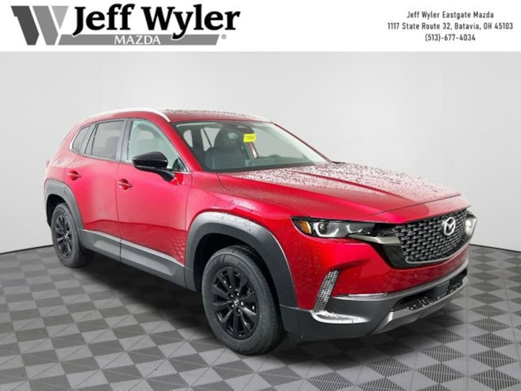 soul red crystal metallic 2026 Mazda CX-50 Hybrid Preferred 2.5L 4-Cylinder AWD CVT 39/37 City/Highway MPG Jeff Wyler Eastgate Auto Mall is proud to offer this fantastic-looking 2026 Mazda CX-50 Hybrid Preferred in soul red crystal metallic. Well equipped with: Cargo Package, 4-Wheel Disc Brakes, 8 Speakers, ABS brakes, Air Conditioning, Alloy wheels, AM/FM radio, AppLink/Apple CarPlay and Android Auto, Auto High-beam Headlights, Automatic temperature control, Brake assist, Bumpers: body-color, Delay-off headlights, Driver door bin, Driver vanity mirror, Dual front impact airbags, Dual front side impact airbags, Electronic Stability Control, Emergency communication system: MAZDA CONNECT, Exterior Parking Camera Rear, Front anti-roll bar, Front Bucket Seats, Front Center Armrest, Front dual zone A/C, Front reading lights, Front wheel independent suspension, Fully automatic headlights, Half Leatherette Seat Trim, Heated door mirrors, Heated Front Bucket Seats, Heated front seats, Illuminated entry, Knee airbag, Leather Shift Knob, Leather steering wheel, Low tire pressure warning, Occupant sensing airbag, Outside temperature display, Overhead airbag, Overhead console, Panic alarm, Passenger door bin, Passenger vanity mirror, Power door mirrors, Power driver seat, Power Liftgate, Power moonroof, Power steering, Power windows, Radio data system, Radio: AM/FM/HD 8-Speaker Audio Sound System, Rain sensing wipers, Rear seat center armrest, Rear window defroster, Rear window wiper, Remote keyless entry, Soul Red Crystal Metallic Paint Charge, Speed control, Speed-sensing steering, Split folding rear seat, Spoiler, Steering wheel mounted audio controls, Tachometer, Telescoping steering wheel, Tilt steering wheel, Traction control, Trip computer, Turn signal indicator mirrors, Variably intermittent wipers, and Wheels: 17 x 7J Aluminum Alloy Black Metallic Finish. 39/37 City/Highway MPG