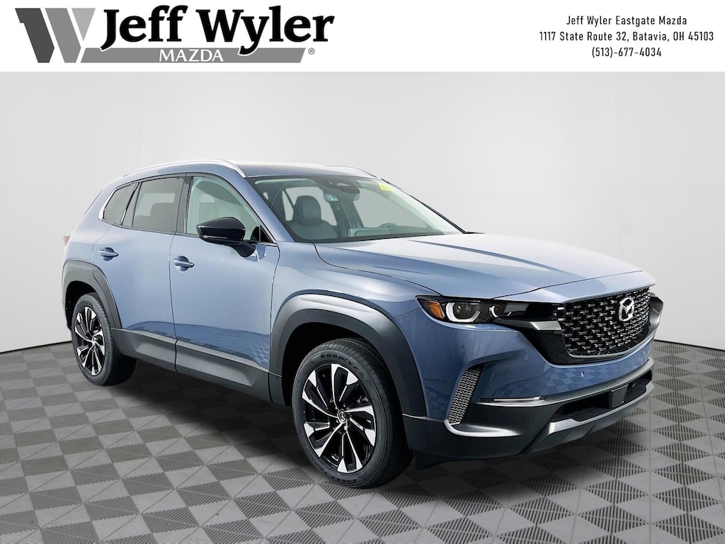 Polymetal Gray Metallic 2026 Mazda CX-50 Hybrid Premium Plus 2.5L 4-Cylinder AWD CVT 39/37 City/Highway MPG Jeff Wyler Eastgate Auto Mall is very proud to offer this charming-looking 2026 Mazda CX-50 Hybrid Premium Plus in Polymetal Gray Metallic. Well equipped with: Cargo Package, 12 Speakers, 4-Wheel Disc Brakes, ABS brakes, Air Conditioning, Alloy wheels, AM/FM radio: SiriusXM, AppLink/Apple CarPlay and Android Auto, Auto High-beam Headlights, Auto-dimming Rear-View mirror, Automatic temperature control, Brake assist, Bumpers: body-color, Delay-off headlights, Driver door bin, Driver vanity mirror, Dual front impact airbags, Dual front side impact airbags, Electronic Stability Control, Emergency communication system: MAZDA CONNECT, Exterior Parking Camera Rear, Front anti-roll bar, Front Bucket Seats, Front Center Armrest, Front dual zone A/C, Front reading lights, Front wheel independent suspension, Fully automatic headlights, Garage door transmitter: HomeLink, Heads-Up Display, Heated and Ventilated Front Seats with 3 Level Adjustment, Heated door mirrors, Heated front seats, Heated rear seats, Heated steering wheel, Illuminated entry, Knee airbag, Leather Seat Trim, Leather Shift Knob, Leather steering wheel, Low tire pressure warning, Memory seat, Occupant sensing airbag, Outside temperature display, Overhead airbag, Overhead console, Panic alarm, Passenger door bin, Passenger vanity mirror, Polymetal Gray Metallic Paint Charge, Power door mirrors, Power driver seat, Power Liftgate, Power moonroof, Power passenger seat, Power steering, Power windows, Radio data system, Radio: AM/FM/HD Bose 12-Speaker Audio Sound System, Rain sensing wipers, Rear seat center armrest, Rear window defroster, Rear window wiper, Remote keyless entry, Speed control, Speed-sensing steering, Split folding rear seat, Spoiler, Steering wheel mounted audio controls, Tachometer, Telescoping steering wheel, Tilt steering wheel, Traction control, Trip computer, Turn signal indicator mirrors, Variably intermittent wipers, Ventilated front seats, and Wheels: 19" x 7.5J Aluminum Alloy Black Metallic with Machine Cut. 39/37 City/Highway MPG Price includes: $2500 - Customer Cash. Exp. 04/30/2026