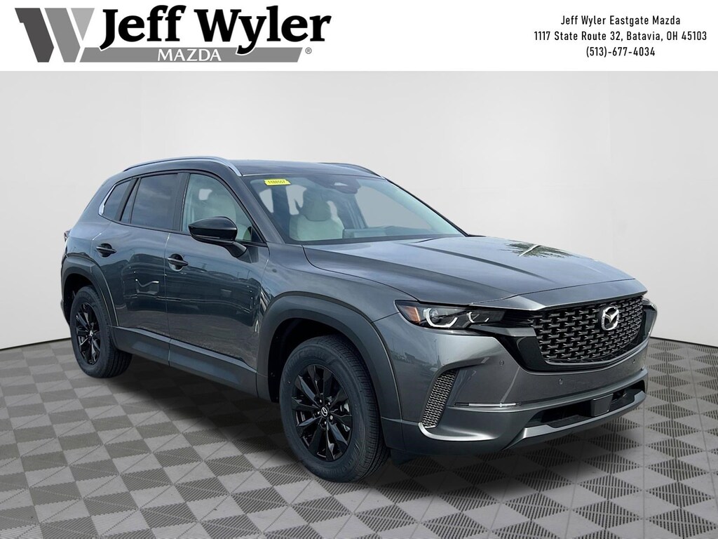 Machine Gray Metallic 2026 Mazda CX-50 2.5 S Preferred SKYACTIV®-G 2.5L 4-Cylinder DOHC 16V AWD 6-Speed Automatic 24/30 City/Highway MPG Jeff Wyler Eastgate Auto Mall is excited to offer this charming 2026 Mazda CX-50 2.5 S Preferred in Machine Gray Metallic. Well equipped with: 4-Wheel Disc Brakes, 8 Speakers, ABS brakes, Air Conditioning, Alloy wheels, AM/FM radio, AppLink/Apple CarPlay and Android Auto, Auto High-beam Headlights, Automatic temperature control, Brake assist, Bumpers: body-color, Carpet Cargo Mat, Delay-off headlights, Driver door bin, Driver vanity mirror, Dual front impact airbags, Dual front side impact airbags, Electronic Stability Control, Emergency communication system: MAZDA CONNECT, Exterior Parking Camera Rear, Front anti-roll bar, Front Bucket Seats, Front Center Armrest, Front dual zone A/C, Front reading lights, Front wheel independent suspension, Fully automatic headlights, Half Leatherette Seat Trim, Heated door mirrors, Heated Front Bucket Seats, Heated front seats, Illuminated entry, Knee airbag, Leather Shift Knob, Leather steering wheel, Low tire pressure warning, Machine Gray Metallic Paint Charge, Occupant sensing airbag, Outside temperature display, Overhead airbag, Overhead console, Panic alarm, Passenger door bin, Passenger vanity mirror, Power door mirrors, Power driver seat, Power Liftgate, Power moonroof, Power steering, Power windows, Radio data system, Radio: AM/FM/HD 8-Speaker Audio Sound System, Rain sensing wipers, Rear seat center armrest, Rear window defroster, Rear window wiper, Remote keyless entry, Speed control, Speed-sensing steering, Split folding rear seat, Spoiler, Steering wheel mounted audio controls, Tachometer, Telescoping steering wheel, Tilt steering wheel, Traction control, Trip computer, Turn signal indicator mirrors, Variably intermittent wipers, and Wheels: 17" x 7J Aluminum Alloy Black Metallic Finish. 24/30 City/Highway MPG Price includes: $1000 - Customer Cash. Exp. 04/30/2026