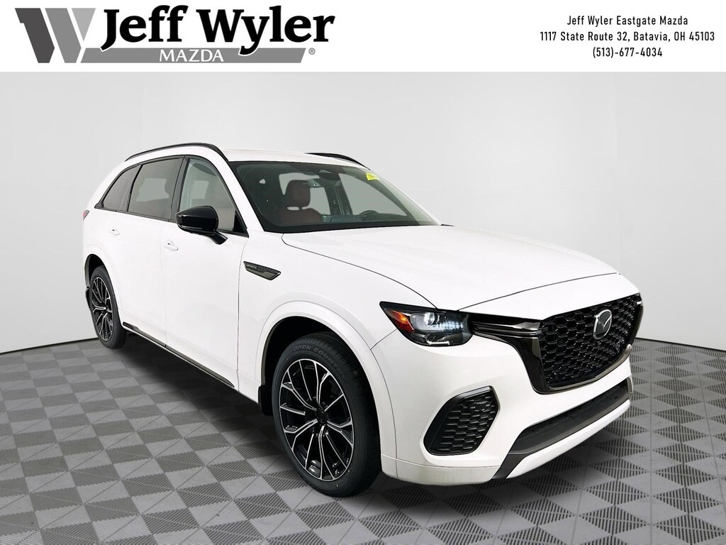 Rhodium White Premium 2026 Mazda CX-70 3.3 Turbo S Premium 3.3L I6 Turbocharged AWD 8-Speed Automatic 23/28 City/Highway MPG Jeff Wyler Eastgate Auto Mall is proud to offer this outstanding-looking 2026 Mazda CX-70 3.3 Turbo S Premium in Rhodium White Premium. Well equipped with: 12 Speakers, 4-Wheel Disc Brakes, ABS brakes, Air Conditioning, All Weather Floor Mats, Alloy wheels, AM/FM radio: SiriusXM, Auto High-beam Headlights, Auto-dimming door mirrors, Auto-dimming Rear-View mirror, Automatic temperature control, Black Lug Nuts and Black Wheel Locks, Brake assist, Bumpers: body-color, Compass, Delay-off headlights, Driver door bin, Driver vanity mirror, Dual front impact airbags, Dual front side impact airbags, E911 Automatic Emergency Notification, Electronic Stability Control, Emergency communication system: MAZDA CONNECT, Four wheel independent suspension, Front anti-roll bar, Front Bucket Seats, Front Center Armrest w/Storage, Front dual zone A/C, Front reading lights, Fully automatic headlights, Garage door transmitter: HomeLink, Heads-Up Display, Heated door mirrors, Heated front seats, Heated rear seats, Heated steering wheel, Heated/Ventilated Front Bucket Seats, Illuminated entry, Infotainment System Voice Command, Knee airbag, Leather Shift Knob, Leather steering wheel, Low tire pressure warning, Mazda Connected Services, Mazda Online Navigation, Memory seat, Nappa Leather Seat Trim, Navigation system: MAZDA CONNECT, Occupant sensing airbag, Outside temperature display, Overhead airbag, Overhead console, Panic alarm, Passenger door bin, Passenger vanity mirror, Power door mirrors, Power driver seat, Power Liftgate, Power moonroof, Power passenger seat, Power steering, Power windows, Radio Broadcast Data System Program Information, Radio data system, Radio: AM/FM with Bose Premium Audio Sound System, Rain sensing wipers, Rear air conditioning, Rear anti-roll bar, Rear reading lights, Rear seat center armrest, Rear window defroster, Rear window wiper, Remote keyless entry, Rhodium White Premium Paint Charge, Security system, SMS Text Message Audio Delivery and Reply, Speed control, Speed-sensing steering, Splash Guards, Split folding rear seat, Spoiler, Steering wheel memory, Steering wheel mounted audio controls, Tachometer, Telescoping steering wheel, Tilt steering wheel, Traction control, Trip computer, Turn signal indicator mirrors, Variably intermittent wipers, Ventilated front seats, and Wheels: 21" x 9.5J Aluminum Alloy. 23/28 City/Highway MPG Price includes: $2000 - Customer Cash. Exp. 04/30/2026