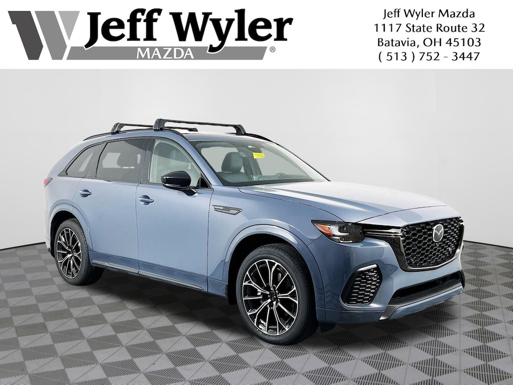 Polymetal Gray Metallic 2026 Mazda CX-70 3.3 Turbo S Premium I6 Turbo AWD 8-Speed Automatic 23/28 City/Highway MPG Jeff Wyler Eastgate Auto Mall is pumped up to offer this attractive 2026 Mazda CX-70 3.3 Turbo S Premium in Polymetal Gray Metallic. Well equipped with: 12 Speakers, 4-Wheel Disc Brakes, ABS brakes, Air Conditioning, Alloy wheels, AM/FM radio: SiriusXM, Auto High-beam Headlights, Auto-dimming door mirrors, Auto-dimming Rear-View mirror, Automatic temperature control, Black Cross Bars, Black Liftgate Garnish, Brake assist, Bumpers: body-color, Cargo Blocks, Cargo Net, Compass, Delay-off headlights, Driver door bin, Driver vanity mirror, Dual front impact airbags, Dual front side impact airbags, E911 Automatic Emergency Notification, Electronic Stability Control, Emergency communication system: MAZDA CONNECT, Four wheel independent suspension, Front anti-roll bar, Front Bucket Seats, Front Center Armrest w/Storage, Front dual zone A/C, Front reading lights, Fully automatic headlights, Garage door transmitter: HomeLink, Heads-Up Display, Heated door mirrors, Heated front seats, Heated rear seats, Heated steering wheel, Heated/Ventilated Front Bucket Seats, Illuminated entry, Infotainment System Voice Command, Knee airbag, Leather Shift Knob, Leather steering wheel, Logo Welcome Light, Low tire pressure warning, Mazda Connected Services, Mazda Online Navigation, Memory seat, Nappa Leather Seat Trim, Navigation system: MAZDA CONNECT, Occupant sensing airbag, Outside temperature display, Overhead airbag, Overhead console, Panic alarm, Passenger door bin, Passenger vanity mirror, Polymetal Gray Metallic Paint Charge, Power door mirrors, Power driver seat, Power Liftgate, Power moonroof, Power passenger seat, Power steering, Power windows, Radio Broadcast Data System Program Information, Radio data system, Radio: AM/FM w/Bose Premium Audio Sound System, Rain sensing wipers, Rear air conditioning, Rear anti-roll bar, Rear reading lights, Rear seat center armrest, Rear window defroster, Rear window wiper, Remote keyless entry, Retractable Cargo Cover, Roadside Assistance Kit, Security system, SMS Text Message Audio Delivery & Reply, Speed control, Speed-sensing steering, Splash Guards, Split folding rear seat, Spoiler, Steering wheel memory, Steering wheel mounted audio controls, Tachometer, Telescoping steering wheel, Tilt steering wheel, Traction control, Trip computer, Turn signal indicator mirrors, Variably intermittent wipers, Ventilated front seats, and Wheels: 21" x 9.5J Aluminum Alloy. 23/28 City/Highway MPG