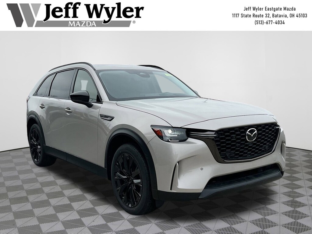 Priced below KBB Fair Purchase Price! Platinum Quartz 2026 Mazda CX-90 3.3 Turbo Premium I6 AWD 8-Speed Automatic 23/28 City/Highway MPG Jeff Wyler Eastgate Auto Mall is pumped up to offer this beautiful 2026 Mazda CX-90 3.3 Turbo Premium in Platinum Quartz. Well equipped with: 12 Speakers, 2nd-Row Captain's Chairs, 3rd row seats: bench, 4-Wheel Disc Brakes, ABS brakes, Air Conditioning, Alloy wheels, AM/FM radio: SiriusXM, Auto High-beam Headlights, Auto-dimming door mirrors, Auto-dimming Rear-View mirror, Automatic temperature control, Brake assist, Bumpers: body-color, Compass, Delay-off headlights, Driver door bin, Driver vanity mirror, Dual front impact airbags, Dual front side impact airbags, E911 Automatic Emergency Notification, Electronic Stability Control, Emergency communication system: MAZDA CONNECT, Exterior Parking Camera Rear, Four wheel independent suspension, Front anti-roll bar, Front Bucket Seats, Front Center Armrest w/Storage, Front dual zone A/C, Front reading lights, Fully automatic headlights, Garage door transmitter: HomeLink, Heads-Up Display, Heated door mirrors, Heated front seats, Heated rear seats, Heated steering wheel, Heated/Ventilated Front Bucket Seats, Illuminated entry, Infotainment System Voice Command, Knee airbag, Leather Seat Trim, Leather Shift Knob, Leather steering wheel, Low tire pressure warning, Mazda Connected Services, Mazda Online Navigation, Memory seat, Navigation system: MAZDA CONNECT, Occupant sensing airbag, Outside temperature display, Overhead airbag, Overhead console, Panic alarm, Passenger door bin, Passenger vanity mirror, Power door mirrors, Power driver seat, Power Liftgate, Power moonroof, Power passenger seat, Power steering, Power windows, Radio Broadcast Data System Program Information, Radio data system, Radio: : AM/FM w/HD/Bose 12-Speaker Sound System, Rain sensing wipers, Rear air conditioning, Rear anti-roll bar, Rear reading lights, Rear seat center armrest, Rear window defroster, Rear window wiper, Remote keyless entry, SMS Text Msg Audio Delivery and Reply, Speed control, Speed-sensing steering, Split folding rear seat, Spoiler, Steering wheel mounted audio controls, Tachometer, Telescoping steering wheel, Tilt steering wheel, Traction control, Trip computer, Turn signal indicator mirrors, Variably intermittent wipers, Ventilated front seats, and Wheels: 21" x 9.5J Aluminum Alloy with Black Metal Finish. 23/28 City/Highway MPG Price includes: $2000 - Customer Cash. Exp. 03/31/2026