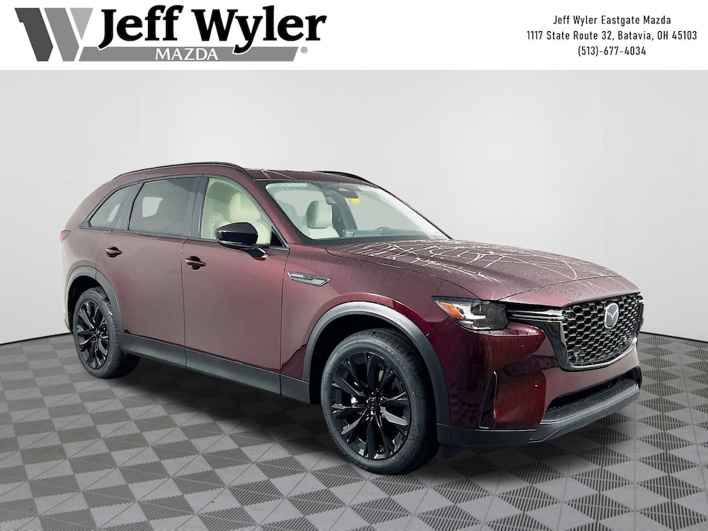 Artisan Red Premium 2026 Mazda CX-90 3.3 Turbo Premium I6 Turbo AWD 8-Speed Automatic 23/28 City/Highway MPG Jeff Wyler Eastgate Auto Mall is excited to offer this handsome 2026 Mazda CX-90 3.3 Turbo Premium in Artisan Red Premium. Well equipped with: 12 Speakers, 3rd row seats: bench, 4-Wheel Disc Brakes, ABS brakes, Air Conditioning, Alloy wheels, AM/FM radio: SiriusXM, Artisan Red Premium Paint Charge, Auto High-beam Headlights, Auto-dimming door mirrors, Auto-dimming Rear-View mirror, Automatic temperature control, Brake assist, Bumpers: body-color, Carpeted Cargo Mat (CMS), Compass, Delay-off headlights, Driver door bin, Driver vanity mirror, Dual front impact airbags, Dual front side impact airbags, E911 Automatic Emergency Notification, Electronic Stability Control, Emergency communication system: MAZDA CONNECT, Exterior Parking Camera Rear, Four wheel independent suspension, Front anti-roll bar, Front Bucket Seats, Front Center Armrest w/Storage, Front dual zone A/C, Front reading lights, Fully automatic headlights, Garage door transmitter: HomeLink, Heads-Up Display, Heated door mirrors, Heated front seats, Heated rear seats, Heated steering wheel, Heated/Ventilated Front Bucket Seats, Illuminated entry, Infotainment System Voice Command, Knee airbag, Leather Seat Trim, Leather Shift Knob, Leather steering wheel, Low tire pressure warning, Mazda Connected Services, Mazda Online Navigation, Memory seat, Navigation system: MAZDA CONNECT, Occupant sensing airbag, Outside temperature display, Overhead airbag, Overhead console, Panic alarm, Passenger door bin, Passenger vanity mirror, Power door mirrors, Power driver seat, Power Liftgate, Power moonroof, Power passenger seat, Power steering, Power windows, Premier Carpet Set - Bench Seat, Premium Carpet Floor Mats (PFA), Radio Broadcast Data System Program Information, Radio data system, Radio: AM/FM w/HD/Bose 12-Speaker Sound System, Rain sensing wipers, Rear air conditioning, Rear anti-roll bar, Rear reading lights, Rear seat center armrest, Rear window defroster, Rear window wiper, Remote keyless entry, SMS Text Msg Audio Delivery & Reply, Speed control, Speed-sensing steering, Split folding rear seat, Spoiler, Steering wheel mounted audio controls, Tachometer, Telescoping steering wheel, Tilt steering wheel, Traction control, Trip computer, Turn signal indicator mirrors, Variably intermittent wipers, Ventilated front seats, and Wheels: 21" x 9.5J Aluminum Alloy w/Black Metal Finish. 23/28 City/Highway MPG