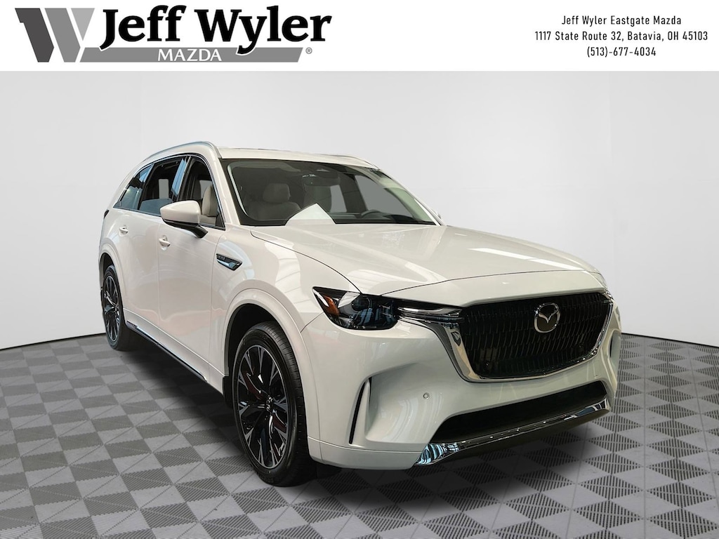 Priced below KBB Fair Purchase Price! Rhodium White Premium 2026 Mazda CX-90 3.3 Turbo S Premium Plus I6 Turbo AWD 8-Speed Automatic 23/28 City/Highway MPG Jeff Wyler Eastgate Auto Mall is pleased to offer this charming 2026 Mazda CX-90 3.3 Turbo S Premium Plus in Rhodium White Premium. Well equipped with: 12 Speakers, 3rd row seats: bench, 4-Wheel Disc Brakes, ABS brakes, Air Conditioning, All Weather Floor Mats - Captains Chairs, Alloy wheels, AM/FM radio: SiriusXM, Auto High-beam Headlights, Auto-dimming door mirrors, Auto-dimming Rear-View mirror, Automatic temperature control, Brake assist, Bumpers: body-color, Cargo Net, Compass, Delay-off headlights, Driver door bin, Driver vanity mirror, Dual front impact airbags, Dual front side impact airbags, E911 Automatic Emergency Notification, Electronic Stability Control, Emergency communication system: MAZDA CONNECT, Four wheel independent suspension, Front anti-roll bar, Front Bucket Seats, Front Center Armrest w/Storage, Front dual zone A/C, Front reading lights, Fully automatic headlights, Garage door transmitter: HomeLink, Heads-Up Display, Heated door mirrors, Heated front seats, Heated rear seats, Heated steering wheel, Heated/Ventilated Front Bucket Seats, Illuminated entry, Infotainment System Voice Command, Knee airbag, Leather Shift Knob, Leather steering wheel, Low tire pressure warning, Mazda Connected Services, Mazda Online Navigation, Memory seat, Nappa Leather Seat Trim, Navigation system: MAZDA CONNECT, Occupant sensing airbag, Outside temperature display, Overhead airbag, Overhead console, Panic alarm, Passenger door bin, Passenger vanity mirror, Power door mirrors, Power driver seat, Power Liftgate, Power moonroof, Power passenger seat, Power steering, Power windows, Radio Broadcast Data System Program Information, Radio data system, Radio: : AM/FM w/HD/Bose 12-Speaker Sound System, Rain sensing wipers, Rear air conditioning, Rear anti-roll bar, Rear reading lights, Rear seat center armrest, Rear window defroster, Rear window wiper, Remote keyless entry, Rhodium White Premium Paint Charge, Security system, SMS Text Msg Audio Delivery and Reply, Speed control, Speed-sensing steering, Splash Guards, Split folding rear seat, Spoiler, Steering wheel memory, Steering wheel mounted audio controls, Tachometer, Telescoping steering wheel, Tilt steering wheel, Traction control, Trip computer, Turn signal indicator mirrors, Variably intermittent wipers, Ventilated front seats, Ventilated rear seats, and Wheels: 21" x 9.5j Machine Cut Aluminum Alloy. 23/28 City/Highway MPG Price includes: $2000 - Customer Cash. Exp. 04/30/2026