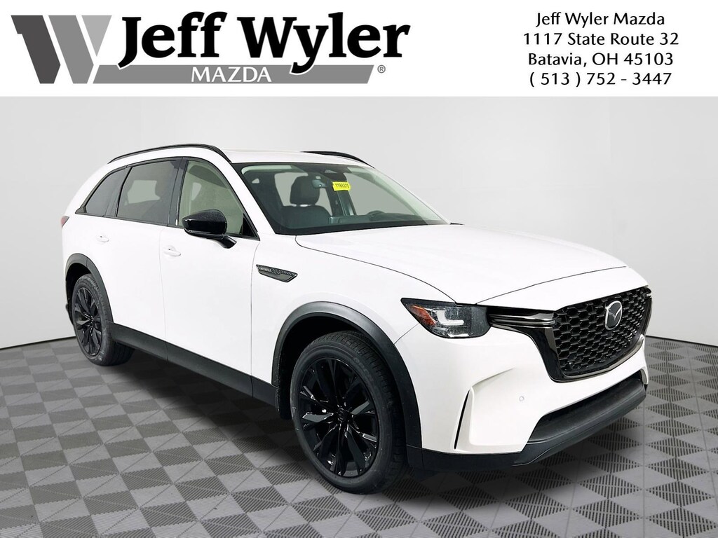 Rhodium White Premium 2026 Mazda CX-90 3.3 Turbo Premium I6 Turbo AWD 8-Speed Automatic 23/28 City/Highway MPG Jeff Wyler Eastgate Auto Mall is proud to offer this outstanding-looking 2026 Mazda CX-90 3.3 Turbo Premium in Rhodium White Premium. Well equipped with: 12 Speakers, 2nd-Row Captain's Chairs, 3rd row seats: bench, 4-Wheel Disc Brakes, ABS brakes, Air Conditioning, Alloy wheels, AM/FM radio: SiriusXM, Auto High-beam Headlights, Auto-dimming door mirrors, Auto-dimming Rear-View mirror, Automatic temperature control, Brake assist, Bumpers: body-color, Cargo Net, Compass, Delay-off headlights, Driver door bin, Driver vanity mirror, Dual front impact airbags, Dual front side impact airbags, E911 Automatic Emergency Notification, Electronic Stability Control, Emergency communication system: MAZDA CONNECT, Exterior Parking Camera Rear, First Aid Kit, Four wheel independent suspension, Front anti-roll bar, Front Bucket Seats, Front Center Armrest w/Storage, Front dual zone A/C, Front reading lights, Fully automatic headlights, Garage door transmitter: HomeLink, Heads-Up Display, Heated door mirrors, Heated front seats, Heated rear seats, Heated steering wheel, Heated/Ventilated Front Bucket Seats, Illuminated entry, Infotainment System Voice Command, Knee airbag, Leather Seat Trim, Leather Shift Knob, Leather steering wheel, Low tire pressure warning, Mazda Connected Services, Mazda Online Navigation, Memory seat, Navigation system: MAZDA CONNECT, Occupant sensing airbag, Outside temperature display, Overhead airbag, Overhead console, Panic alarm, Passenger door bin, Passenger vanity mirror, Power door mirrors, Power driver seat, Power Liftgate, Power moonroof, Power passenger seat, Power steering, Power windows, Radio Broadcast Data System Program Information, Radio data system, Radio: AM/FM w/HD/Bose 12-Speaker Sound System, Rain sensing wipers, Rear air conditioning, Rear anti-roll bar, Rear reading lights, Rear seat center armrest, Rear window defroster, Rear window wiper, Remote keyless entry, Rhodium White Premium Paint Charge, SMS Text Msg Audio Delivery & Reply, Speed control, Speed-sensing steering, Splash Guards, Split folding rear seat, Spoiler, Steering wheel mounted audio controls, Tachometer, Telescoping steering wheel, Tilt steering wheel, Traction control, Trip computer, Turn signal indicator mirrors, Variably intermittent wipers, Ventilated front seats, and Wheels: 21" x 9.5J Aluminum Alloy w/Black Metal Finish. 23/28 City/Highway MPG