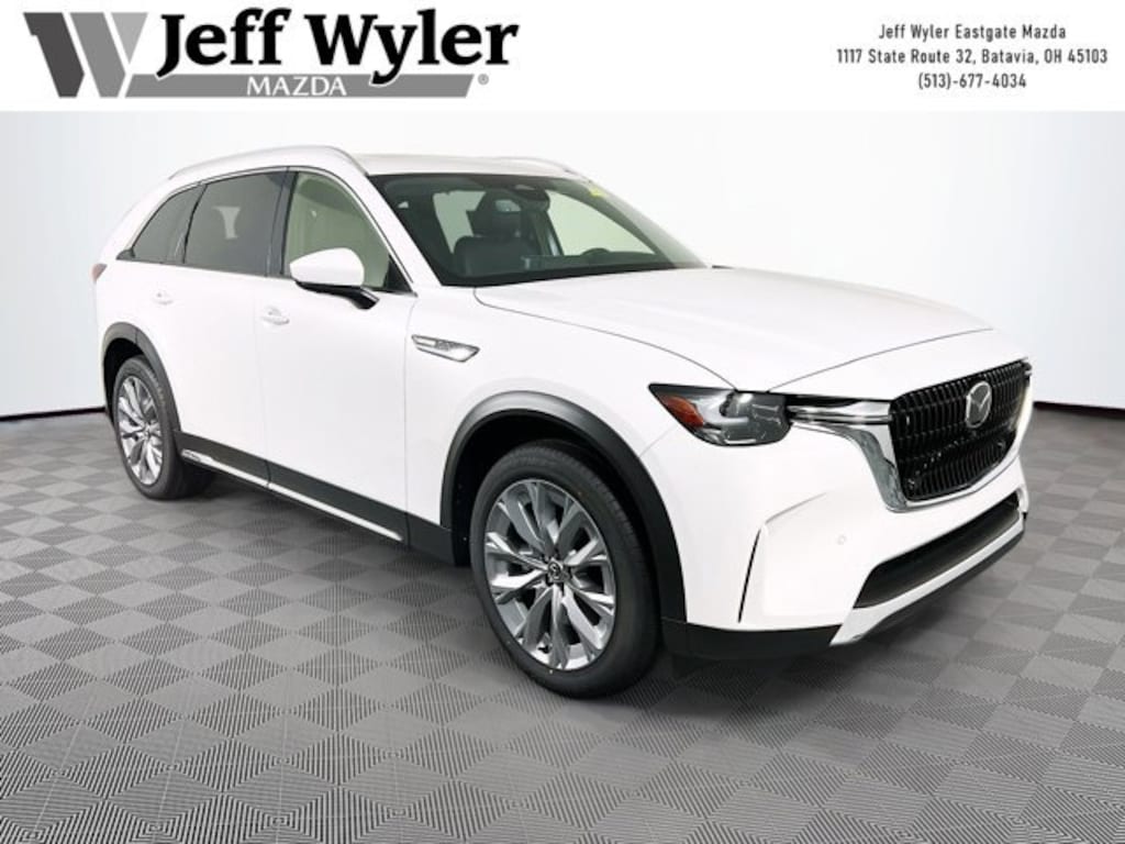 Priced below KBB Fair Purchase Price! Rhodium White Premium 2026 Mazda CX-90 3.3 Turbo Premium Plus I6 Turbo AWD 8-Speed Automatic 23/28 City/Highway MPG Jeff Wyler Eastgate Auto Mall is honored to offer this handsome 2026 Mazda CX-90 3.3 Turbo Premium Plus in Rhodium White Premium. Well equipped with: 12 Speakers, 2nd-Row Captain's Chairs, 3rd row seats: bench, 4-Wheel Disc Brakes, ABS brakes, Air Conditioning, Alloy wheels, AM/FM radio: SiriusXM, Auto High-beam Headlights, Auto-dimming door mirrors, Automatic temperature control, Brake assist, Bumpers: body-color, Cargo Net, Compass, Delay-off headlights, Driver door bin, Driver vanity mirror, Dual front impact airbags, Dual front side impact airbags, E911 Automatic Emergency Notification, Electronic Stability Control, Emergency communication system: MAZDA CONNECT, Four wheel independent suspension, Front anti-roll bar, Front Bucket Seats, Front Center Armrest w/Storage, Front dual zone A/C, Front reading lights, Fully automatic headlights, Garage door transmitter: HomeLink, Heads-Up Display, Heated door mirrors, Heated front seats, Heated rear seats, Heated steering wheel, Heated/Ventilated Front Bucket Seats, Illuminated entry, Infotainment System Voice Command, Knee airbag, Leather Shift Knob, Leather steering wheel, Logo Welcome Light, Low tire pressure warning, Mazda Connected Services, Mazda Online Navigation, Memory seat, Nappa Leather Seat Trim, Navigation system: MAZDA CONNECT, Occupant sensing airbag, Outside temperature display, Overhead airbag, Overhead console, Panic alarm, Passenger door bin, Passenger vanity mirror, Power door mirrors, Power driver seat, Power Liftgate, Power moonroof, Power passenger seat, Power steering, Power windows, Radio Broadcast Data System Program Information, Radio data system, Radio: AM/FM w/HD/Bose 12-Speaker Sound System, Rain sensing wipers, Rear air conditioning, Rear anti-roll bar, Rear reading lights, Rear seat center armrest, Rear window defroster, Rear window wiper, Remote keyless entry, Rhodium White Premium Paint Charge, Security system, SMS Text Msg Audio Delivery & Reply, Speed control, Speed-sensing steering, Split folding rear seat, Spoiler, Steering wheel mounted audio controls, Tachometer, Telescoping steering wheel, Tilt steering wheel, Traction control, Trip computer, Turn signal indicator mirrors, Variably intermittent wipers, Ventilated front seats, and Wheels: 21 x 9.5J Silver Metallic Aluminum Alloy. 23/28 City/Highway MPG Price includes: $1500 - Customer Cash. Exp. 02/02/2026