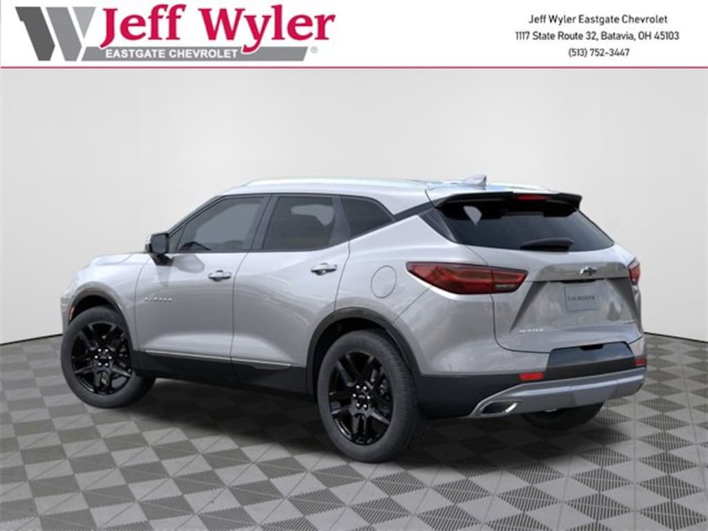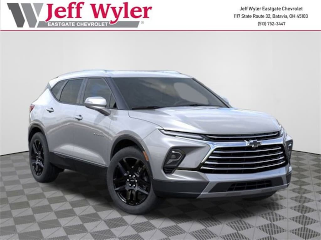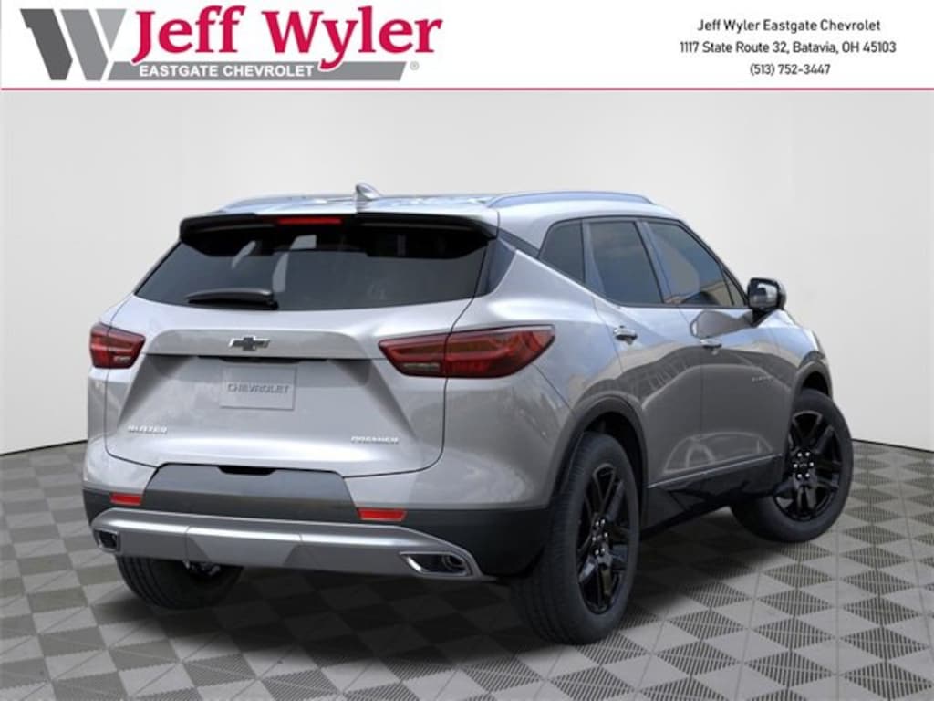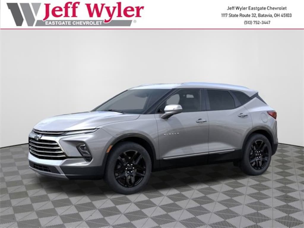 Sterling Gray Metallic 2025 Chevrolet Blazer Premier 3.6L V6 SIDI FWD 9-Speed Automatic with Overdrive 19/26 City/Highway MPG Jeff Wyler Eastgate Auto Mall is proud to offer this superb 2025 Chevrolet Blazer Premier in Sterling Gray Metallic. Well equipped with: Black Grille Bar Package (LPO) (Black Grille Bar LPO) and Front & Rear Black Bowties), Enhanced Convenience Package (Heated Rear Outboard Seating Positions, Memory Settings For Driver Seat & Exterior Mirrors, Power Tilt & Telescoping Steering Column, and Ventilated Driver & Front Passenger Seats), Interior Protection Package (LPO) (Premium All-Weather Cargo Mat (LPO) and Premium All-Weather Floor Mats), Preferred Equipment Group 0HD, 155 Amp Alternator, 170 Amp Alternator, 4-Wheel Disc Brakes, 6-Way Power Front Passenger Seat Adjuster, 8 Speakers, 8-Way Power Driver Seat Adjuster, ABS brakes, Air Conditioning, Alloy wheels, AM/FM radio: SiriusXM with 360L, Apple CarPlay/Android Auto, Auto High-beam Headlights, Auto-dimming door mirrors, Auto-dimming Rear-View mirror, Automatic temperature control, Bose Premium 8-Speaker Audio System Feature, Brake assist, Bumpers: body-color, Child-Seat-Sensing Airbag, Compass, Delay-off headlights, Driver door bin, Driver vanity mirror, Dual front impact airbags, Dual front side impact airbags, Electronic Stability Control, Emergency communication system: OnStar and Chevrolet connected services capable, Four wheel independent suspension, Front anti-roll bar, Front Bucket Seats, Front Center Armrest, Front dual zone A/C, Front reading lights, Fully automatic headlights, Garage door transmitter, Heated door mirrors, Heated Driver & Front Passenger Seats, Heated front seats, Heated steering wheel, Illuminated entry, Knee airbag, Leather Shift Knob, Leather steering wheel, Low tire pressure warning, Navigation System, Occupant sensing airbag, Outside temperature display, Overhead airbag, Overhead console, Panic alarm, Passenger door bin, Passenger vanity mirror, Perforated Leather-Appointed Seat Trim, Power door mirrors, Power Driver Lumbar Control, Power driver seat, Power Liftgate, Power passenger seat, Power steering, Power windows, Premium audio system: Chevrolet Infotainment 3 Premium, Radio data system, Radio: Chevrolet Infotainment 3 Premium System, Rear anti-roll bar, Rear reading lights, Rear seat center armrest, Rear window defroster, Rear window wiper, Remote keyless entry, Ride & Handling Suspension, Security system, SiriusXM w/360L, Speed control, Speed-sensing steering, Split folding rear seat, Spoiler, Steering wheel mounted audio controls, Stop-Start Engine Control System, Tachometer, Telescoping steering wheel, Tilt steering wheel, Traction control, Trip computer, Turn signal indicator mirrors, Variably intermittent wipers, Voltmeter, Wheels: 20 Gloss Black Aluminum, and Wheels: 20 Medium Android Machined-Face Aluminum. 19/26 City/Highway MPG Price includes: $1000 - Chevrolet Consumer Cash Program. Exp. 11/03/2025