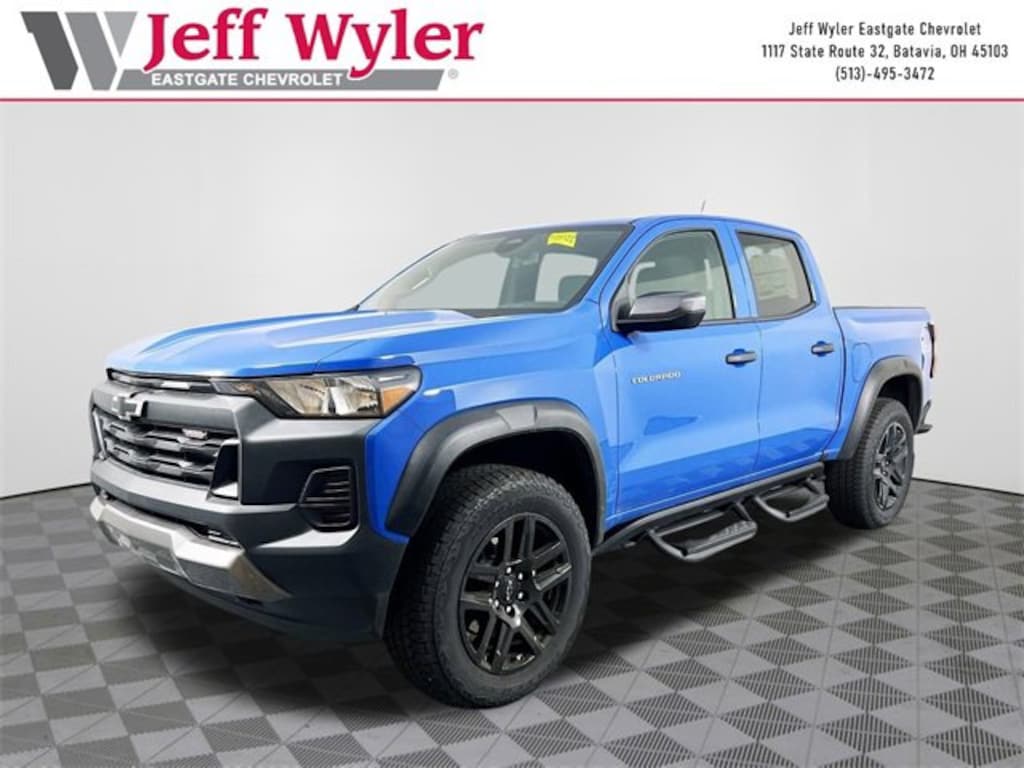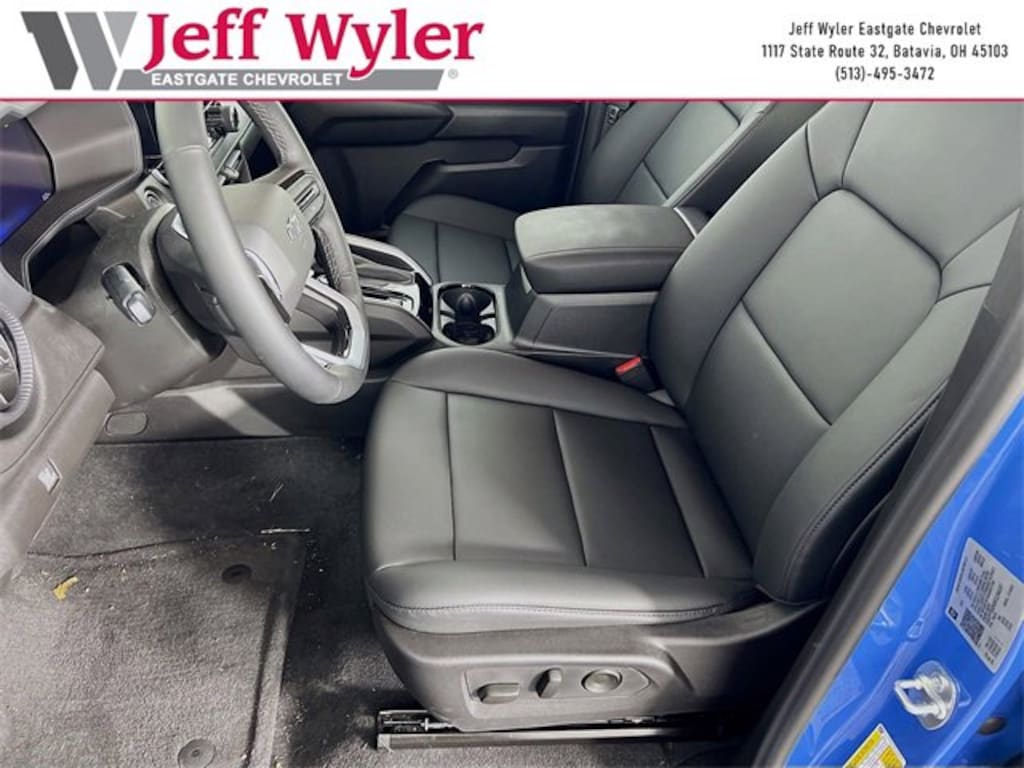 Reef Blue Metallic 2025 Chevrolet Colorado Trail Boss 2.7L I4 Turbocharged DOHC 16V LEV3-ULEV50 310hp 4WD 8-Speed Automatic 18/23 City/Highway MPG Jeff Wyler Eastgate Auto Mall is pumped up to offer this gorgeous-looking 2025 Chevrolet Colorado Trail Boss in Reef Blue Metallic. Well equipped with: Preferred Equipment Group 0TR (Automatic Emergency Braking, Chevy Safety Assist, Following Distance Indicator, Forward Collision Alert, Front Pedestrian & Bicyclist Braking, IntelliBeam Automatic High Beam On/Off, and Lane Keep Assist w/Lane Departure Warning), Trail Boss Convenience Package II (4-Spoke Wrapped Steering Wheel, 8-Way Power Driver Seat Adjuster, Evotex Seat Trim, Heated Driver & Front Passenger Seats, Heated Steering Wheel, Power Driver Lumbar Control Seat Adjuster, Remote Vehicle Starter System, and Wireless Phone Charging), 3.42 Rear Axle Ratio, 4-Way Manual Passenger Seat Adjuster, 4-Wheel Disc Brakes, 6 Speakers, 6-Speaker Audio System Feature, 6-Way Manual Driver Seat Adjuster, ABS brakes, Air Conditioning, Alloy wheels, AM/FM radio: SiriusXM, Apple CarPlay/Android Auto, Auto High-beam Headlights, Automatic temperature control, Brake assist, Cloth Seat Trim, Compass, Delay-off headlights, Driver door bin, Driver vanity mirror, Dual front impact airbags, Dual front side impact airbags, Electronic Stability Control, Emergency communication system: OnStar, Front anti-roll bar, Front Bucket Seats, Front Center Armrest, Front dual zone A/C, Front wheel independent suspension, Heated door mirrors, Illuminated entry, Low tire pressure warning, Navigation System, Occupant sensing airbag, Outside temperature display, Overhead airbag, Overhead console, Panic alarm, Passenger door bin, Passenger vanity mirror, Power door mirrors, Power steering, Power windows, Radio data system, Radio: 11.3 Diagonal Advanced Color LCD Display, Rear reading lights, Rear step bumper, Rear window defroster, Remote keyless entry, Removable Front & Rear Off-Road Assist Steps (LPO), Rocker Panel Protector (LPO), Security system, SiriusXM Trial Subscription, Speed control, Speed-sensing steering, Split folding rear seat, Steering Wheel Mounted Audio Controls, Steering wheel mounted audio controls, Tachometer, Tilt steering wheel, Traction control, Trip computer, Variably intermittent wipers, Wheels: 18 x 8.5 Black High Gloss Aluminum, Wheels: 20 x 9 High Gloss Black Aluminum, and Wireless Phone Projection. Price includes: $500 - Chevrolet Consumer Cash Program. Exp. 01/02/2026