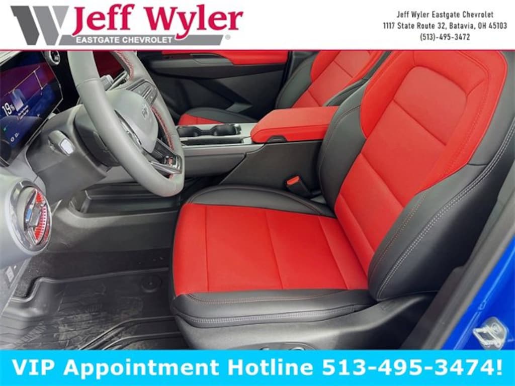 Priced below KBB Fair Purchase Price! Riptide Blue Metallic 2025 Chevrolet Equinox EV RS Electric Motor FWD 1-Speed Automatic Jeff Wyler Eastgate Auto Mall is proud to offer this good-looking 2025 Chevrolet Equinox EV RS in Riptide Blue Metallic. Well equipped with: Preferred Equipment Group 2RS, 4-Wheel Disc Brakes, 6 Speakers, 6-Speaker Audio System Feature, 6-Way Manual Front Passenger Seat Adjuster, 8-Way Power Driver Seat Adjuster, ABS brakes, Air Conditioning, Alloy wheels, AM/FM radio: SiriusXM with 360L, Auto High-beam Headlights, Auto-dimming Rear-View mirror, Automatic temperature control, Brake assist, Bumpers: body-color, Compass, Delay-off headlights, Driver door bin, Driver vanity mirror, Dual front impact airbags, Dual front side impact airbags, Dual Level Charge Cord, Electronic Stability Control, Emergency communication system: OnStar and Chevrolet connected services capable, Evotex Seat Trim, Four wheel independent suspension, Front anti-roll bar, Front Bucket Seats, Front Center Armrest, Front reading lights, Fully automatic headlights, Heated door mirrors, Heated front seats, Heated steering wheel, Illuminated entry, Knee airbag, Low tire pressure warning, Navigation system: Google built-in compatibility (select service plan required, terms and limitations apply), Occupant sensing airbag, Outside temperature display, Overhead airbag, Overhead console, Panic alarm, Passenger door bin, Passenger vanity mirror, Power door mirrors, Power Driver Lumbar Control, Power driver seat, Power Dual Panel Panoramic Sliding Sunroof, Power Liftgate, Power steering, Power windows, Radio: 17.7 Diagonal Advanced Color LCD Display, Rear anti-roll bar, Rear reading lights, Rear seat center armrest, Rear window defroster, Rear window wiper, Remote keyless entry, Security system, Speed control, Split folding rear seat, Spoiler, Sport steering wheel, Steering wheel mounted audio controls, Telescoping steering wheel, Tilt steering wheel, Traction control, Trip computer, Turn signal indicator mirrors, Variably intermittent wipers, and Wheels: 21 Black Painted Aluminum. Price includes: $8750 - Chevrolet Consumer Cash Program. Exp. 03/02/2026