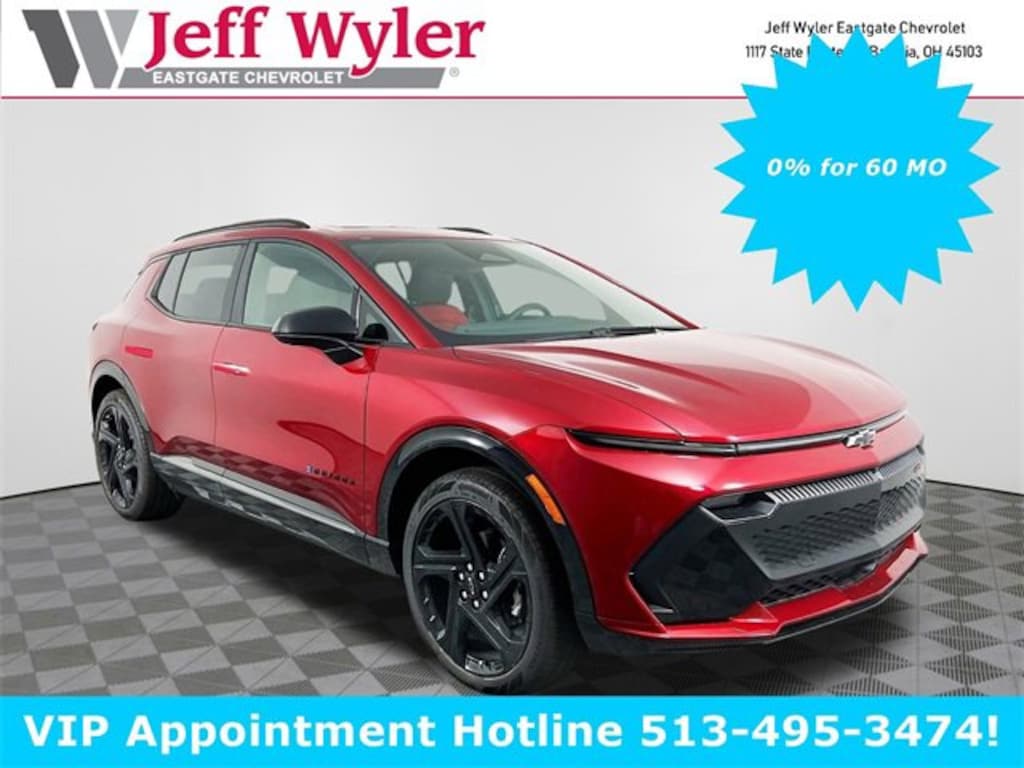 Priced below KBB Fair Purchase Price! Radiant Red Tintcoat 2025 Chevrolet Equinox EV RS Electric Drive Unit FWD 1-Speed Automatic Jeff Wyler Eastgate Auto Mall is very proud to offer this attractive 2025 Chevrolet Equinox EV RS in Radiant Red Tintcoat. Well equipped with: All-Weather Mat Package (LPO), Preferred Equipment Group 2RS, 4-Wheel Disc Brakes, 6 Speakers, 6-Speaker Audio System Feature, 6-Way Manual Front Passenger Seat Adjuster, 8-Way Power Driver Seat Adjuster, ABS brakes, Air Conditioning, All-Weather Cargo Area Liner (LPO) (DISC), All-Weather Floor Mats (LPO) (DISC), Alloy wheels, AM/FM radio: SiriusXM with 360L, Auto High-beam Headlights, Auto-dimming Rear-View mirror, Automatic temperature control, Brake assist, Bumpers: body-color, Compass, Delay-off headlights, Driver door bin, Driver vanity mirror, Dual front impact airbags, Dual front side impact airbags, Dual Level Charge Cord, Electronic Stability Control, Emergency communication system: OnStar and Chevrolet connected services capable, Evotex Seat Trim, Four wheel independent suspension, Front anti-roll bar, Front Bucket Seats, Front Center Armrest, Front reading lights, Fully automatic headlights, Heated door mirrors, Heated Driver & Fr Passenger Seats Cushion & Seatback, Heated front seats, Heated steering wheel, Illuminated entry, Knee airbag, Low tire pressure warning, NACS DC Adapter (LPO), Navigation system: Google built-in compatibility (select service plan required, terms and limitations apply), Occupant sensing airbag, Outside temperature display, Overhead airbag, Overhead console, Panic alarm, Passenger door bin, Passenger vanity mirror, Power door mirrors, Power Driver Lumbar Control, Power driver seat, Power Dual Panel Panoramic Sliding Sunroof, Power Liftgate, Power steering, Power windows, Radio: 17.7 Diagonal Advanced Color LCD Display, Rear anti-roll bar, Rear reading lights, Rear seat center armrest, Rear window defroster, Rear window wiper, Remote keyless entry, Security system, SiriusXM w/360L Trial Subscription, Speed control, Split folding rear seat, Spoiler, Sport steering wheel, Steering wheel mounted audio controls, Telescoping steering wheel, Tilt steering wheel, Traction control, Trip computer, Turn signal indicator mirrors, Variably intermittent wipers, and Wheels: 21 Black Painted Aluminum. Price includes: $3000 - Chevrolet Consumer Cash Program. Exp. 11/03/2025