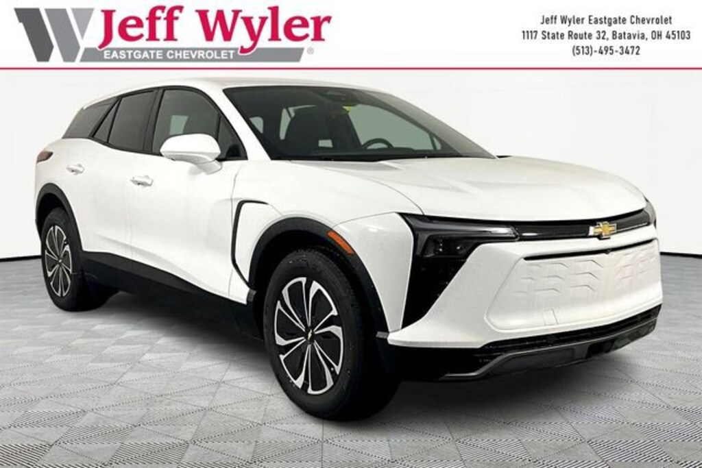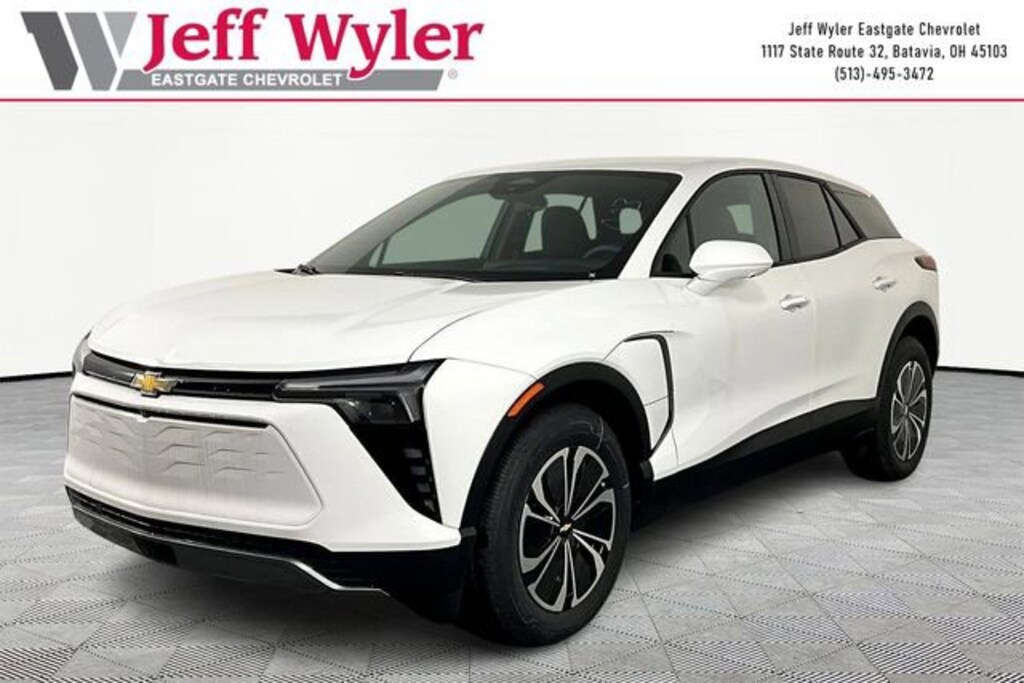 Summit White 2026 Chevrolet Blazer EV LT Electric Motor FWD 1-Speed Automatic Jeff Wyler Eastgate Auto Mall is pumped up to offer this superb 2026 Chevrolet Blazer EV LT in Summit White. Well equipped with: 4-Wheel Disc Brakes, 6 Speakers, 6-Speaker Audio System Feature, 6-Way Manual Driver Seat Adjuster, 6-Way Manual Front Passenger Seat Adjuster, ABS brakes, Air Conditioning, Alloy wheels, AM/FM radio: SiriusXM with 360L, Auto High-beam Headlights, Automatic temperature control, Brake assist, Bumpers: body-color, Cloth Seat Trim, Compass, Delay-off headlights, Driver door bin, Driver vanity mirror, Dual front impact airbags, Dual front side impact airbags, Electronic Stability Control, Emergency communication system: OnStar and Chevrolet connected services capable, Four wheel independent suspension, Front anti-roll bar, Front Bucket Seats, Front Center Armrest, Front reading lights, Fully automatic headlights, Illuminated entry, Knee airbag, Low tire pressure warning, Navigation System, Occupant sensing airbag, Outside temperature display, Overhead airbag, Overhead console, Panic alarm, Passenger door bin, Passenger vanity mirror, Power door mirrors, Power steering, Power windows, Radio: 17.7 Diagonal Advanced Color LCD Display, Rear anti-roll bar, Rear reading lights, Rear seat center armrest, Rear window defroster, Rear window wiper, Remote keyless entry, Security system, Speed control, Split folding rear seat, Spoiler, Steering wheel mounted audio controls, Telescoping steering wheel, Tilt steering wheel, Traction control, Trip computer, Variably intermittent wipers, and Wheels: 19 Machined-Face Aluminum. Price includes: $1000 - Chevrolet Consumer Cash Program. Exp. 03/31/2026