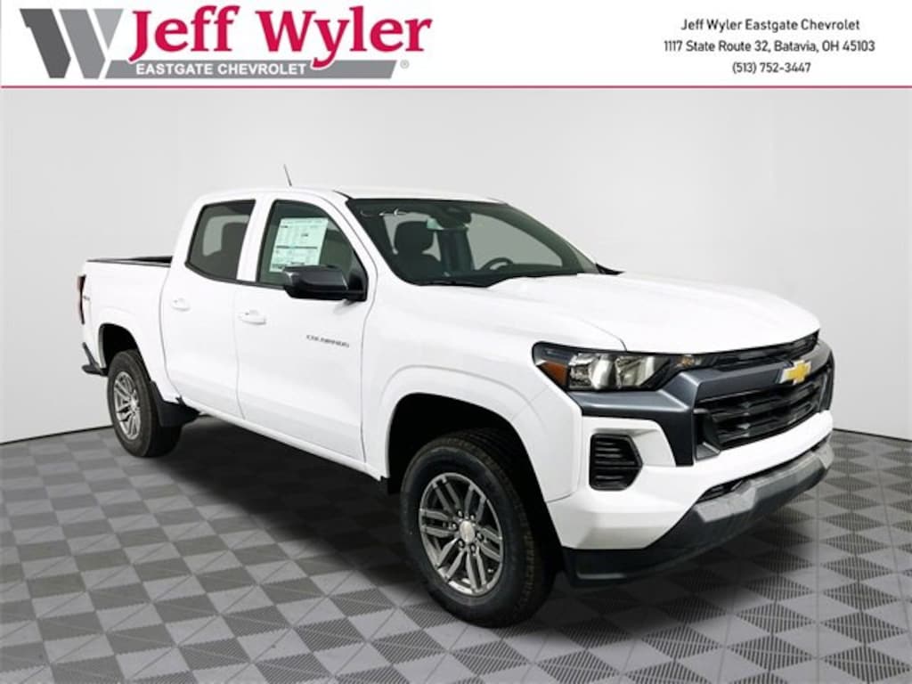 Summit White 2026 Chevrolet Colorado LT 2.7L I4 Turbocharged DOHC 16V LEV3-ULEV50 310hp 4WD 8-Speed Automatic 18/23 City/Highway MPG Jeff Wyler Eastgate Auto Mall is excited to offer this wonderful 2026 Chevrolet Colorado LT in Summit White. Well equipped with: Preferred Equipment Group 4LT (Automatic Emergency Braking, Chevy Safety Assist, Following Distance Indicator, Forward Collision Alert, Front Pedestrian & Bicyclist Braking, IntelliBeam Automatic High Beam On/Off, and Lane Keep Assist w/Lane Departure Warning), 1st & 2nd Row All-Weather Floor Liner (LPO), 3.42 Rear Axle Ratio, 4-Way Manual Passenger Seat Adjuster, 4-Wheel Disc Brakes, 6 Speakers, 6-Speaker Audio System Feature, 8-Way Power Driver Seat Adjuster, ABS brakes, Air Conditioning, Alloy wheels, AM/FM radio: SiriusXM with 360L, Apple CarPlay/Android Auto, Auto High-beam Headlights, Auto-dimming Rear-View mirror, Automatic temperature control, Black Spray-On Bedliner, Brake assist, Bumpers: body-color, Cloth Seat Trim, Compass, Delay-off headlights, Driver & Front Passenger Heated Seats, Driver door bin, Driver vanity mirror, Dual front impact airbags, Dual front side impact airbags, Electronic Stability Control, Emergency communication system: OnStar, Front anti-roll bar, Front Bucket Seats, Front Center Armrest, Front dual zone A/C, Front Passenger Seatback Map Pocket, Front reading lights, Front wheel independent suspension, Heated door mirrors, Heated front seats, Illuminated entry, Low tire pressure warning, Navigation System, Occupant sensing airbag, Outside temperature display, Overhead airbag, Overhead console, Panic alarm, Passenger door bin, Passenger vanity mirror, Power door mirrors, Power Driver Lumbar Control Seat Adjuster, Power driver seat, Power steering, Power windows, Radio data system, Radio: 11.3 Diagonal Advanced Color LCD Display, Rear reading lights, Rear step bumper, Rear window defroster, Remote keyless entry, Security system, SiriusXM w/360L Trial Subscription, Speed control, Speed-sensing steering, Split folding rear seat, Steering Wheel Mounted Audio Controls, Steering wheel mounted audio controls, Tachometer, Telescoping steering wheel, Tilt steering wheel, Traction control, Trip computer, Variably intermittent wipers, Wheels: 17 x 8 Argent Metallic Aluminum, and Wireless Phone Projection.
