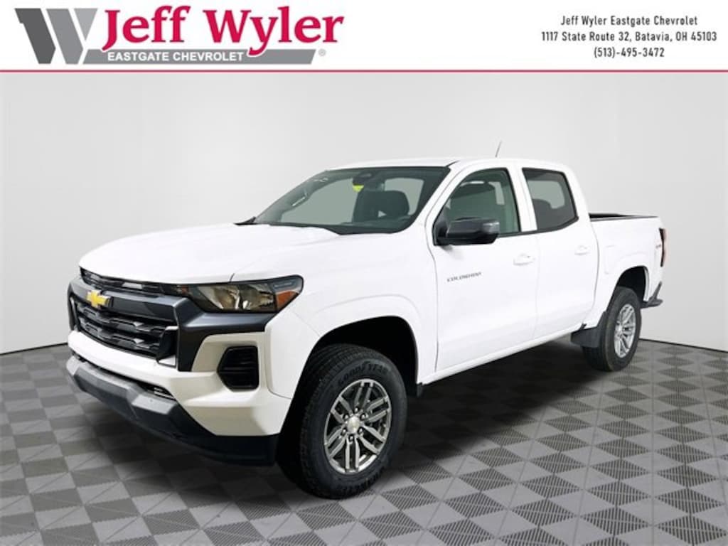 Priced below KBB Fair Purchase Price! Summit White 2026 Chevrolet Colorado LT 2.7L I4 Turbocharged DOHC 16V LEV3-ULEV50 310hp 4WD 8-Speed Automatic 18/23 City/Highway MPG Jeff Wyler Eastgate Auto Mall is pleased to offer this attractive 2026 Chevrolet Colorado LT in Summit White. Well equipped with: Preferred Equipment Group 4LT (Automatic Emergency Braking, Chevy Safety Assist, Following Distance Indicator, and Forward Collision Alert), 3.42 Rear Axle Ratio, 4-Way Manual Passenger Seat Adjuster, 4-Wheel Disc Brakes, 6 Speakers, 6-Speaker Audio System Feature, 8-Way Power Driver Seat Adjuster, ABS brakes, Air Conditioning, Alloy wheels, AM/FM radio: SiriusXM with 360L, Apple CarPlay/Android Auto, Auto High-beam Headlights, Auto-dimming Rear-View mirror, Automatic temperature control, Brake assist, Bumpers: body-color, Cloth Seat Trim, Compass, Delay-off headlights, Driver door bin, Driver vanity mirror, Dual front impact airbags, Dual front side impact airbags, Electronic Stability Control, Emergency communication system: OnStar, Front anti-roll bar, Front Bucket Seats, Front Center Armrest, Front dual zone A/C, Front Passenger Seatback Map Pocket, Front reading lights, Front wheel independent suspension, Heated door mirrors, Heated front seats, Illuminated entry, Low tire pressure warning, Navigation System, Occupant sensing airbag, Outside temperature display, Overhead airbag, Overhead console, Panic alarm, Passenger door bin, Passenger vanity mirror, Power door mirrors, Power Driver Lumbar Control Seat Adjuster, Power driver seat, Power steering, Power windows, Radio data system, Radio: 11.3 Diagonal Advanced Color LCD Display, Rear reading lights, Rear step bumper, Rear window defroster, Remote keyless entry, Security system, Speed control, Speed-sensing steering, Split folding rear seat, Steering Wheel Mounted Audio Controls, Steering wheel mounted audio controls, Tachometer, Telescoping steering wheel, Tilt steering wheel, Traction control, Trip computer, Variably intermittent wipers, Wheels: 17 x 8 Argent Metallic Aluminum, and Wireless Phone Projection. Price includes: $1750 - Chevrolet Consumer Cash Program. Exp. 01/02/2026