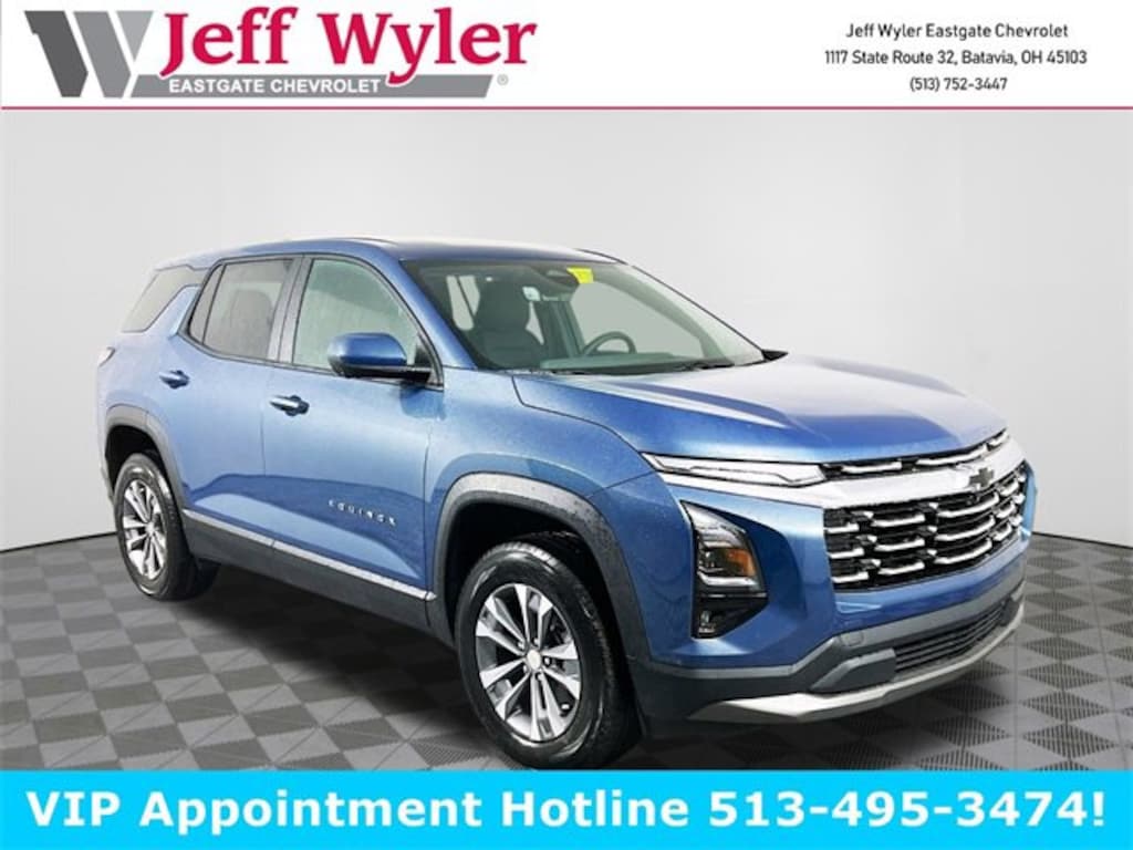 Lakeshore Blue Metallic 2026 Chevrolet Equinox LT 1.5L DOHC FWD CVT 26/28 City/Highway MPG Jeff Wyler Eastgate Auto Mall is pleased to offer this attractive 2026 Chevrolet Equinox LT in Lakeshore Blue Metallic. Well equipped with: Floor Liner Package (LPO) (All-Weather Floor Liners (LPO), Cargo Mat, and Second Row All-Weather Mat (LPO)), Preferred Equipment Group 1LT, Safety & Technology Package (Front Fog Lamps, HD Surround Vision, Rear Pedestrian Alert, and Traffic Sign Recognition), 4-Wheel Disc Brakes, 5.81 Final Drive Axle Ratio, 6 Speakers, ABS brakes, Air Conditioning, Alloy wheels, AM/FM radio: SiriusXM, Auto High-beam Headlights, Brake assist, Bumpers: body-color, Cloth Seat Trim, Compass, Delay-off headlights, Driver 6-Way Manual Seat Adjuster, Driver door bin, Driver vanity mirror, Dual front impact airbags, Dual front side impact airbags, Electronic Stability Control, Emergency communication system: OnStar and Chevrolet connected services capable, Four wheel independent suspension, Front & Rear Black Bowtie Emblems (LPO), Front anti-roll bar, Front Bucket Seats, Front Center Armrest, Front Passenger 4-Way Manual Seat Adjuster, Front reading lights, Fully automatic headlights, Heated door mirrors, Heated Driver & Front Passenger Seats, Heated front seats, Heated steering wheel, Illuminated entry, Low tire pressure warning, Navigation System, Occupant sensing airbag, Outside temperature display, Overhead airbag, Overhead console, Panic alarm, Passenger door bin, Passenger vanity mirror, Power door mirrors, Power steering, Power windows, Premium audio system: Chevrolet Infotainment 3, Radio data system, Radio: 11.3 Diagonal Advanced Color LCD Display, Rear anti-roll bar, Rear Camera Mirror Washer, Rear reading lights, Rear seat center armrest, Rear window defroster, Rear window wiper, Remote keyless entry, Security system, SiriusXM w/360L Trial Subscription, Speed control, Speed-sensing steering, Split folding rear seat, Spoiler, Steering wheel mounted audio controls, Tachometer, Telescoping steering wheel, Tilt steering wheel, Traction control, Trip computer, Variably intermittent wipers, and Wheels: 17 Grazen Metallic Machined-Face Aluminum. 26/28 City/Highway MPG