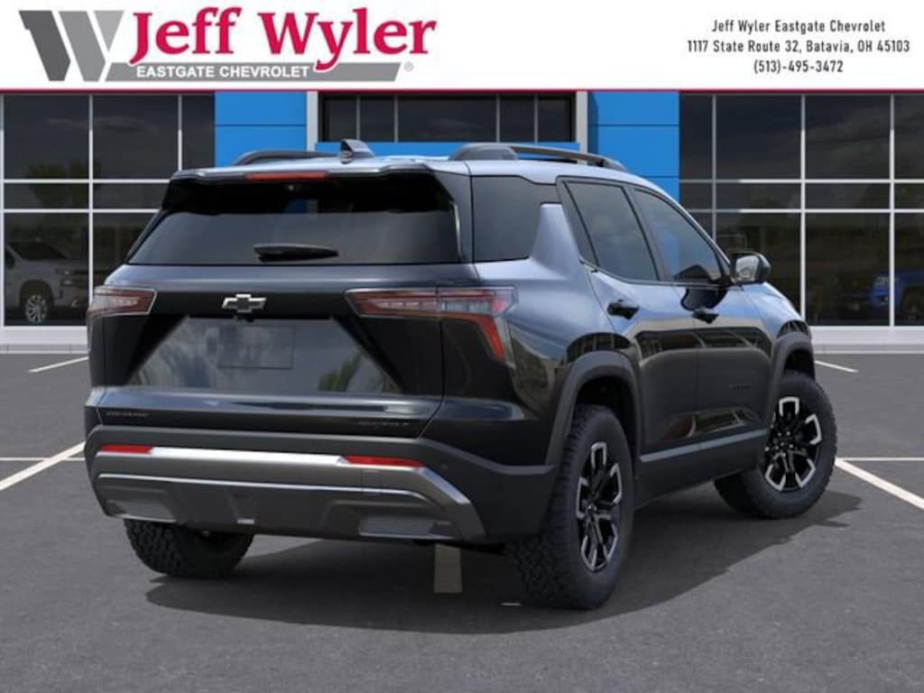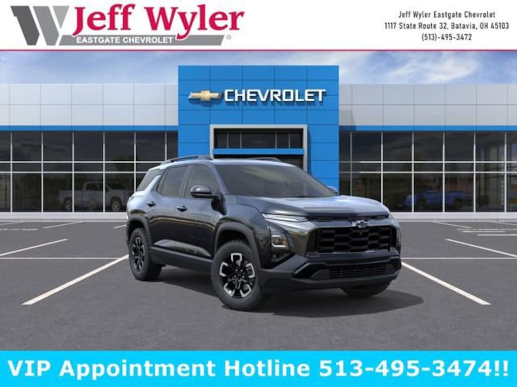 Mosaic Black Metallic 2026 Chevrolet Equinox ACTIV 1.5L DOHC AWD 8-Speed Automatic 25/29 City/Highway MPG Jeff Wyler Eastgate Auto Mall is pleased to offer this attractive-looking 2026 Chevrolet Equinox ACTIV in Mosaic Black Metallic. Well equipped with: Convenience Package III (Front Passenger 2-Way Power Lumbar Seat Adjuster, Front Passenger 8-Way Power Seat Adjuster, Heated Rear Outboard Seating Positions, Memory Settings, Ventilated Driver Seat, and Ventilated Front Passenger Seat), Floor Liner Package (All-Weather Floor Liners, Cargo Mat, and Second Row All-Weather Mat), Preferred Equipment Group KDZ, Safety and Technology Package (Front Fog Lamps, HD Surround Vision, Rear Pedestrian Alert, and Traffic Sign Recognition), 2-Way Power Driver Lumbar Control Seat Adjuster, 3.47 Final Drive Axle Ratio, 4-Wheel Disc Brakes, 6 Speakers, ABS brakes, Air Conditioning, Alloy wheels, AM/FM radio: SiriusXM, Auto High-beam Headlights, Automatic temperature control, Brake assist, Bumpers: body-color, Compass, Delay-off headlights, Driver 8-Way Power Seat Adjuster, Driver door bin, Driver vanity mirror, Dual front impact airbags, Dual front side impact airbags, Electronic Stability Control, Emergency communication system: OnStar and Chevrolet connected services capable, Four wheel independent suspension, Front anti-roll bar, Front Bucket Seats, Front Center Armrest, Front dual zone A/C, Front Passenger 4-Way Manual Seat Adjuster, Front reading lights, Fully automatic headlights, Garage door transmitter, Heated door mirrors, Heated Driver and Front Passenger Seats, Heated front seats, Heated steering wheel, Illuminated entry, Low tire pressure warning, Navigation System, Occupant sensing airbag, Outside temperature display, Overhead airbag, Overhead console, Panic alarm, Passenger door bin, Passenger vanity mirror, Power door mirrors, Power driver seat, Power Dual Glass Panoramic Sliding Sunroof, Power Liftgate, Power steering, Power windows, Premium audio system: Chevrolet Infotainment 3 Plus, Radio data system, Radio: 11.3 Diagonal Advanced Color LCD Display, Rain sensing wipers, Rear anti-roll bar, Rear Camera Mirror Washer, Rear reading lights, Rear seat center armrest, Rear window defroster, Rear window wiper, Remote keyless entry, Security system, SiriusXM with 360L Trial Subscription, Speed control, Speed-sensing steering, Split folding rear seat, Spoiler, Steering wheel mounted audio controls, Sueded Microfiber Seat Trim, Tachometer, Telescoping steering wheel, Tilt steering wheel, Traction control, Trip computer, Variably intermittent wipers, and Wheels: 17 Dark Android Painted Machined-Face. 25/29 City/Highway MPG