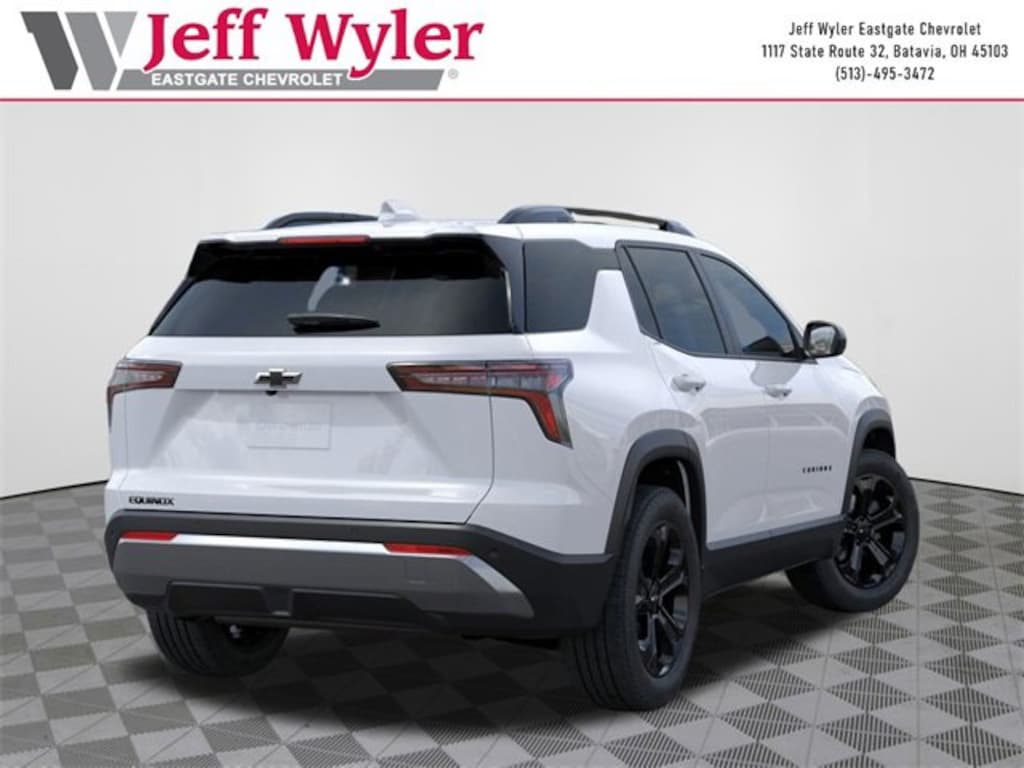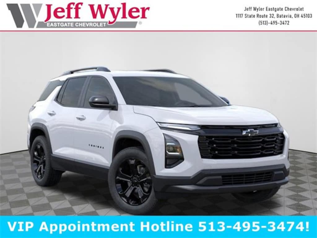 Summit White 2026 Chevrolet Equinox LT 1.5L DOHC FWD CVT 26/28 City/Highway MPG Jeff Wyler Eastgate Auto Mall is pumped up to offer this superb-looking 2026 Chevrolet Equinox LT in Summit White. Well equipped with: Midnight Edition (High Gloss Black Mirror Caps and Wheels: 19 Black Painted Aluminum), Preferred Equipment Group 1LT, 4-Wheel Disc Brakes, 5.81 Final Drive Axle Ratio, 6 Speakers, ABS brakes, Air Conditioning, All-Weather Floor Liners (LPO), Alloy wheels, AM/FM radio: SiriusXM, Auto High-beam Headlights, Brake assist, Bumpers: body-color, Cloth Seat Trim, Compass, Delay-off headlights, Driver 6-Way Manual Seat Adjuster, Driver door bin, Driver vanity mirror, Dual front impact airbags, Dual front side impact airbags, Electronic Stability Control, Emergency communication system: OnStar and Chevrolet connected services capable, Four wheel independent suspension, Front anti-roll bar, Front Bucket Seats, Front Center Armrest, Front Passenger 4-Way Manual Seat Adjuster, Front reading lights, Fully automatic headlights, Heated door mirrors, Heated Driver & Front Passenger Seats, Heated front seats, Heated steering wheel, Illuminated entry, Low tire pressure warning, Navigation System, Occupant sensing airbag, Outside temperature display, Overhead airbag, Overhead console, Panic alarm, Passenger door bin, Passenger vanity mirror, Power door mirrors, Power steering, Power windows, Premium audio system: Chevrolet Infotainment 3, Radio data system, Radio: 11.3 Diagonal Advanced Color LCD Display, Rear anti-roll bar, Rear reading lights, Rear seat center armrest, Rear window defroster, Rear window wiper, Remote keyless entry, Roof Rails, Second Row All-Weather Mat (LPO), Security system, SiriusXM w/360L Trial Subscription, Speed control, Speed-sensing steering, Split folding rear seat, Spoiler, Steering wheel mounted audio controls, Tachometer, Telescoping steering wheel, Tilt steering wheel, Traction control, Trip computer, Variably intermittent wipers, and Wheels: 17 Grazen Metallic Machined-Face Aluminum. 26/28 City/Highway MPG
