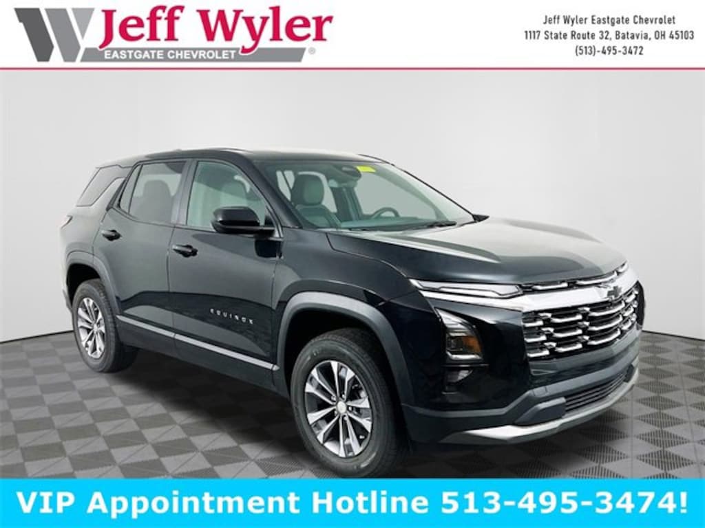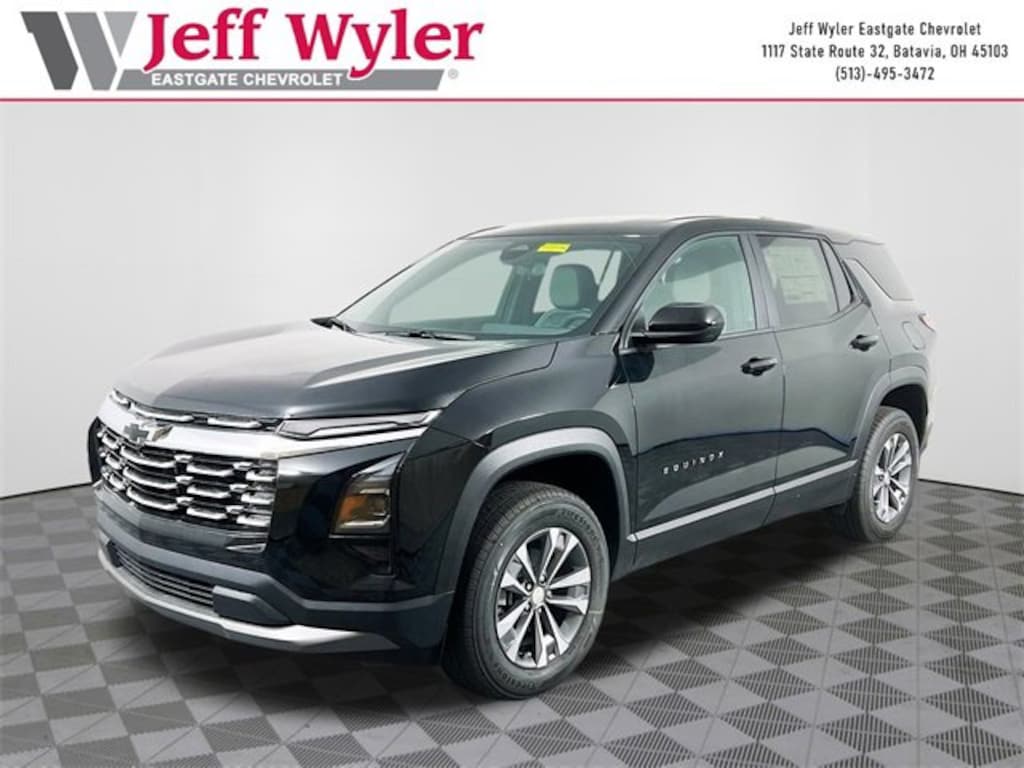 Mosaic Black Metallic 2026 Chevrolet Equinox LT 1.5L DOHC FWD CVT 26/28 City/Highway MPG Jeff Wyler Eastgate Auto Mall is proud to offer this stunning 2026 Chevrolet Equinox LT in Mosaic Black Metallic. Well equipped with: Convenience Package II (2-Way Power Driver Lumbar Control Seat Adjuster, AutoSense Hands-Free Power Programmable Liftgate, Cabin Humidity & Windshield Sensor, Driver 8-Way Power Seat Adjuster, Dual-Zone Automatic Climate Control, Evotex Seat Trim, Heated Wiper Park, Intermittent Front Rain-Sensing Wipers, Overhead Sunglass Storage, Programmable Universal Home Remote, and Wireless Phone Charging for Portable Devices), Floor Liner Package (LPO) (All-Weather Floor Liners (LPO), Cargo Mat, and Second Row All-Weather Mat (LPO)), Preferred Equipment Group 1LT, 4-Wheel Disc Brakes, 5.81 Final Drive Axle Ratio, 6 Speakers, ABS brakes, Air Conditioning, Alloy wheels, AM/FM radio: SiriusXM, Auto High-beam Headlights, Brake assist, Bumpers: body-color, Cloth Seat Trim, Compass, Delay-off headlights, Driver 6-Way Manual Seat Adjuster, Driver door bin, Driver vanity mirror, Dual front impact airbags, Dual front side impact airbags, Electronic Stability Control, Emergency communication system: OnStar and Chevrolet connected services capable, Four wheel independent suspension, Front & Rear Black Bowtie Emblems (LPO), Front anti-roll bar, Front Bucket Seats, Front Center Armrest, Front Passenger 4-Way Manual Seat Adjuster, Front reading lights, Fully automatic headlights, Heated door mirrors, Heated Driver & Front Passenger Seats, Heated front seats, Heated steering wheel, Illuminated entry, Low tire pressure warning, Navigation System, Occupant sensing airbag, Outside temperature display, Overhead airbag, Overhead console, Panic alarm, Passenger door bin, Passenger vanity mirror, Power door mirrors, Power steering, Power windows, Premium audio system: Chevrolet Infotainment 3, Radio data system, Radio: 11.3 Diagonal Advanced Color LCD Display, Rear anti-roll bar, Rear reading lights, Rear seat center armrest, Rear window defroster, Rear window wiper, Remote keyless entry, Security system, SiriusXM w/360L Trial Subscription, Speed control, Speed-sensing steering, Split folding rear seat, Spoiler, Steering wheel mounted audio controls, Tachometer, Telescoping steering wheel, Tilt steering wheel, Traction control, Trip computer, Variably intermittent wipers, and Wheels: 17 Grazen Metallic Machined-Face Aluminum. 26/28 City/Highway MPG
