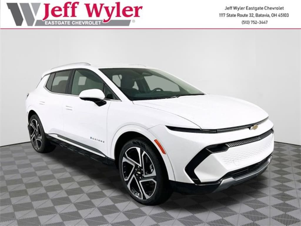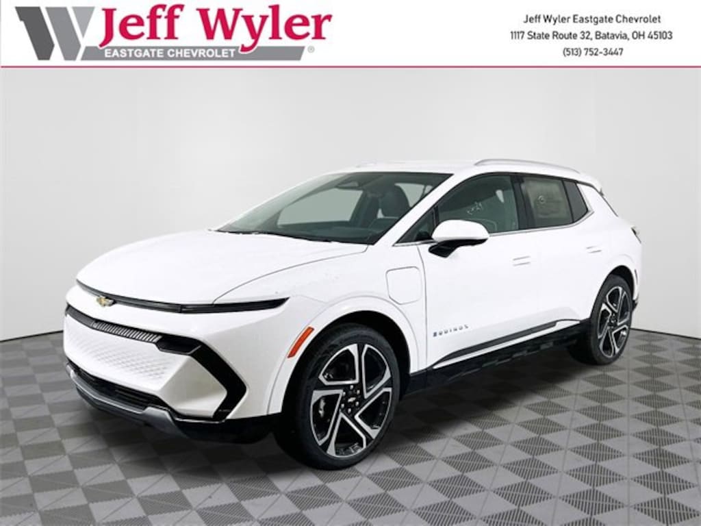 Summit White 2026 Chevrolet Equinox EV LT Electric Drive Unit FWD 1-Speed Automatic Jeff Wyler Eastgate Auto Mall is delighted to offer this fantastic 2026 Chevrolet Equinox EV LT in Summit White. Well equipped with: All-Weather Liner Package (LPO) (All-Weather Cargo Area Liner (LPO)), Convenience Package II (2-Way Front Passenger Power Lumbar, Driver Memory, Dual-Zone Automatic Climate Control, Front Passenger 6-Way Power Seat Adjuster, Head-Up Display, Heated Rear Outboard Passenger Cushion, Heated Wiper Park, LED Headlamps w/LED Daytime Running Lamps, Rear Camera Mirror, Rear Camera Mirror Washer, Universal Home Remote, Uplevel Neutral Density LED Tail Lamps, Ventilated Driver & Front Passenger Seats, and Wheels: 21 Machined Aluminum), License Plate Front Mounting Package, LT 2 Package, Preferred Equipment Group 2LT, 19 Wheels, 4-Wheel Disc Brakes, 6 Speakers, 6-Speaker Audio System Feature, ABS brakes, Air Conditioning, Alloy wheels, AM/FM radio: SiriusXM with 360L, Auto High-beam Headlights, Auto-dimming Rear-View mirror, Automatic temperature control, Black Nameplates (LPO), Brake assist, Bumpers: body-color, Compass, Delay-off headlights, Driver door bin, Driver vanity mirror, Dual front impact airbags, Dual front side impact airbags, Electric Drive Unit, Electronic Stability Control, Emergency communication system: OnStar and Chevrolet connected services capable, Evotex Seat Trim, Four wheel independent suspension, Front anti-roll bar, Front Bucket Seats, Front Center Armrest, Front Passenger 4-Way Manual Seat Adjuster, Front reading lights, Fully automatic headlights, Heated door mirrors, Heated Driver & Fr Passenger Seats Cushion & Seatback, Heated front seats, Heated steering wheel, Illuminated entry, Knee airbag, Low tire pressure warning, NACS DC Adapter (LPO), Navigation system: Google built-in compatibility (select service plan required, terms and limitations apply), Occupant sensing airbag, Outside temperature display, Overhead airbag, Overhead console, Panic alarm, Passenger door bin, Passenger vanity mirror, Power door mirrors, Power Driver Lumbar Control, Power driver seat, Power Liftgate, Power steering, Power windows, Radio: 17.7 Diagonal Advanced Color LCD Display, Rear anti-roll bar, Rear reading lights, Rear seat center armrest, Rear window defroster, Rear window wiper, Remote keyless entry, Security system, SiriusXM w/360L Trial Subscription, Speed control, Split folding rear seat, Spoiler, Steering wheel mounted audio controls, Telescoping steering wheel, Tilt steering wheel, Traction control, Trip computer, Turn signal indicator mirrors, and Variably intermittent wipers. Price includes: $3000 - Chevrolet Consumer Cash Program. Exp. 12/01/2025