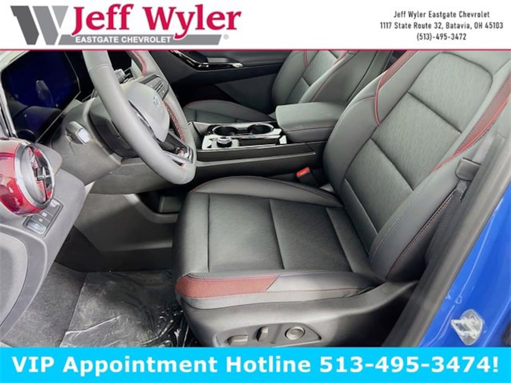 Reef Blue Metallic 2026 Chevrolet Equinox RS 1.5L DOHC FWD CVT 26/28 City/Highway MPG Jeff Wyler Eastgate Auto Mall is pleased to offer this beautiful-looking 2026 Chevrolet Equinox RS in Reef Blue Metallic. Well equipped with: Preferred Equipment Group 1RS, 2-Way Power Driver Lumbar Control Seat Adjuster, 4-Wheel Disc Brakes, 5.81 Final Drive Axle Ratio, 6 Speakers, ABS brakes, Air Conditioning, All-Weather Floor Mats, Alloy wheels, AM/FM radio: SiriusXM, Auto High-beam Headlights, Automatic temperature control, Brake assist, Bumpers: body-color, Cargo Mat, Compass, Delay-off headlights, Driver 8-Way Power Seat Adjuster, Driver door bin, Driver vanity mirror, Dual front impact airbags, Dual front side impact airbags, Electronic Stability Control, Emergency communication system: OnStar and Chevrolet connected services capable, Evotex Seat Trim, Four wheel independent suspension, Front anti-roll bar, Front Bucket Seats, Front Center Armrest, Front dual zone A/C, Front Passenger 4-Way Manual Seat Adjuster, Front reading lights, Fully automatic headlights, Garage door transmitter, Heated door mirrors, Heated front seats, Illuminated entry, Low tire pressure warning, Navigation System, Occupant sensing airbag, Outside temperature display, Overhead airbag, Overhead console, Panic alarm, Passenger door bin, Passenger vanity mirror, Power door mirrors, Power driver seat, Power Liftgate, Power steering, Power windows, Premium audio system: Chevrolet Infotainment 3, Radio data system, Radio: 11.3 Diagonal Advanced Color LCD Display, Rain sensing wipers, Rear anti-roll bar, Rear reading lights, Rear seat center armrest, Rear window defroster, Rear window wiper, Remote keyless entry, Security system, Speed control, Speed-sensing steering, Split folding rear seat, Spoiler, Sport steering wheel, Steering wheel mounted audio controls, Tachometer, Telescoping steering wheel, Tilt steering wheel, Traction control, Trip computer, Variably intermittent wipers, Wheels: 19 Carbon Flash Metallic Aluminum, and Wheels: 20 Black Machined-Face Aluminum. 26/28 City/Highway MPG