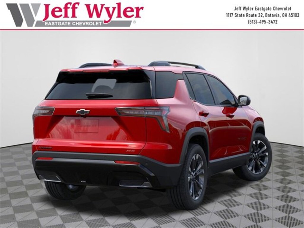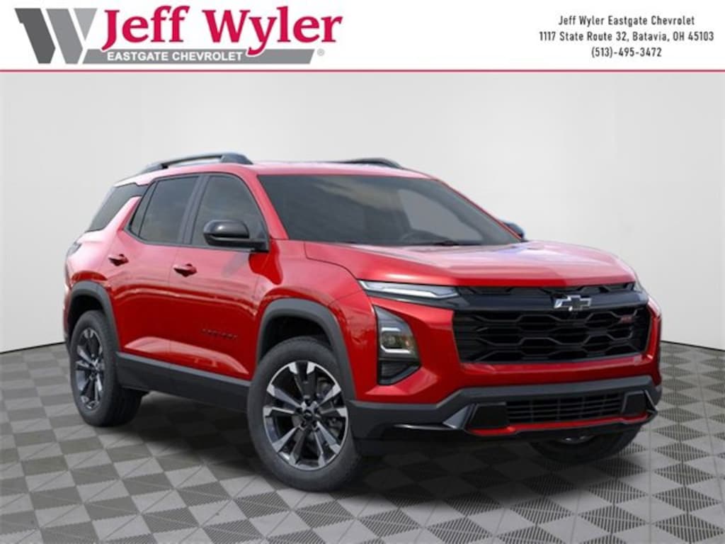Radiant Red 2026 Chevrolet Equinox RS 1.5L DOHC FWD CVT 26/28 City/Highway MPG Jeff Wyler Eastgate Auto Mall is very proud to offer this fantastic 2026 Chevrolet Equinox RS in Radiant Red. Well equipped with: 2-Way Power Driver Lumbar Control Seat Adjuster, 4-Wheel Disc Brakes, 5.81 Final Drive Axle Ratio, 6 Speakers, ABS brakes, Air Conditioning, Alloy wheels, AM/FM radio: SiriusXM, Auto High-beam Headlights, Automatic temperature control, Brake assist, Bumpers: body-color, Compass, Delay-off headlights, Driver 8-Way Power Seat Adjuster, Driver door bin, Driver vanity mirror, Dual front impact airbags, Dual front side impact airbags, Electronic Stability Control, Emergency communication system: OnStar and Chevrolet connected services capable, Evotex Seat Trim, Four wheel independent suspension, Front anti-roll bar, Front Bucket Seats, Front Center Armrest, Front dual zone A/C, Front Passenger 4-Way Manual Seat Adjuster, Front reading lights, Fully automatic headlights, Garage door transmitter, Heated door mirrors, Heated Driver & Front Passenger Seats, Heated front seats, Illuminated entry, Low tire pressure warning, Navigation System, Occupant sensing airbag, Outside temperature display, Overhead airbag, Overhead console, Panic alarm, Passenger door bin, Passenger vanity mirror, Power door mirrors, Power driver seat, Power Liftgate, Power steering, Power windows, Premium audio system: Chevrolet Infotainment 3, Radio data system, Radio: 11.3 Diagonal Advanced Color LCD Display, Rain sensing wipers, Rear anti-roll bar, Rear reading lights, Rear seat center armrest, Rear window defroster, Rear window wiper, Remote keyless entry, Security system, SiriusXM w/360L Trial Subscription, Speed control, Speed-sensing steering, Split folding rear seat, Spoiler, Sport steering wheel, Steering wheel mounted audio controls, Tachometer, Telescoping steering wheel, Tilt steering wheel, Traction control, Trip computer, Variably intermittent wipers, and Wheels: 19 Carbon Flash Metallic Aluminum. 26/28 City/Highway MPG