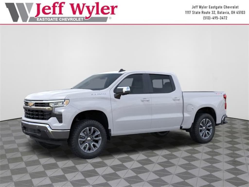 Priced below KBB Fair Purchase Price! Summit White 2026 Chevrolet Silverado 1500 LT EcoTec3 5.3L V8 4WD 10-Speed Automatic 15/19 City/Highway MPG Jeff Wyler Eastgate Auto Mall is pleased to offer this wonderful 2026 Chevrolet Silverado 1500 LT in Summit White. Well equipped with: Convenience Package (10-Way Power Driver Seat w/Lumbar, 120-Volt Bed Mounted Power Outlet, 120-Volt Interior Power Outlet, Dual Rear USB Ports (Charge Only), Dual-Zone Automatic Climate Control, Heated Driver & Front Outboard Passenger Seats, Heated Steering Wheel, Keyless Open & Start, LED Cargo Area Lighting, Manual Tilt/Telescoping Steering Column, and Wrapped Steering Wheel), Convenience Package II (Hitch Guidance w/Hitch View, In-Vehicle Trailering System App, Power Sliding Rear Window w/Rear Defogger, and Universal Home Remote), High Capacity Suspension Package, Preferred Equipment Group 1LT (12.3 Multicolor Reconfigurable Digital Display, All-Star Edition, Auto-Locking Rear Differential, Bluetooth® For Phone, Chrome Mirror Caps, Color-Keyed Carpeting Floor Covering, Deep-Tinted Glass, Electronic Cruise Control, EZ Lift Power Lock & Release Tailgate, Front Frame-Mounted Black Recovery Hooks, Front Rubberized Vinyl Floor Mats, HD Rear Vision Camera, Heated Power-Adjustable Outside Mirrors, Inside Rear-View Mirror w/Tilt, Integrated Trailer Brake Controller, OnStar Services Capable, Power Front Windows w/Driver Express Up/Down, Power Front Windows w/Passenger Express Down, Power Rear Windows w/Express Down, Rear 60/40 Folding Bench Seat (Folds Up), Rear Rubberized-Vinyl Floor Mats, SiriusXM w/360L Trial Subscription, Standard Tailgate, Steering Wheel Audio Controls, Teen Driver, Tire Pressure Monitoring System, and Wi-Fi Hot Spot Capable), Protection Package (Chevytec Spray-On Black Bedliner and Rear Wheelhouse Liners), Remote Start Package (Electric Rear-Window Defogger, Remote Vehicle Starter System, and Theft Deterrent System (Unauthorized Entry)), Safety Package (HD Surround Vision, Perimeter Lighting, Rear Cross Traffic Braking, Rear Pedestrian Alert, Trailer Camera Provisions, Trailer Side Blind Zone Alert, and Ultrasonic Front & Rear Park Assist), Standard Suspension Package, Trailering Package (Hitch Guidance), 170 Amp Alternator, 220 Amp Alternator, 3.23 Rear Axle Ratio, 4-Wheel Disc Brakes, 40/20/40 Front Split-Bench Seat, 6 Speakers, 6-Speaker Audio System, ABS brakes, Air Conditioning, All-Weather Floor Liner (LPO), Alloy wheels, AM/FM radio: SiriusXM with 360L, Apple CarPlay/Android Auto, Auto High-beam Headlights, Automatic Emergency Braking, Automatic temperature control, Auxiliary External Transmission Oil Cooler, Brake assist, Bumpers: chrome, Cloth Seat Trim, Compass, Delay-off headlights, Driver door bin, Driver vanity mirror, Dual front impact airbags, Dual front side impact airbags, Electronic Stability Control, Emergency communication system: OnStar, External Engine Oil Cooler, Following Distance Indicator, Forward Collision Alert, Front anti-roll bar, Front Center Armrest w/Storage, Front dual zone A/C, Front Pedestrian Braking, Front reading lights, Front wheel independent suspension, Fully automatic headlights, Heated door mirrors, Heated front seats, Heated steering wheel, Illuminated entry, IntelliBeam Automatic High Beam On/Off, Lane Keep Assist w/Lane Departure Warning, Low tire pressure warning, Occupant sensing airbag, Outside temperature display, Overhead airbag, Overhead console, Panic alarm, Passenger door bin, Passenger vanity mirror, Power door mirrors, Power driver seat, Power steering, Power windows, Premium audio system: Chevrolet Infotainment 3 Premium, Radio data system, Radio: Chevrolet Infotainment 3 Premium System, Rear reading lights, Rear step bumper, Rear window defroster, Remote keyless entry, Security system, Speed control, Speed-sensing steering, Split folding rear seat, Steering whe Price includes: $1500 - GM Bonus Cash. Exp. 01/02/2026 $3250 - Che