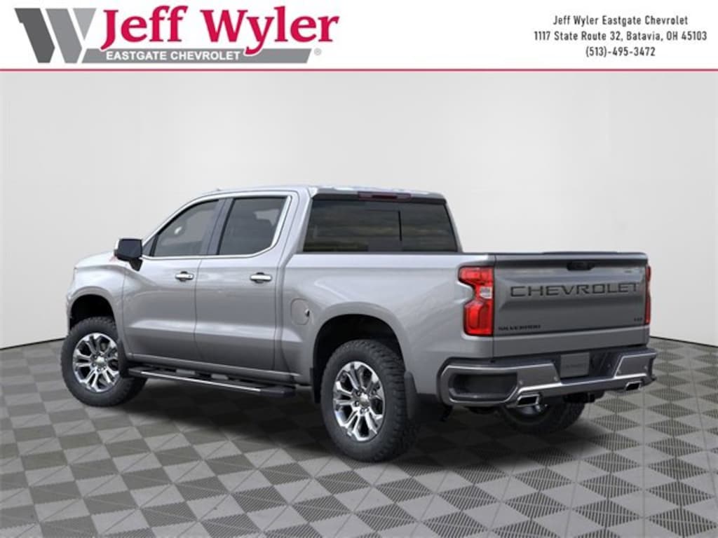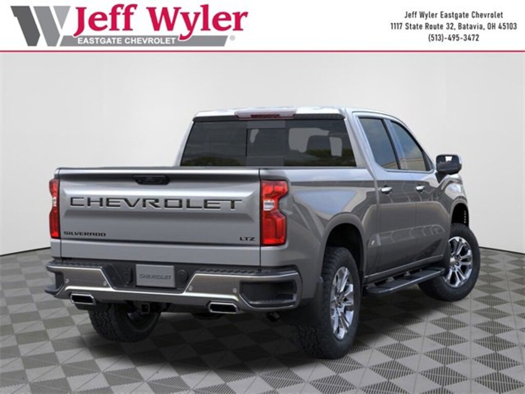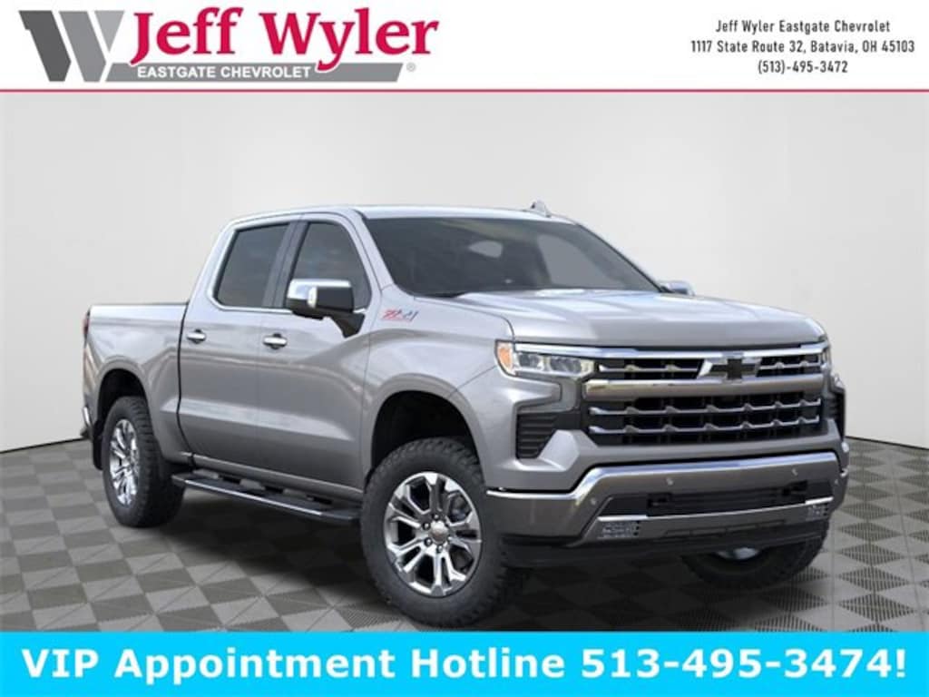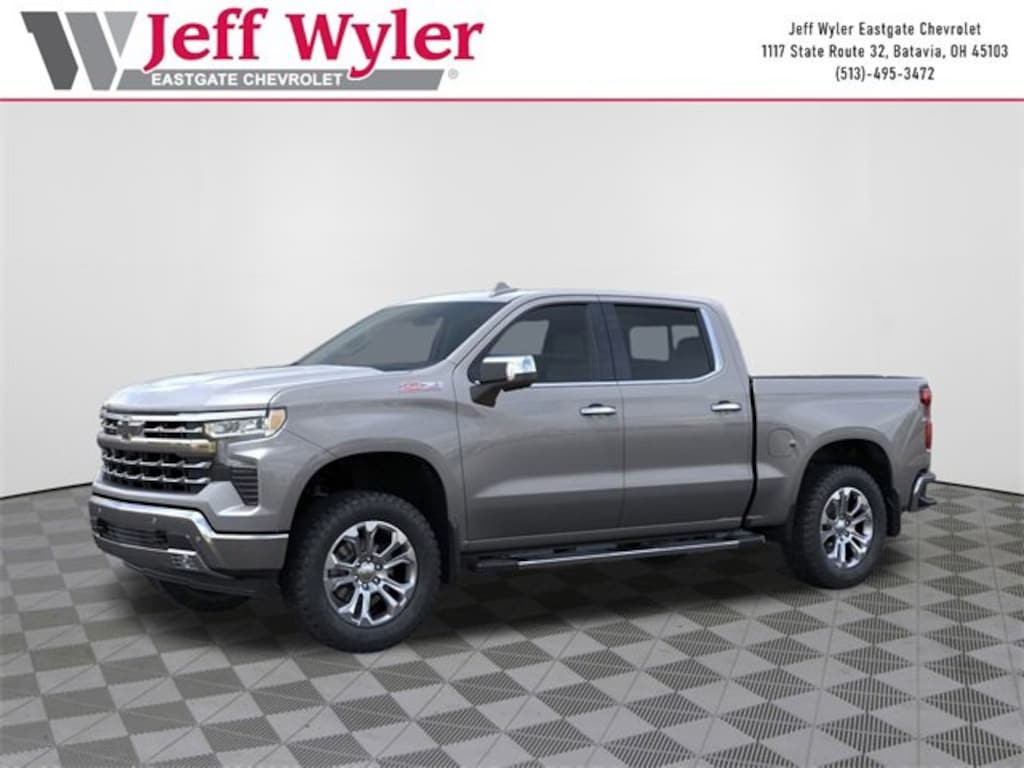 Priced below KBB Fair Purchase Price! Sterling Gray Metallic 2026 Chevrolet Silverado 1500 LTZ EcoTec3 5.3L V8 4WD 10-Speed Automatic 15/19 City/Highway MPG Jeff Wyler Eastgate Auto Mall is honored to offer this great-looking 2026 Chevrolet Silverado 1500 LTZ in Sterling Gray Metallic. Well equipped with: Dark Essentials Package (LPO) (Black Name Plates (LPO)), High Capacity Suspension Package, LTZ Convenience Package (2 USB Data Ports, Floor Mounted Center Console, Power Tilt & Telescoping Steering Column, Premium Bose 7-Speaker Sound System, Ventilated Driver & Front Passenger Seats, and Wireless Charging), LTZ Convenience Package II (2nd Row Heated Outboard Seats, Adaptive Cruise Control, Power Sliding Rear Window w/Rear Defogger, and Universal Home Remote), LTZ Plus Package, Preferred Equipment Group 1LZ (10-Way Power Driver Seat w/Lumbar, 10-Way Power Passenger Seat Adjuster w/Lumbar, 12.3 Multicolor Reconfigurable Digital Display, 120-Volt Bed Mounted Power Outlet, 120-Volt Interior Power Outlet, Auto-Dimming Inside Rear-View Mirror, Auto-Locking Rear Differential, Bluetooth® For Phone, Chrome Mirror Caps, Color-Keyed Carpeting Floor Covering, Deep-Tinted Glass, Driver Memory, Dual Rear USB Ports (Charge Only), Electric Rear-Window Defogger, Electronic Cruise Control, Front Frame-Mounted Black Recovery Hooks, Front LED Fog Lamps, Front Rain-Sensing Wipers, Front Rubberized Vinyl Floor Mats, Heated Driver & Front Outboard Passenger Seats, Heated Steering Wheel, Hitch Guidance w/Hitch View, In-Vehicle Trailering System App, Integrated Trailer Brake Controller, Keyless Open & Start, LED Cargo Area Lighting, OnStar Services Capable, Outside Heated Power-Adjustable Mirrors, Power Front Passenger Windows w/Express Up/Down, Power Front Windows w/Driver Express Up/Down, Power Rear Windows w/Express Down, Power Tailgate, Rear Rubberized-Vinyl Floor Mats, Rear Wheelhouse Liners, Remote Vehicle Starter System, SiriusXM w/360L Trial Subscription, Standard Tailgate, Steering Wheel Audio Controls, Teen Driver, Theft Deterrent System (Unauthorized Entry), Tire Pressure Monitoring System, Wi-Fi Hot Spot Capable, and Wrapped Steering Wheel), Safety Package (HD Surround Vision, Perimeter Lighting, Rear Cross Traffic Braking, Rear Pedestrian Alert, Safety Alert Seat, Trailer Camera Provisions, Trailer Side Blind Zone Alert, and Ultrasonic Front & Rear Park Assist), Trailering Package (Hitch Guidance), Up-Level Rear Seat w/Storage Package, Z71 Off-Road & Protection Package (All-Weather Floor Liner (LPO) (AAK) and Chevytec Spray-On Black Bedliner), Z71 Off-Road Package (Heavy-Duty Air Filter, Hill Descent Control, and Off-Road Suspension), 170 Amp Alternator, 3.23 Rear Axle Ratio, 4-Wheel Disc Brakes, 6 Rectangular Chrome Tubular Assist Steps (LPO), 7 Speakers, ABS brakes, Air Conditioning, Alloy wheels, AM/FM radio: SiriusXM with 360L, Apple CarPlay/Android Auto, Auto High-beam Headlights, Auto-dimming door mirrors, Auto-dimming Rear-View mirror, Automatic Emergency Braking, Automatic temperature control, Black Tailgate CHEVROLET Lettering (LPO), Brake assist, Bumpers: chrome, Compass, Delay-off headlights, Driver door bin, Driver vanity mirror, Dual Exhaust w/Polished Outlets, Dual front impact airbags, Dual front side impact airbags, Electronic Stability Control, Electronic Transmission Range Selector Shifter, Emergency communication system: OnStar, Following Distance Indicator, Forward Collision Alert, Front anti-roll bar, Front Black Bowtie Emblem (LPO), Front Bucket Seats, Front Center Armrest, Front dual zone A/C, Front fog lights, Front Pedestrian Braking, Front reading lights, Front wheel independent suspension, Fully automatic headlights, Heated door mirrors, Heated front seats, Heated steering wheel, Illuminated entry, IntelliBeam Automatic High Beam On/Off, Lane Keep Assist w/Lane Departure Warning, Low tire press Price includes: $1500 - GM Bonus Cash. Exp. 01/02/2026 $3250 - Chevrolet Consumer Cash Program. Exp. 01/02/2026