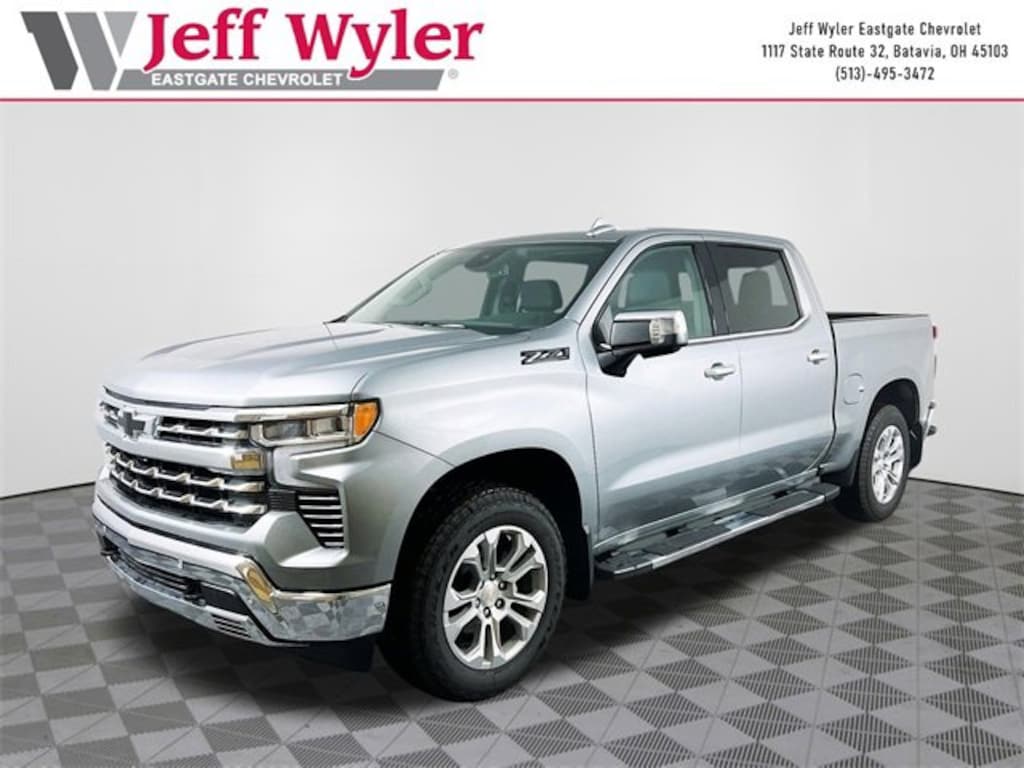 Priced below KBB Fair Purchase Price! Sterling Gray Metallic 2026 Chevrolet Silverado 1500 LTZ EcoTec3 5.3L V8 4WD 10-Speed Automatic 15/19 City/Highway MPG Jeff Wyler Eastgate Auto Mall is pleased to offer this attractive 2026 Chevrolet Silverado 1500 LTZ in Sterling Gray Metallic. Well equipped with: Dark Essentials Package (LPO) (Black Name Plates (LPO)), High Capacity Suspension Package, LTZ Convenience Package (2 USB Data Ports, Floor Mounted Center Console, Power Tilt & Telescoping Steering Column, Premium Bose 7-Speaker Sound System, Ventilated Driver & Front Passenger Seats, and Wireless Charging), LTZ Convenience Package II (2nd Row Heated Outboard Seats, Adaptive Cruise Control, Power Sliding Rear Window w/Rear Defogger, and Universal Home Remote), LTZ Plus Package, Preferred Equipment Group 1LZ (10-Way Power Driver Seat w/Lumbar, 10-Way Power Passenger Seat Adjuster w/Lumbar, 12.3 Multicolor Reconfigurable Digital Display, 120-Volt Bed Mounted Power Outlet, 120-Volt Interior Power Outlet, Auto-Dimming Inside Rear-View Mirror, Auto-Locking Rear Differential, Bluetooth® For Phone, Chrome Mirror Caps, Color-Keyed Carpeting Floor Covering, Deep-Tinted Glass, Driver Memory, Dual Rear USB Ports (Charge Only), Electric Rear-Window Defogger, Electronic Cruise Control, Front Frame-Mounted Black Recovery Hooks, Front LED Fog Lamps, Front Rain-Sensing Wipers, Front Rubberized Vinyl Floor Mats, Heated Driver & Front Outboard Passenger Seats, Heated Steering Wheel, Hitch Guidance w/Hitch View, In-Vehicle Trailering System App, Integrated Trailer Brake Controller, Keyless Open & Start, LED Cargo Area Lighting, OnStar Services Capable, Outside Heated Power-Adjustable Mirrors, Power Front Passenger Windows w/Express Up/Down, Power Front Windows w/Driver Express Up/Down, Power Rear Windows w/Express Down, Power Tailgate, Rear Rubberized-Vinyl Floor Mats, Rear Wheelhouse Liners, Remote Vehicle Starter System, SiriusXM w/360L Trial Subscription, Standard Tailgate, Steering Wheel Audio Controls, Teen Driver, Theft Deterrent System (Unauthorized Entry), Tire Pressure Monitoring System, Wi-Fi Hot Spot Capable, and Wrapped Steering Wheel), Safety Package (HD Surround Vision, Perimeter Lighting, Rear Cross Traffic Braking, Rear Pedestrian Alert, Safety Alert Seat, Trailer Camera Provisions, Trailer Side Blind Zone Alert, and Ultrasonic Front & Rear Park Assist), Trailering Package (Hitch Guidance), Up-Level Rear Seat w/Storage Package, Z71 Off-Road & Protection Package (All-Weather Floor Liner (LPO) (AAK) and Chevytec Spray-On Black Bedliner), Z71 Off-Road Package (Heavy-Duty Air Filter, Hill Descent Control, and Off-Road Suspension), 170 Amp Alternator, 3.23 Rear Axle Ratio, 4-Wheel Disc Brakes, 6 Rectangular Chrome Tubular Assist Steps (LPO), 7 Speakers, ABS brakes, Air Conditioning, Alloy wheels, AM/FM radio: SiriusXM with 360L, Apple CarPlay/Android Auto, Auto High-beam Headlights, Auto-dimming door mirrors, Auto-dimming Rear-View mirror, Automatic Emergency Braking, Automatic temperature control, Black Tailgate CHEVROLET Lettering (LPO), Brake assist, Bumpers: chrome, Compass, Delay-off headlights, Driver door bin, Driver vanity mirror, Dual Exhaust w/Polished Outlets, Dual front impact airbags, Dual front side impact airbags, Electronic Stability Control, Electronic Transmission Range Selector Shifter, Emergency communication system: OnStar, Following Distance Indicator, Forward Collision Alert, Front anti-roll bar, Front Black Bowtie Emblem (LPO), Front Bucket Seats, Front Center Armrest, Front dual zone A/C, Front fog lights, Front Pedestrian Braking, Front reading lights, Front wheel independent suspension, Fully automatic headlights, Heated door mirrors, Heated front seats, Heated steering wheel, Illuminated entry, IntelliBeam Automatic High Beam On/Off, Lane Keep Assist w/Lane Departure Warning, Low tire pressure Price includes: $1500 - GM Bonus Cash. Exp. 03/02/2026 $3250 - Chev