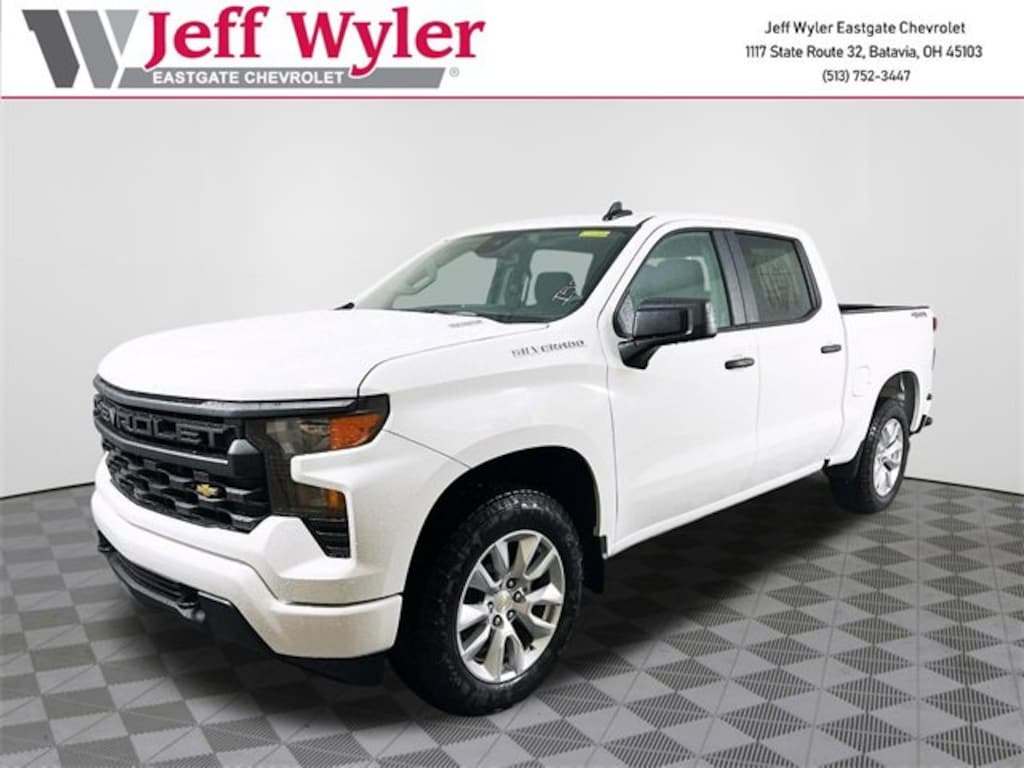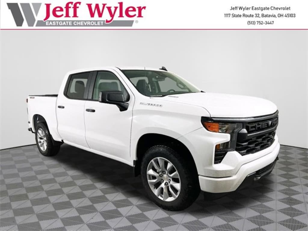 Summit White 2026 Chevrolet Silverado 1500 Custom 2.7L I4 Turbocharged DOHC 16V LEV3-SULEV30 310hp 4WD 8-Speed Automatic 17/20 City/Highway MPG Jeff Wyler Eastgate Auto Mall is proud to offer this outstanding 2026 Chevrolet Silverado 1500 Custom in Summit White. Well equipped with: Custom Convenience Package (Electric Rear-Window Defogger, EZ Lift Power Lock & Release Tailgate, LED Cargo Area Lighting, Remote Vehicle Starter System, and Theft Deterrent System (Unauthorized Entry)), Custom Value Package, High Capacity Suspension Package, Preferred Equipment Group 1CX (10-Way Power Driver Seat w/Lumbar, 120-Volt Bed Mounted Power Outlet, 120-Volt Interior Power Outlet, 3.5 Monochromatic Display Driver Info Center, Bluetooth® For Phone, Color-Keyed Carpeting Floor Covering, Deep-Tinted Glass, Dual Rear USB Ports (Charge Only), Electronic Cruise Control, Front Frame-Mounted Black Recovery Hooks, Front Rubberized Vinyl Floor Mats, HD Rear Vision Camera, Manual Tilt Wheel Steering Column, OnStar Services Capable, Power Front Windows w/Driver Express Up/Down, Power Front Windows w/Passenger Express Down, Power Rear Windows w/Express Down, Rear 60/40 Folding Bench Seat (Folds Up), Rear Rubberized-Vinyl Floor Mats, Remote Keyless Entry, SiriusXM Trial Subscription, Standard Tailgate, Teen Driver, Tire Pressure Monitoring System, and Wi-Fi Hot Spot Capable), Trailering Package (Hitch Guidance), 3.42 Rear Axle Ratio, 4-Wheel Disc Brakes, 40/20/40 Front Split-Bench Seat, 6 Speakers, 6-Speaker Audio System, ABS brakes, Air Conditioning, All-Weather Floor Liner (LPO), Alloy wheels, AM/FM radio: SiriusXM, Apple CarPlay/Android Auto, Auto High-beam Headlights, Automatic Emergency Braking, Brake assist, Bumpers: body-color, Chevytec Spray-On Black Bedliner, Cloth Seat Trim, Compass, Delay-off headlights, Driver door bin, Driver vanity mirror, Dual front impact airbags, Dual front side impact airbags, Electronic Stability Control, Emergency communication system: OnStar, Following Distance Indicator, Forward Collision Alert, Front anti-roll bar, Front Center Armrest w/Storage, Front Pedestrian Braking, Front reading lights, Front wheel independent suspension, Fully automatic headlights, Heated door mirrors, Illuminated entry, Integrated Trailer Brake Controller, IntelliBeam Automatic High Beam On/Off, Lane Keep Assist w/Lane Departure Warning, Low tire pressure warning, Occupant sensing airbag, Outside temperature display, Overhead airbag, Overhead console, Panic alarm, Passenger door bin, Passenger vanity mirror, Power door mirrors, Power driver seat, Power steering, Power windows, Premium audio system: Chevrolet Infotainment 3, Radio data system, Radio: Chevrolet Infotainment 3 System, Rear reading lights, Rear step bumper, Rear window defroster, Remote keyless entry, Security system, Speed control, Speed-sensing steering, Split folding rear seat, Tachometer, Tilt steering wheel, Traction control, Trip computer, Variably intermittent wipers, Voltmeter, and Wheels: 20 x 9 Bright Silver Painted Aluminum. Price includes: $1000 - GM Bonus Cash. Exp. 11/03/2025 $1750 - Chevrolet Consumer Cash Program. Exp. 11/03/2025