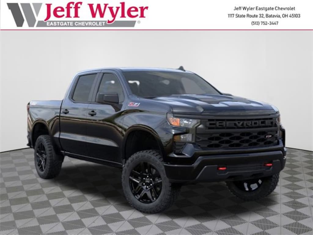 Priced below KBB Fair Purchase Price! Black 2026 Chevrolet Silverado 1500 Custom Trail Boss 2.7L I4 Turbocharged DOHC 16V LEV3-SULEV30 310hp 4WD 8-Speed Automatic 16/17 City/Highway MPG Jeff Wyler Eastgate Auto Mall is pleased to offer this charming 2026 Chevrolet Silverado 1500 Custom Trail Boss in Black. Well equipped with: Custom Convenience Package (Electric Rear-Window Defogger, EZ Lift Power Lock & Release Tailgate, LED Cargo Area Lighting, Remote Vehicle Starter System, and Theft Deterrent System (Unauthorized Entry)), Dark Essentials Package (LPO) (Black Name Plates (LPO)), Preferred Equipment Group 2CX (10-Way Power Driver Seat w/Lumbar, 120-Volt Bed Mounted Power Outlet, 120-Volt Interior Power Outlet, 3.5 Monochromatic Display Driver Info Center, Auto-Locking Rear Differential, Bluetooth® For Phone, Color-Keyed Carpeting Floor Covering, Deep-Tinted Glass, Dual Rear USB Ports (Charge Only), Electronic Cruise Control, Front Rubberized Vinyl Floor Mats, HD Rear Vision Camera, Manual Tilt Wheel Steering Column, OnStar Services Capable, Performance Red Recovery Hooks, Power Front Windows w/Driver Express Up/Down, Power Front Windows w/Passenger Express Down, Power Rear Windows w/Express Down, Rear 60/40 Folding Bench Seat (Folds Up), Rear Rubberized-Vinyl Floor Mats, Remote Keyless Entry, SiriusXM Trial Subscription, Standard Tailgate, Teen Driver, Tire Pressure Monitoring System, and Wi-Fi Hot Spot Capable), Suspension Package (Heavy-Duty Air Filter and Hill Descent Control), Trailering Package (Hitch Guidance), 220 Amp Alternator, 3.42 Rear Axle Ratio, 4-Wheel Disc Brakes, 40/20/40 Front Split-Bench Seat, 6 Speakers, 6-Speaker Audio System, ABS brakes, Air Conditioning, All-Weather Floor Liner (LPO) (AAK), Alloy wheels, AM/FM radio: SiriusXM, Apple CarPlay/Android Auto, Auto High-beam Headlights, Automatic Emergency Braking, Black Tailgate CHEVROLET Lettering (LPO), Brake assist, Chevytec Spray-On Black Bedliner, Cloth Seat Trim, Compass, Delay-off headlights, Driver door bin, Driver vanity mirror, Dual front impact airbags, Dual front side impact airbags, Electronic Stability Control, Emergency communication system: OnStar, Following Distance Indicator, Forward Collision Alert, Front anti-roll bar, Front Center Armrest w/Storage, Front Pedestrian Braking, Front reading lights, Front wheel independent suspension, Fully automatic headlights, Heated door mirrors, Illuminated entry, Integrated Trailer Brake Controller, IntelliBeam Automatic High Beam On/Off, Lane Keep Assist w/Lane Departure Warning, Low tire pressure warning, Occupant sensing airbag, Outside temperature display, Overhead airbag, Overhead console, Panic alarm, Passenger door bin, Passenger vanity mirror, Power door mirrors, Power driver seat, Power steering, Power windows, Premium audio system: Chevrolet Infotainment 3, Radio data system, Radio: Chevrolet Infotainment 3 System, Rear reading lights, Rear step bumper, Rear window defroster, Remote keyless entry, Security system, Single Outlet Exhaust, Speed control, Speed-sensing steering, Split folding rear seat, Tachometer, Tilt steering wheel, Traction control, Trip computer, Variably intermittent wipers, Voltmeter, Wheels: 18 x 8.5 Black Painted Aluminum, and Wheels: 20 x 9 High Gloss Black Painted Alum. Price includes: $1000 - GM Bonus Cash. Exp. 12/01/2025 $1750 - Chevrolet Consumer Cash Program. Exp. 12/01/2025