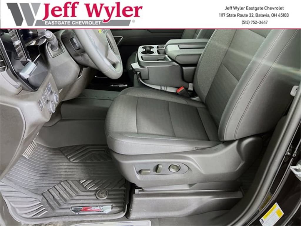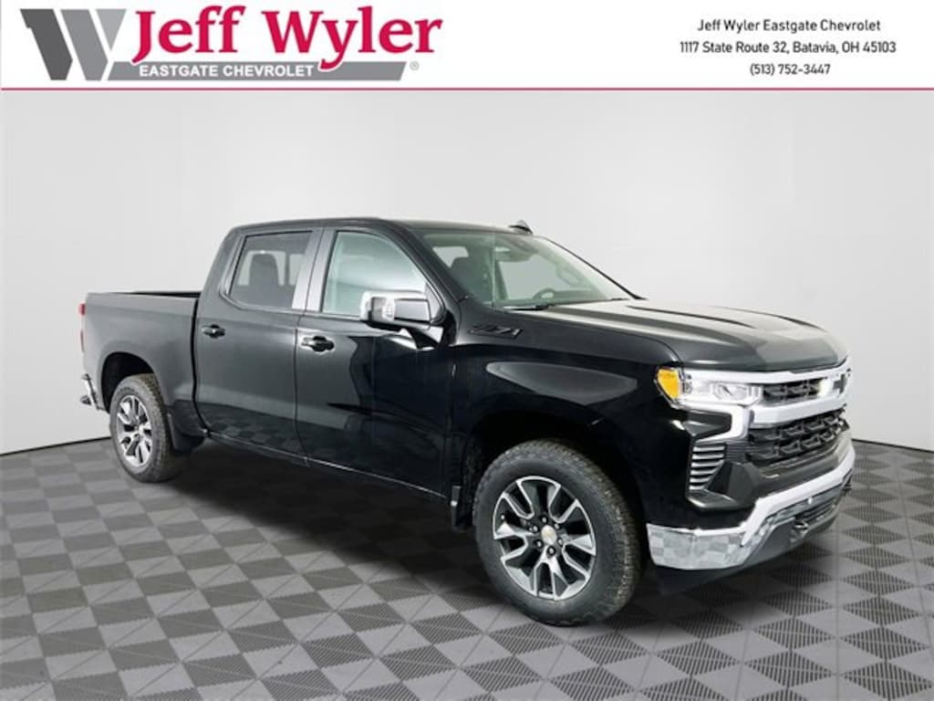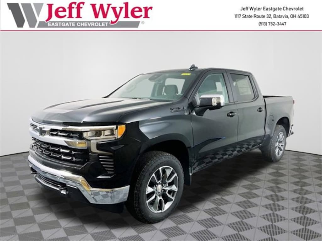 Black 2026 Chevrolet Silverado 1500 LT LT1 EcoTec3 5.3L V8 4WD 10-Speed Automatic 16/19 City/Highway MPG Jeff Wyler Eastgate Auto Mall is pleased to offer this terrific 2026 Chevrolet Silverado 1500 LT in Black. Well equipped with: All Star Edition Plus (Wheels: 20 x 9 Painted Aluminum), Convenience Package (10-Way Power Driver Seat w/Lumbar, 120-Volt Bed Mounted Power Outlet, 120-Volt Interior Power Outlet, Dual Rear USB Ports (Charge Only), Dual-Zone Automatic Climate Control, Heated Driver & Front Outboard Passenger Seats, Heated Steering Wheel, Keyless Open & Start, LED Cargo Area Lighting, Manual Tilt/Telescoping Steering Column, and Wrapped Steering Wheel), Convenience Package II (Hitch Guidance w/Hitch View, In-Vehicle Trailering System App, Power Sliding Rear Window w/Rear Defogger, and Universal Home Remote), Dark Essentials Package (LPO) (Black Name Plates (LPO)), Preferred Equipment Group 1LT (12.3 Multicolor Reconfigurable Digital Display, All-Star Edition, Auto-Locking Rear Differential, Bluetooth® For Phone, Chrome Mirror Caps, Color-Keyed Carpeting Floor Covering, Deep-Tinted Glass, Electronic Cruise Control, EZ Lift Power Lock & Release Tailgate, Front Frame-Mounted Black Recovery Hooks, Front Rubberized Vinyl Floor Mats, HD Rear Vision Camera, Heated Power-Adjustable Outside Mirrors, Inside Rear-View Mirror w/Tilt, Integrated Trailer Brake Controller, OnStar Services Capable, Power Front Windows w/Driver Express Up/Down, Power Front Windows w/Passenger Express Down, Power Rear Windows w/Express Down, Rear 60/40 Folding Bench Seat (Folds Up), Rear Rubberized-Vinyl Floor Mats, SiriusXM w/360L Trial Subscription, Standard Tailgate, Steering Wheel Audio Controls, Teen Driver, Tire Pressure Monitoring System, and Wi-Fi Hot Spot Capable), Protection Package (Chevytec Spray-On Black Bedliner and Rear Wheelhouse Liners), Remote Start Package (Electric Rear-Window Defogger, Remote Vehicle Starter System, and Theft Deterrent System (Unauthorized Entry)), Safety Package (HD Surround Vision, Perimeter Lighting, Rear Cross Traffic Braking, Rear Pedestrian Alert, Trailer Camera Provisions, Trailer Side Blind Zone Alert, and Ultrasonic Front & Rear Park Assist), Standard Suspension Package, Trailering Package (Hitch Guidance), Z71 Off-Road & Protection Package (All-Weather Floor Liner (LPO) (AAK)), Z71 Off-Road Package (Dual Exhaust w/Polished Outlets, Heavy-Duty Air Filter, Hill Descent Control, Off-Road Suspension, and Wheels: 18 x 8.5 Bright Silver Painted Aluminum), 170 Amp Alternator, 220 Amp Alternator, 3.23 Rear Axle Ratio, 4-Wheel Disc Brakes, 40/20/40 Front Split-Bench Seat, 6 Speakers, 6-Speaker Audio System, ABS brakes, Air Conditioning, Alloy wheels, AM/FM radio: SiriusXM with 360L, Apple CarPlay/Android Auto, Auto High-beam Headlights, Automatic Emergency Braking, Automatic temperature control, Auxiliary External Transmission Oil Cooler, Black Exhaust Tip Bezels (LPO), Black Tailgate CHEVROLET Lettering (LPO), Brake assist, Bumpers: chrome, Cloth Seat Trim, Compass, Delay-off headlights, Driver door bin, Driver vanity mirror, Dual front impact airbags, Dual front side impact airbags, Electronic Stability Control, Emergency communication system: OnStar, External Engine Oil Cooler, Following Distance Indicator, Forward Collision Alert, Front anti-roll bar, Front Black Bowtie Emblem (LPO), Front Center Armrest w/Storage, Front dual zone A/C, Front Pedestrian Braking, Front reading lights, Front wheel independent suspension, Fully automatic headlights, Heated door mirrors, Heated front seats, Heated steering wheel, Illuminated entry, IntelliBeam Automatic High Beam On/Off, Lane Keep Assist w/Lane Departure Warning, Low tire pressure warning, Occupant sensing airbag, Outside temperature display, Overhead airbag, Overhead console, Panic alarm, Passenger door bin, Passenger vanity mirror, Power door Price includes: $1000 - GM Bonus Cash. Exp. 11/03/2025 $2000 - Chevrol