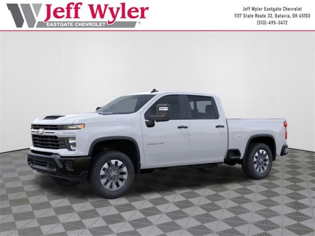 Summit White 2026 Chevrolet Silverado 2500HD Custom Duramax 6.6L V8 Turbodiesel 4WD 10-Speed Automatic Jeff Wyler Eastgate Auto Mall is pumped up to offer this wonderful 2026 Chevrolet Silverado 2500HD Custom in Summit White. Well equipped with: Custom Convenience Package (10-Way Power Driver Seat Adjuster with Lumbar, 120-Volt Bed Mounted Power Outlet, 120-Volt Interior Power Outlet, Dual Rear USB Ports (charge Only), Electric Rear-Window Defogger, EZ Lift Power Lock and Release Tailgate, LED Cargo Area Lighting, Remote Vehicle Starter System, and Unauthorized Entry Theft-Deterrent System), Custom Value Package (Auto-Dimming Inside Rear-View Mirror and Heated and Auto-Dimming Vertical Trailering Mirrors), CX Safety Package (Lane Change Alert with Side Blind Zone Alert, Rear Cross Traffic Alert, and Ultrasonic Front and Rear Park Assist), Suspension Package, 170 Amp Alternator, 2-Speed Electronic Shift Transfer Case, 3.5 Diagonal Monochromatic Display DIC, 4-Wheel Disc Brakes, 6 Speakers, 6-Speaker Audio System, 720 Cold-Cranking Amps Heavy-Duty Battery, ABS brakes, Air Conditioning, All-Weather Floor Liners, Alloy wheels, AM/FM radio: SiriusXM with 360L, Apple CarPlay/Android Auto, Auto High-beam Headlights, Black Chevytec Spray-on Bedliner, Black Mirror Caps, Bluetooth® For Phone, Brake assist, Chevrolet Connected Access Capable, Cloth Seat Trim, Color-Keyed Carpeting Floor Covering, Compass, Deep-Tinted Glass, Delay-off headlights, Driver door bin, Dual front impact airbags, Dual front side impact airbags, Durabed Pickup Bed, Electronic Cruise Control with Set and Resume Speed, Electronic Stability Control, Emergency communication system: OnStar, Front 40/20/40 Split-Bench Seats with Lockable Storage, Front anti-roll bar, Front Center Armrest w/Storage, Front reading lights, Front Rubberized Vinyl Floor Mats, Front wheel independent suspension, Fully automatic headlights, HD Rear Vision Camera, Heated door mirrors, Heated Vertical Trailering Mirrors, Illuminated entry, Locking Tailgate, Low tire pressure warning, Manual Tailgate Function with No EZ Lift, Manual Tilt-Wheel Steering Column, Multi-Flex Tailgate, Multi-Flex Tailgate Audio System by Kicker, Occupant sensing airbag, OnStar Services Capable, Outside temperature display, Overhead airbag, Overhead console, Panic alarm, Passenger door bin, Passenger vanity mirror, Power Door Locks, Power door mirrors, Power Front Windows with Driver Express Up/Down, Power Front Windows with Passenger Express Down, Power Rear Windows with Express Down, Power steering, Power windows, Premium audio system: Chevrolet Infotainment 3, Push Button Start, Radio: Chevrolet Infotainment 3 System, Rear 60/40 Folding Bench Seat (folds Up), Rear reading lights, Rear Rubberized Vinyl Floor Mats, Rear step bumper, Remote Keyless Entry, Remote keyless entry, SiriusXM with 360L Trial Subscription, Speed control, Split folding rear seat, Standard Tailgate, Tachometer, Tilt steering wheel, Traction control, Trip computer, Turn signal indicator mirrors, Variably intermittent wipers, Voltmeter, Wheels: 20 10-Spoke Machined Aluminum, Wi-Fi Hotspot Capable, and Wireless Phone Projection. Price includes: $1000 - Chevrolet Consumer Cash Program. Exp. 01/02/2026