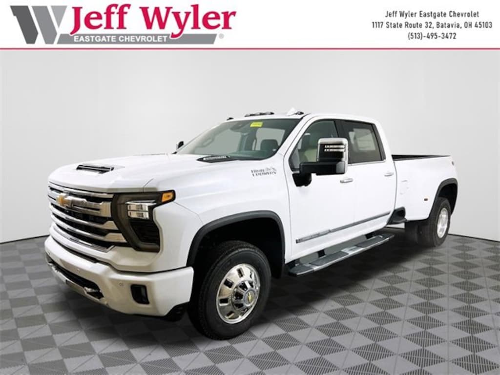 Polar White Tricoat 2026 Chevrolet Silverado 3500HD High Country Duramax 6.6L V8 Turbodiesel 4WD 10-Speed Automatic Jeff Wyler Eastgate Auto Mall is pumped up to offer this stunning 2026 Chevrolet Silverado 3500HD High Country in Polar White Tricoat. Well equipped with: Gooseneck/5th Wheel Prep Package, High Country Premium Package (Power Sunroof), Suspension Package, Technology Package (Multicolor 15 Diagonal Head-Up Display), 120-Volt Bed Mounted Power Outlet, 120-Volt Interior Power Outlet, 170 Amp Alternator, 4-Wheel Disc Brakes, 6 Rectangular Chromed Tubular Assist Steps, 7 Speakers, ABS brakes, Air Conditioning, Alloy wheels, AM/FM radio: SiriusXM with 360L, Apple CarPlay/Android Auto, Auto High-beam Headlights, Auto-dimming door mirrors, Auto-Dimming Inside Rear-View Mirror, Auto-dimming Rear-View mirror, Automatic temperature control, Bluetooth® For Phone, Bodyside moldings, Bose Premium 7-Speaker Sound System, Brake assist, Bumpers: body-color, Chevrolet Connected Access Capable, Chrome Door Handles, Chrome Mirror Caps, Color-Keyed Carpeting Floor Covering, Compass, Deep-Tinted Glass, Delay-off headlights, Driver door bin, Driver Memory, Driver vanity mirror, Dual front impact airbags, Dual front side impact airbags, Durabed Pickup Bed, Electric Rear-Window Defogger, Electronic Stability Control, Emergency communication system, Floor-Mounted Center Console, Front anti-roll bar, Front Bucket Seats, Front Carpeted Floor Mats, Front Center Armrest, Front Chrome Recovery Hooks, Front dual zone A/C, Front fog lights, Front LED Fog Lamps, Front Rain-Sensing Wipers, Front reading lights, Front wheel independent suspension, Fully automatic headlights, Garage door transmitter, Genuine wood console insert, Genuine wood dashboard insert, Genuine wood door panel insert, Heated 2nd Row Outboard Seats, Heated door mirrors, Heated front seats, Heated rear seats, Heated Steering Wheel, Heated steering wheel, Illuminated entry, LED Cargo Area Lighting, Low tire pressure warning, Manual Tilt-Wheel/Telescoping Steering Column, Memory seat, Occupant sensing airbag, OnStar Services Capable, Outside temperature display, Overhead airbag, Overhead console, Panic alarm, Passenger door bin, Passenger vanity mirror, Perforated Leather Seating Surfaces, Polished Exhaust Tip, Power Door Locks, Power door mirrors, Power driver seat, Power passenger seat, Power steering, Power Tailgate, Power windows, Premium audio system: Chevrolet Infotainment 3 Premium, Push Button Start, Radio: Chevrolet Infotainment 3 Premium System, Rain sensing wipers, Rear Carpeted Floor Mats, Rear Cross Traffic Alert, Rear reading lights, Rear seat center armrest, Rear step bumper, Rear window defroster, Remote keyless entry, Remote Vehicle Starter System, Security system, Speed control, Speed-sensing steering, Split folding rear seat, Standard Tailgate, Steering Wheel Audio Controls, Steering wheel mounted audio controls, Tachometer, Telescoping steering wheel, Tilt steering wheel, Traction control, Trailer Camera Provisions, Trailer Side Blind Zone Alert, Trip computer, Turn signal indicator mirrors, Unauthorized Entry Theft-Deterrent System, Universal Home Remote, Variably intermittent wipers, Ventilated front seats, Voltmeter, Wi-Fi Hotspot Capable, Wireless Charging, and Wrapped Steering Wheel. Price includes: $1500 - Chevrolet Consumer Cash Program. Exp. 03/02/2026