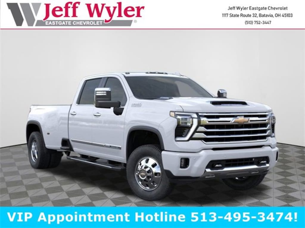 Polar White Tricoat 2026 Chevrolet Silverado 3500HD High Country Duramax 6.6L V8 Turbodiesel 4WD 10-Speed Automatic Jeff Wyler Eastgate Auto Mall is pumped up to offer this terrific-looking 2026 Chevrolet Silverado 3500HD High Country in Polar White Tricoat. Well equipped with: Gooseneck/5th Wheel Prep Package, High Country Premium Package (Power Sunroof), Suspension Package, Technology Package (Multicolor 15 Diagonal Head-Up Display), 120-Volt Bed Mounted Power Outlet, 120-Volt Interior Power Outlet, 170 Amp Alternator, 4-Wheel Disc Brakes, 6 Rectangular Chromed Tubular Assist Steps, 7 Speakers, ABS brakes, Air Conditioning, Alloy wheels, AM/FM radio: SiriusXM with 360L, Apple CarPlay/Android Auto, Auto High-beam Headlights, Auto-dimming door mirrors, Auto-Dimming Inside Rear-View Mirror, Auto-dimming Rear-View mirror, Automatic temperature control, Bluetooth® For Phone, Bodyside moldings, Bose Premium 7-Speaker Sound System, Brake assist, Bumpers: body-color, Chevrolet Connected Access Capable, Chrome Door Handles, Chrome Mirror Caps, Color-Keyed Carpeting Floor Covering, Compass, Deep-Tinted Glass, Delay-off headlights, Driver door bin, Driver Memory, Driver vanity mirror, Dual front impact airbags, Dual front side impact airbags, Durabed Pickup Bed, Electric Rear-Window Defogger, Electronic Stability Control, Emergency communication system, Floor-Mounted Center Console, Front anti-roll bar, Front Bucket Seats, Front Carpeted Floor Mats, Front Center Armrest, Front Chrome Recovery Hooks, Front dual zone A/C, Front fog lights, Front LED Fog Lamps, Front Rain-Sensing Wipers, Front reading lights, Front wheel independent suspension, Fully automatic headlights, Garage door transmitter, Genuine wood console insert, Genuine wood dashboard insert, Genuine wood door panel insert, Heated 2nd Row Outboard Seats, Heated door mirrors, Heated front seats, Heated rear seats, Heated Steering Wheel, Heated steering wheel, Illuminated entry, LED Cargo Area Lighting, Low tire pressure warning, Manual Tilt-Wheel/Telescoping Steering Column, Memory seat, Occupant sensing airbag, OnStar Services Capable, Outside temperature display, Overhead airbag, Overhead console, Panic alarm, Passenger door bin, Passenger vanity mirror, Perforated Leather Seating Surfaces, Polished Exhaust Tip, Power Door Locks, Power door mirrors, Power driver seat, Power passenger seat, Power steering, Power Tailgate, Power windows, Premium audio system: Chevrolet Infotainment 3 Premium, Push Button Start, Radio: Chevrolet Infotainment 3 Premium System, Rain sensing wipers, Rear Carpeted Floor Mats, Rear Cross Traffic Alert, Rear reading lights, Rear seat center armrest, Rear step bumper, Rear window defroster, Remote keyless entry, Remote Vehicle Starter System, Security system, Speed control, Speed-sensing steering, Split folding rear seat, Standard Tailgate, Steering Wheel Audio Controls, Steering wheel mounted audio controls, Tachometer, Telescoping steering wheel, Tilt steering wheel, Traction control, Trailer Camera Provisions, Trailer Side Blind Zone Alert, Trip computer, Turn signal indicator mirrors, Unauthorized Entry Theft-Deterrent System, Universal Home Remote, Variably intermittent wipers, Ventilated front seats, Voltmeter, Wi-Fi Hotspot Capable, Wireless Charging, and Wrapped Steering Wheel. Price includes: $1500 - Chevrolet Consumer Cash Program. Exp. 01/02/2026