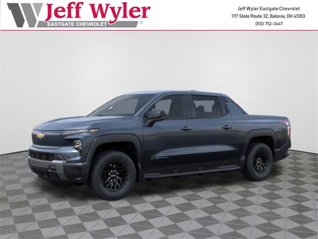 Blue Smoke Metallic 2026 Chevrolet Silverado EV LT Electric ZEV 510hp AWD 1-Speed Automatic Jeff Wyler Eastgate Auto Mall is very proud to offer this good-looking 2026 Chevrolet Silverado EV LT in Blue Smoke Metallic. Well equipped with: Preferred Equipment Group 2LT (Standard Range Battery Pack), 1st & 2nd Row All-Weather Floor Liners (LPO), 4-Wheel Disc Brakes, 4-Wheel Independent Suspension, 6 Speakers, 6-Speaker Audio System Feature, 8-Way Power Driver Seat Adjuster, ABS brakes, Air Conditioning, Alloy wheels, AM/FM radio: SiriusXM with 360L, Auto High-beam Headlights, Auto-dimming Rear-View mirror, Automatic temperature control, Axle Ratio: TBD, Black Chevytec Spray-On Bedliner, Brake assist, Delay-off headlights, Driver 2-Way Power Lumbar Seat Adjuster, Driver door bin, Driver vanity mirror, Dual front impact airbags, Dual front side impact airbags, Electronic Stability Control, Emergency communication system: OnStar, Evotex Seat Trim, Four wheel independent suspension, Front anti-roll bar, Front Bucket Seats, Front Center Armrest w/Storage, Front dual zone A/C, Front Passenger 4-Way Manual Seat Adjuster, Front reading lights, Fully automatic headlights, Garage door transmitter, Heated door mirrors, Heated Front Driver & Passenger Seats, Heated front seats, Heated steering wheel, Low tire pressure warning, Navigation System, Occupant sensing airbag, Outside temperature display, Overhead airbag, Overhead console, Panic alarm, Passenger door bin, Passenger vanity mirror, Power door mirrors, Power driver seat, Power steering, Power windows, Radio data system, Radio: 17.7 Diagonal Advanced Color LCD Display, Rain sensing wipers, Rear reading lights, Rear step bumper, Rear window defroster, Remote keyless entry, Security system, SiriusXM w/360L Trial Subscription, Speed control, Speed-sensing steering, Split folding rear seat, Sport steering wheel, Steering wheel mounted audio controls, Telescoping steering wheel, Tilt steering wheel, Traction control, Trip computer, Variably intermittent wipers, and Wheels: 18 x 8.5 High Gloss Black Painted Alum.