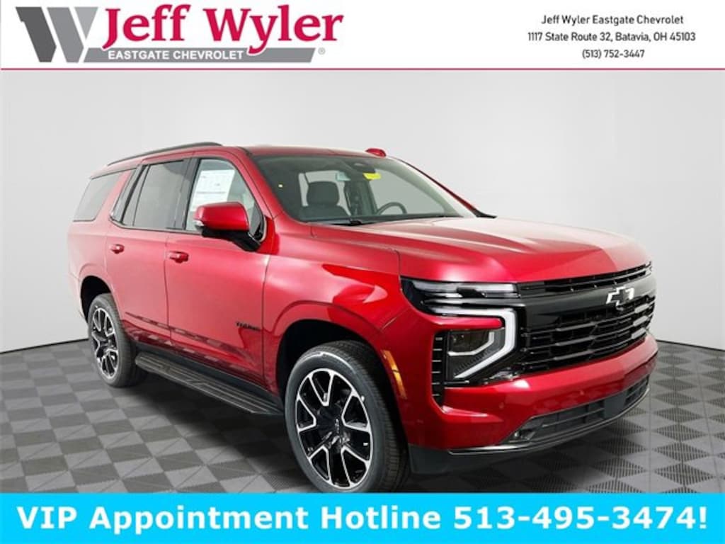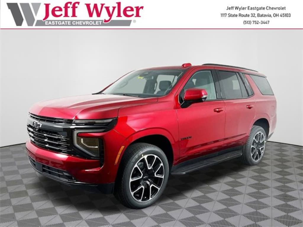 Radiant Red Tintcoat 2026 Chevrolet Tahoe RST EcoTec3 5.3L V8 4WD 10-Speed Automatic with Overdrive 15/19 City/Highway MPG Jeff Wyler Eastgate Auto Mall is pumped up to offer this gorgeous-looking 2026 Chevrolet Tahoe RST in Radiant Red Tintcoat. Well equipped with: Comfort Package (3rd Row 60/40 Power-Folding Split-Bench Seat, Heated 2nd Row Outboard Seats, Heated Steering Wheel, LED Tail Lamps, Memory Settings, and Outside Heated Power-Adjustable Mirrors), RST Capability Package (Air Ride Adaptive Suspension, Floor Console, and Magnetic Ride Control Suspension), 2-Way Power Driver Lumbar Seat Adjuster, 2-Way Power Front Passenger Lumbar Seat Adjuster, 3-Spoke Wrapped Steering Wheel, 3.23 Rear Axle Ratio, 3rd Row Manual 60/40 Split-Folding Bench Seats, 3rd row seats: split-bench, 4-Wheel Disc Brakes, 6 Speakers, 6-Speaker Audio System Feature, 8-Way Power Driver Seat Adjuster, 8-Way Power Front Passenger Seat Adjuster, ABS brakes, Air Conditioning, Alloy wheels, AM/FM radio: SiriusXM with 360L, Apple CarPlay/Android Auto, Auto High-beam Headlights, Auto-Dimming Inside Rear-View Mirror, Auto-dimming Rear-View mirror, Automatic temperature control, Brake assist, Bumpers: body-color, Color-Keyed Carpeting Floor Covering, Compass, Delay-off headlights, Driver door bin, Driver vanity mirror, Dual Exhaust System, Dual front impact airbags, Dual front side impact airbags, Dual-Pane Power Panoramic Sunroof, Electronic Stability Control, Emergency communication system: OnStar and Chevrolet connected services capable, Exterior Parking Camera Rear, Four wheel independent suspension, Front anti-roll bar, Front Bucket Seats, Front Center Armrest, Front dual zone A/C, Front fog lights, Front LED Fog Lamps, Front reading lights, Fully automatic headlights, Garage door transmitter, Heated door mirrors, Heated front seats, Illuminated entry, Interior Camera, Key Card, Low tire pressure warning, Memory seat, Navigation system: Google built-in compatibility (select service plan required, terms and limitations apply), Occupant sensing airbag, Outside temperature display, Overhead airbag, Overhead console, Panic alarm, Passenger door bin, Passenger vanity mirror, Perforated Leather Seat Trim, Power door mirrors, Power driver seat, Power Liftgate, Power passenger seat, Power Release 2nd Row Bucket Seats, Power steering, Power windows, Premium audio system: Chevrolet Infotainment 3 Premium, Premium Smooth Ride Suspension, Radio data system, Radio: 17.7 Diagonal Advanced Color LCD Display, Rain sensing wipers, Rear air conditioning, Rear anti-roll bar, Rear Power Liftgate, Rear reading lights, Rear seat center armrest, Rear window defroster, Rear window wiper, Remote keyless entry, Remote Start, RST Exterior Features, Security system, Speed control, Speed-sensing steering, Split folding rear seat, Spoiler, Steering wheel mounted audio controls, Tachometer, Telescoping steering wheel, Tilt steering wheel, Traction control, Trip computer, Universal Home Remote, USB Ports, Variably intermittent wipers, Voltmeter, Wheels: 22 x 9 Bright Machined, and Wireless Phone Charging.