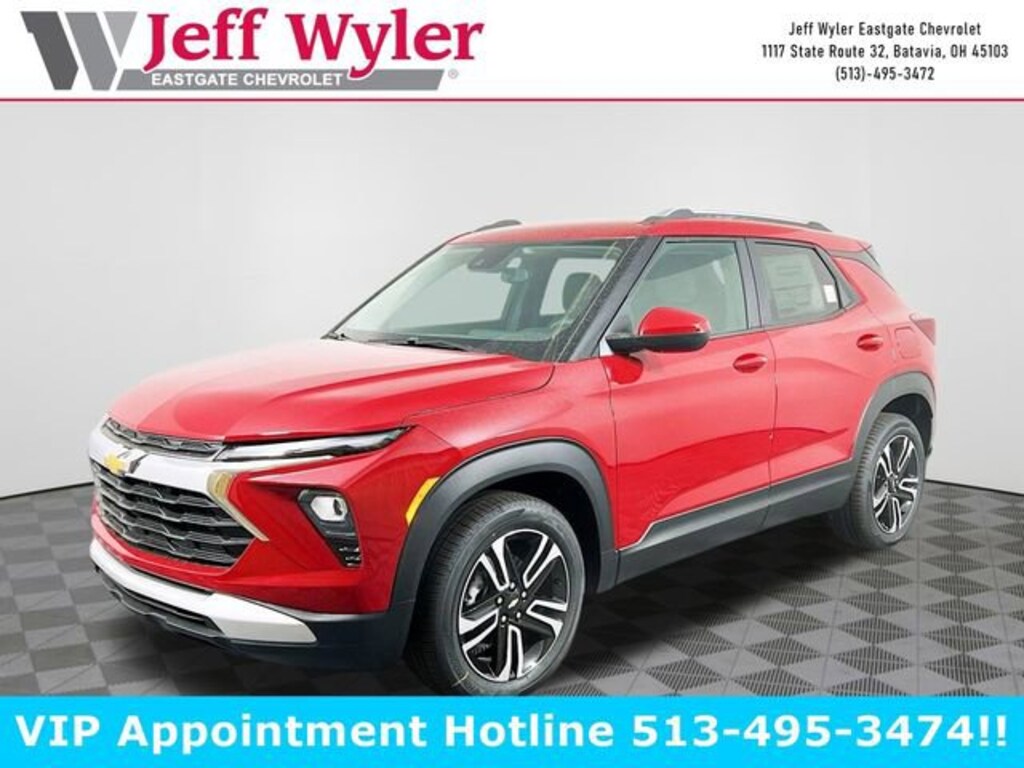 Apex Red 2026 Chevrolet TrailBlazer LT 1.3L I3 Turbocharged DOHC 12V LEV3-SULEV30 137hp FWD CVT 29/33 City/Highway MPG Jeff Wyler Eastgate Auto Mall is excited to offer this attractive-looking 2026 Chevrolet TrailBlazer LT in Apex Red. Well equipped with: Driver Confidence Package (Rear Cross Traffic Alert and Rear Park Assist), Preferred Equipment Group 1LT, 4-Way Manual Front Passenger Seat Adjuster, 4-Wheel Disc Brakes, 5.45 Final Drive Axle Ratio, 6 Speakers, 6-Way Manual Driver Seat Adjuster, ABS brakes, Air Conditioning, Alloy wheels, AM/FM radio: SiriusXM, Auto High-beam Headlights, Brake assist, Bumpers: body-color, Cloth Seat Trim, Compass, Delay-off headlights, Driver door bin, Driver vanity mirror, Dual front impact airbags, Dual front side impact airbags, Electronic Stability Control, Emergency communication system: OnStar and Chevrolet connected services capable, Enhanced Performance 6-Speaker Audio System, Exterior Parking Camera Rear, Flat-Folding Front Passenger Seatback, Front anti-roll bar, Front Bucket Seats, Front Center Armrest, Front reading lights, Front wheel independent suspension, Fully automatic headlights, Heated door mirrors, Illuminated entry, Knee airbag, Low tire pressure warning, Occupant sensing airbag, Overhead airbag, Overhead console, Panic alarm, Passenger door bin, Passenger vanity mirror, Power door mirrors, Power steering, Power windows, Radio data system, Radio: AM/FM Stereo Audio System, Rear side impact airbag, Rear window defroster, Rear window wiper, Reinforced Electric Heater/Defroster System, Remote keyless entry, Security system, SiriusXM Trial Subscription, Speed control, Split folding rear seat, Spoiler, Steering wheel mounted audio controls, Tachometer, Telescoping steering wheel, Tilt steering wheel, Traction control, Trip computer, Variably intermittent wipers, Wheels: 17 High Gloss Black Machined Aluminum, Wheels: 18 High Gloss Black Machined Aluminum, and Wireless Apple CarPlay/Android Auto. 29/33 City/Highway MPG