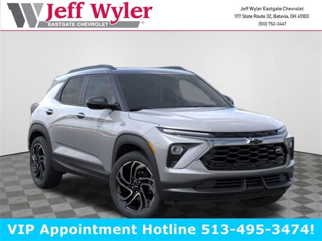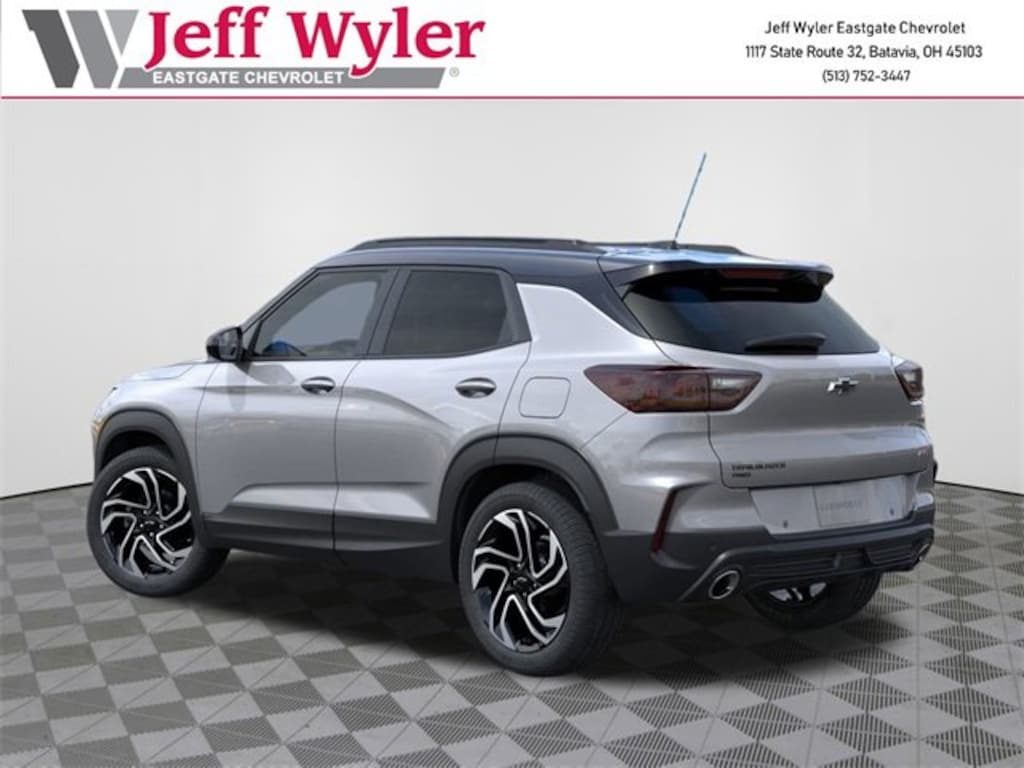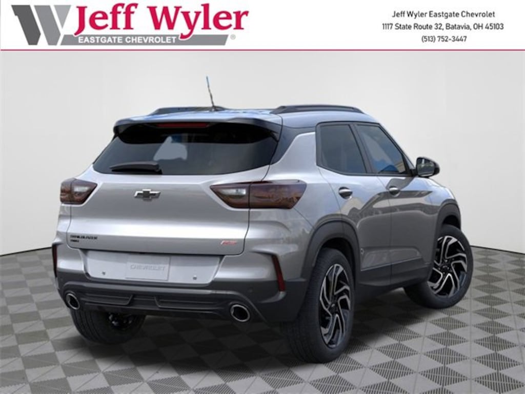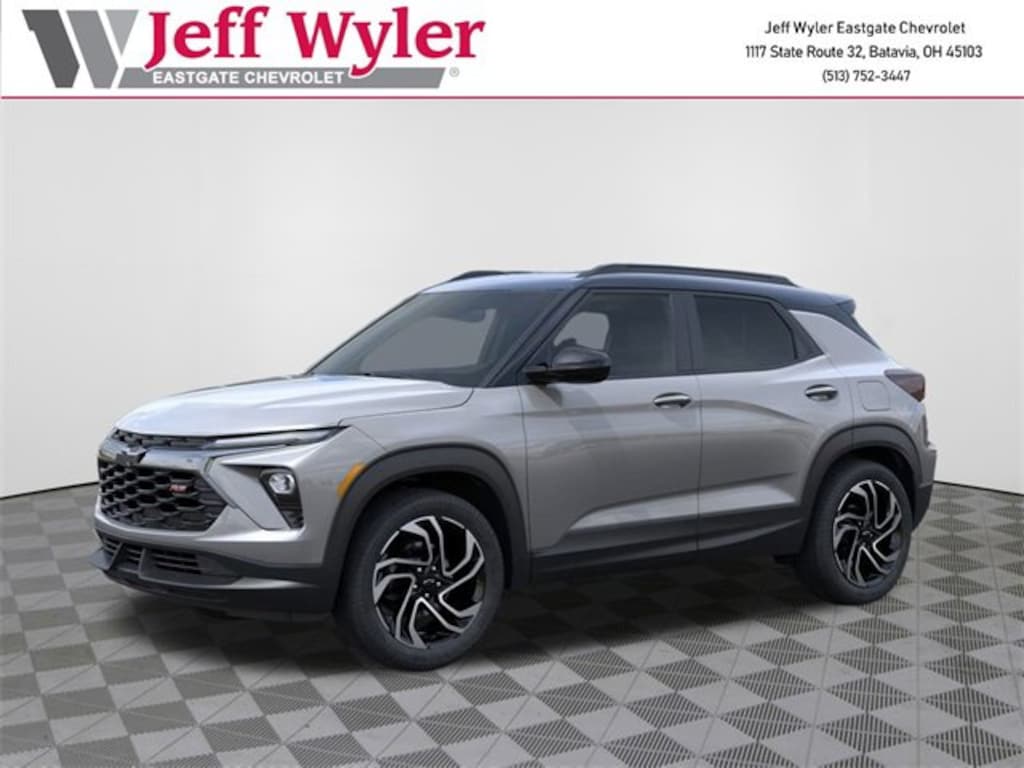 Sterling Gray Metallic 2026 Chevrolet TrailBlazer RS 1.3L I3 Turbocharged DOHC 12V LEV3-SULEV30 155hp AWD 9-Speed Automatic 26/29 City/Highway MPG Jeff Wyler Eastgate Auto Mall is delighted to offer this fantastic 2026 Chevrolet TrailBlazer RS in Sterling Gray Metallic. Well equipped with: Convenience Package (120-Volt Power Outlet, Cabin Humidity Sensor, Hands Free Power Programmable Liftgate, Inside Rear-View Auto-Dimming Mirror, Single-Zone Automatic Climate Control, and Wireless Charging), Driver Confidence Package (Rear Cross Traffic Alert and Rear Park Assist), 2-Way Power Driver Lumbar Seat Adjuster, 3.17 Final Drive Axle Ratio, 4-Way Manual Front Passenger Seat Adjuster, 4-Wheel Disc Brakes, 6 Speakers, 8-Way Power Driver Seat Adjuster, ABS brakes, Air Conditioning, Alloy wheels, AM/FM radio: SiriusXM, Auto High-beam Headlights, Brake assist, Bumpers: body-color, Compass, Delay-off headlights, Driver door bin, Driver vanity mirror, Dual front impact airbags, Dual front side impact airbags, Dual-Pane Panoramic Power Sunroof, Electronic Stability Control, Emergency communication system: OnStar and Chevrolet connected services capable, Evotex Seat Trim, Exterior Parking Camera Rear, Flat-Folding Front Passenger Seatback, Front anti-roll bar, Front Bucket Seats, Front Center Armrest, Front reading lights, Front wheel independent suspension, Fully automatic headlights, Heated door mirrors, Heated front seats, Heated steering wheel, Illuminated entry, Knee airbag, Low tire pressure warning, Occupant sensing airbag, Overhead airbag, Overhead console, Panic alarm, Passenger door bin, Passenger vanity mirror, Power door mirrors, Power driver seat, Power steering, Power windows, Radio data system, Radio: AM/FM Stereo Audio System, Rear seat center armrest, Rear side impact airbag, Rear window defroster, Rear window wiper, Remote keyless entry, Security system, SiriusXM Trial Subscription, Speed control, Split folding rear seat, Spoiler, Steering wheel mounted audio controls, Tachometer, Telescoping steering wheel, Tilt steering wheel, Traction control, Trip computer, Variably intermittent wipers, Wheels: 19 High Gloss Black Machined Aluminum, and Wireless Apple CarPlay/Android Auto. 26/29 City/Highway MPG