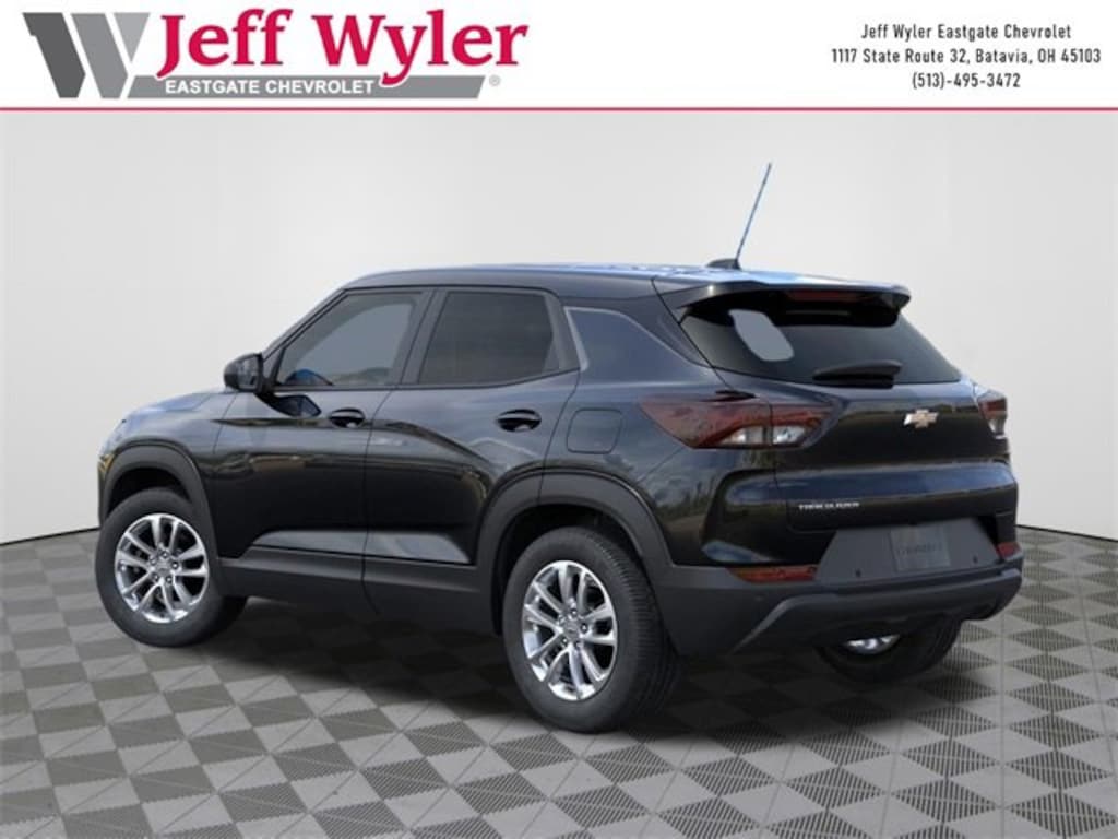 Mosaic Black Metallic 2026 Chevrolet TrailBlazer LS 1.3L I3 Turbocharged DOHC 12V LEV3-SULEV30 137hp FWD CVT 29/33 City/Highway MPG Jeff Wyler Eastgate Auto Mall is pumped up to offer this outstanding-looking 2026 Chevrolet TrailBlazer LS in Mosaic Black Metallic. Well equipped with: LS Confidence Package (Lane Change Alert with Side Blind Zone Alert, Rear Cross Traffic Alert, and Rear Park Assist), LS Convenience Package (Rear Windows and Liftgate Deep-Tinted Glass and Remote Start), Preferred Equipment Group 1LS, 1 Type-An and 1 Type-C USB Ports, 4 Speakers, 4-Speaker Audio System Feature, 4-Way Manual Front Passenger Seat Adjuster, 4-Wheel Disc Brakes, 5.45 Final Drive Axle Ratio, 6-Way Manual Driver Seat Adjuster, ABS brakes, Air Conditioning, Alloy wheels, AM/FM radio: SiriusXM, Auto High-beam Headlights, Brake assist, Bumpers: body-color, Cloth Seat Trim, Compass, Delay-off headlights, Driver door bin, Driver vanity mirror, Dual front impact airbags, Dual front side impact airbags, Electronic Stability Control, Emergency communication system: OnStar and Chevrolet connected services capable, Exterior Parking Camera Rear, Flat-Folding Front Passenger Seatback, Front and Rear All-Weather Floor Liners, Front anti-roll bar, Front Bucket Seats, Front Center Armrest, Front reading lights, Front wheel independent suspension, Fully automatic headlights, Illuminated entry, Knee airbag, Low tire pressure warning, Mechanical Jack with Tools, Occupant sensing airbag, Overhead airbag, Overhead console, Panic alarm, Passenger door bin, Passenger vanity mirror, Power door mirrors, Power steering, Power windows, Radio data system, Radio: AM/FM Stereo Audio System, Rear side impact airbag, Rear window defroster, Rear window wiper, Reinforced Electric Heater/Defroster System, Remote keyless entry, Ride and Handling Suspension, Security system, SiriusXM Trial Subscription, Speed control, Split folding rear seat, Spoiler, Steering wheel mounted audio controls, Tachometer, Telescoping steering wheel, Tilt steering wheel, Traction control, Trip computer, Variably intermittent wipers, Wheels: 17 Silver-Painted Aluminum, and Wireless Apple CarPlay/Android Auto. 29/33 City/Highway MPG