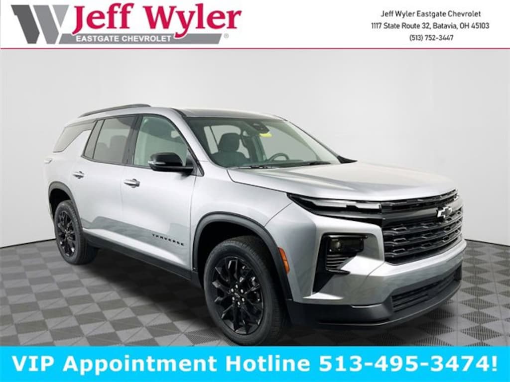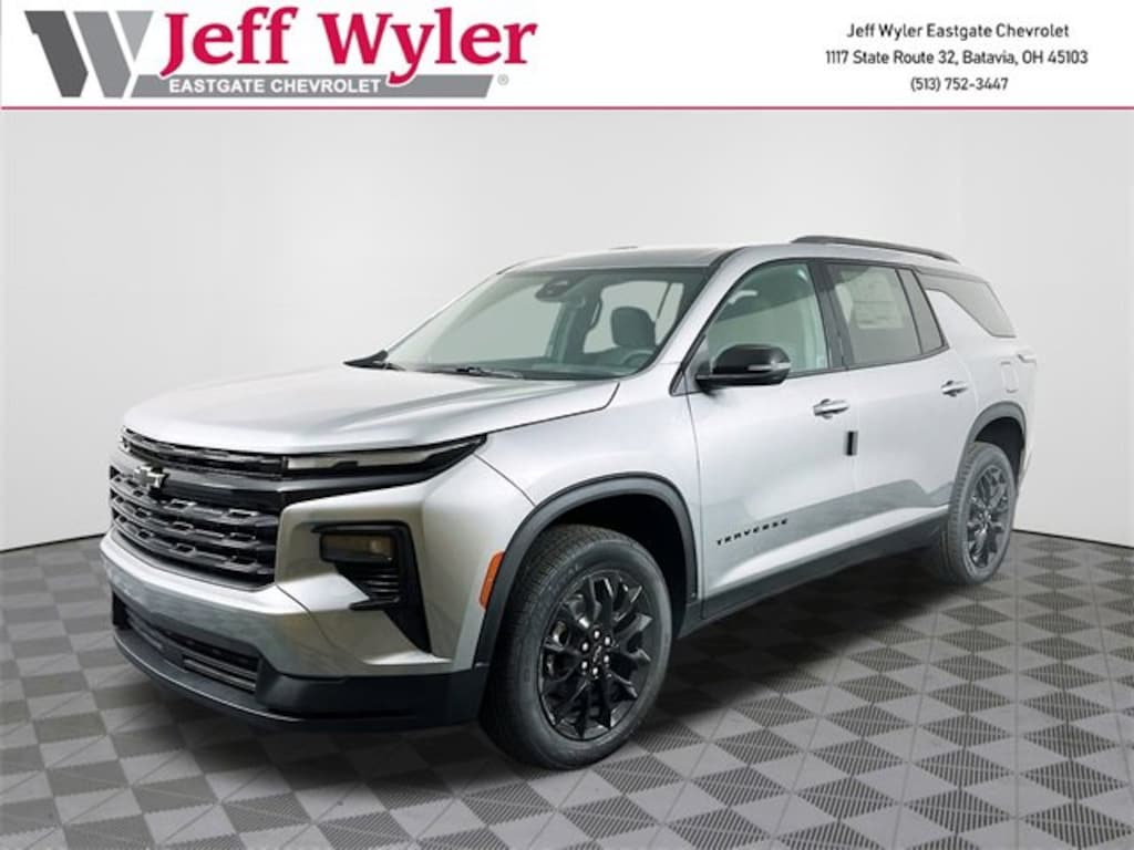 Sterling Gray Metallic 2026 Chevrolet Traverse LT 1LT 2.5L DOHC FWD 8-Speed Automatic 20/26 City/Highway MPG Jeff Wyler Eastgate Auto Mall is excited to offer this outstanding-looking 2026 Chevrolet Traverse LT in Sterling Gray Metallic. Well equipped with: Floor Liner Package (LPO) (1st & 2nd Row All-Weather Floor Liners (LPO), 3rd Row All-Weather Floor Liner (LPO), and Integrated Cargo Liner (LPO)), Midnight/Sport Edition (High Gloss Black Door Upper Molding and Wheels: 20 High Gloss Black Painted Aluminum), 3rd row seats: split-bench, 4-Way Manual Front Passenger Seat Adjuster, 4-Wheel Disc Brakes, 6 Speakers, 6-Speaker Audio System Feature, 8-Way Power Driver Seat Adjuster, ABS brakes, Air Conditioning, Alloy wheels, AM/FM radio: SiriusXM with 360L, Apple CarPlay/Android Auto, Auto High-beam Headlights, Automatic temperature control, Brake assist, Bumpers: body-color, Child-Seat-Sensing Airbag, Compass, Delay-off headlights, Driver door bin, Driver vanity mirror, Dual front impact airbags, Dual front side impact airbags, Electronic Stability Control, Emergency communication system: OnStar, Four wheel independent suspension, Front anti-roll bar, Front Bucket Seats, Front Center Armrest, Front dual zone A/C, Front reading lights, Fully automatic headlights, Heated door mirrors, Heated Driver & Front Passenger Seats, Heated front seats, Heated steering wheel, Illuminated entry, Low tire pressure warning, Navigation System, Occupant sensing airbag, Outside temperature display, Overhead airbag, Overhead console, Panic alarm, Passenger door bin, Passenger vanity mirror, Power door mirrors, Power driver seat, Power Liftgate, Power steering, Power windows, Premium Cloth Seat Trim, Radio data system, Radio: Audio System w/17.7 Diagonal Display, Rear air conditioning, Rear anti-roll bar, Rear reading lights, Rear window defroster, Rear window wiper, Remote keyless entry, Security system, SiriusXM w/360L Trial Subscription, Speed control, Speed-sensing steering, Spoiler, Steering wheel mounted audio controls, Tachometer, Telescoping steering wheel, Tilt steering wheel, Traction control, Trip computer, Turn signal indicator mirrors, Variably intermittent wipers, Voltmeter, and Wheels: 18 Grazen Metallic Machined-Face Aluminum. 20/26 City/Highway MPG