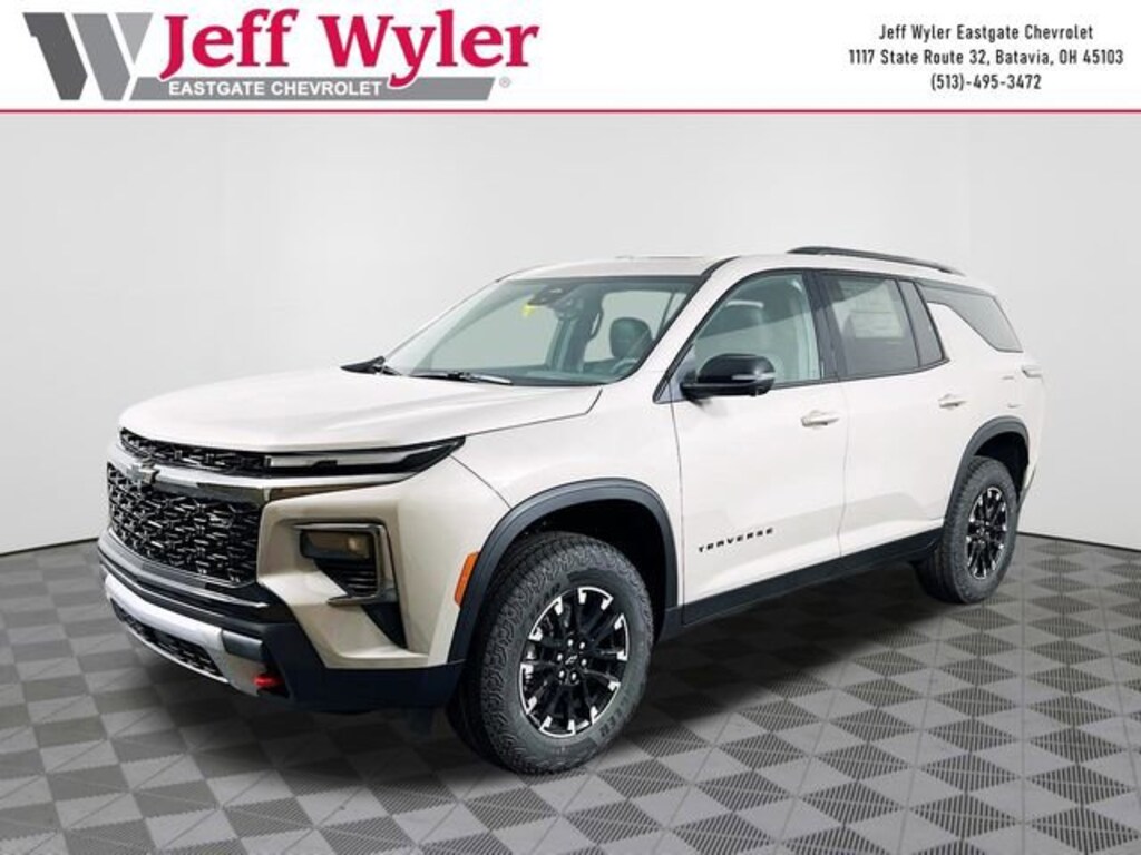 Sandstone Gray 2026 Chevrolet Traverse Z71 2.5L DOHC AWD 8-Speed Automatic 20/24 City/Highway MPG Jeff Wyler Eastgate Auto Mall is very proud to offer this superb 2026 Chevrolet Traverse Z71 in Sandstone Gray. Well equipped with: Driver Confidence Package (HD Surround Vision, Key Card, Power Outlet, Rear Camera Mirror, Rear Pedestrian Alert, and Traffic Sign Recognition), Interior Protection Package (1st and 2nd Row All-Weather Floor Mats, 3rd Row All-Weather Floor Liner, and Cargo Mat), Preferred Equipment Group 2Z7, 3rd row seats: split-bench, 4-Way Manual Front Passenger Seat Adjuster, 4-Wheel Disc Brakes, 6 Speakers, 6-Speaker Audio System Feature, 8-Way Power Driver Seat Adjuster, ABS brakes, Air Conditioning, Alloy wheels, AM/FM radio: SiriusXM with 360L, Apple CarPlay/Android Auto, Auto High-beam Headlights, Automatic temperature control, Brake assist, Child-Seat-Sensing Airbag, Compass, Delay-off headlights, Driver door bin, Driver vanity mirror, Dual front impact airbags, Dual front side impact airbags, Electronic Stability Control, Emergency communication system: OnStar, Evotex Seat Trim, Four wheel independent suspension, Front anti-roll bar, Front Bucket Seats, Front Center Armrest, Front dual zone A/C, Front reading lights, Fully automatic headlights, Heated door mirrors, Heated Driver and Front Passenger Seats, Heated front seats, Heated steering wheel, Illuminated entry, Low tire pressure warning, Navigation System, Occupant sensing airbag, Outside temperature display, Overhead airbag, Overhead console, Panic alarm, Passenger door bin, Passenger vanity mirror, Power door mirrors, Power driver seat, Power Dual Glass Panoramic Sliding Sunroof, Power Liftgate, Power steering, Power windows, Radio data system, Radio: : Audio System w/17.7 Diagonal Display, Rear air conditioning, Rear anti-roll bar, Rear reading lights, Rear window defroster, Rear window wiper, Remote keyless entry, Security system, SiriusXM with 360L Trial Subscription, Speed control, Speed-sensing steering, Spoiler, Steering wheel mounted audio controls, Tachometer, Telescoping steering wheel, Tilt steering wheel, Traction control, Trip computer, Turn signal indicator mirrors, Variably intermittent wipers, Voltmeter, Wheels: : 18 High Gloss Black Painted Aluminum, and Z71 Black Nameplate Kit (LPO)